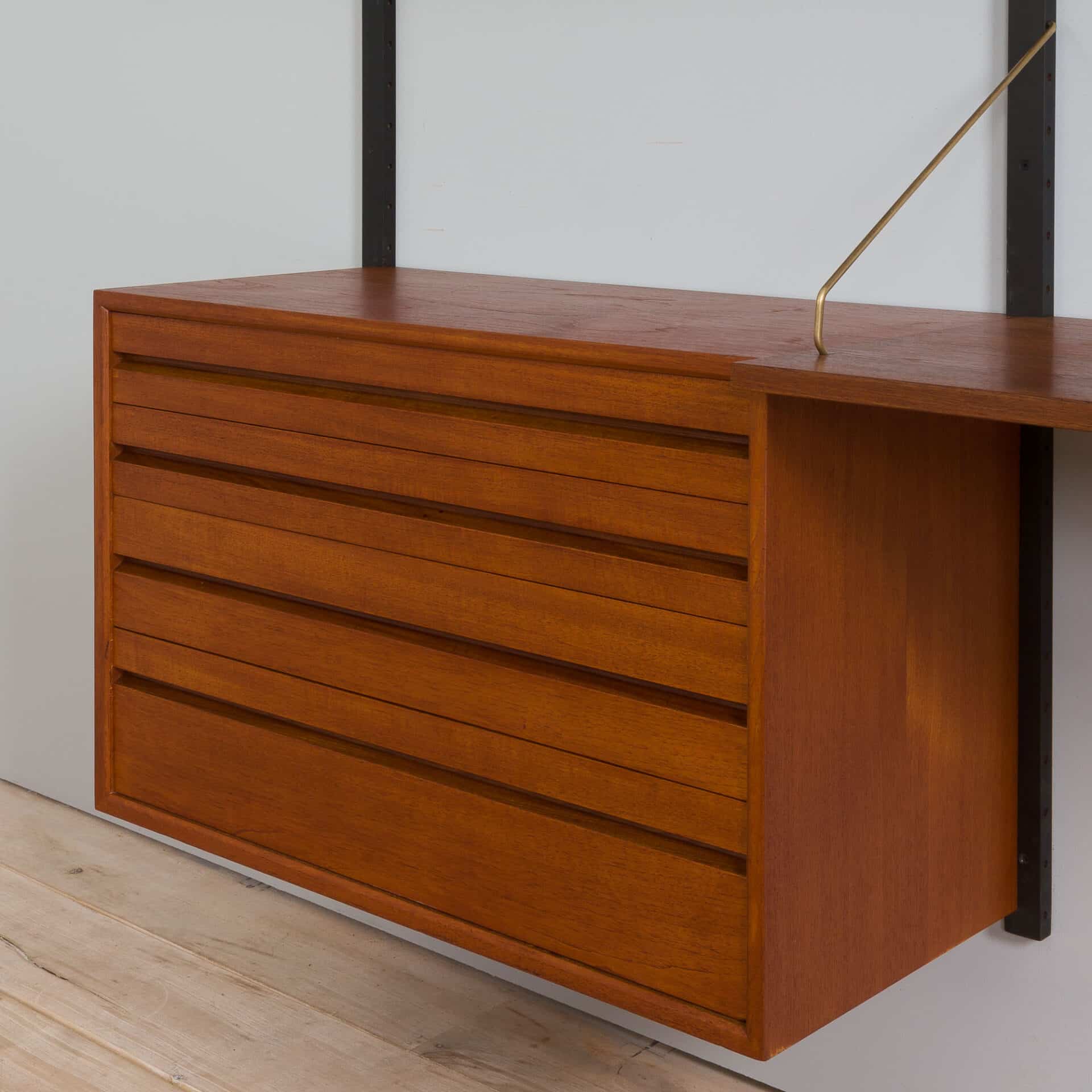 Cadovius 3-bay teak wall unit with desk, 2 cabinets and 8 shelves, Denmark, 1960s