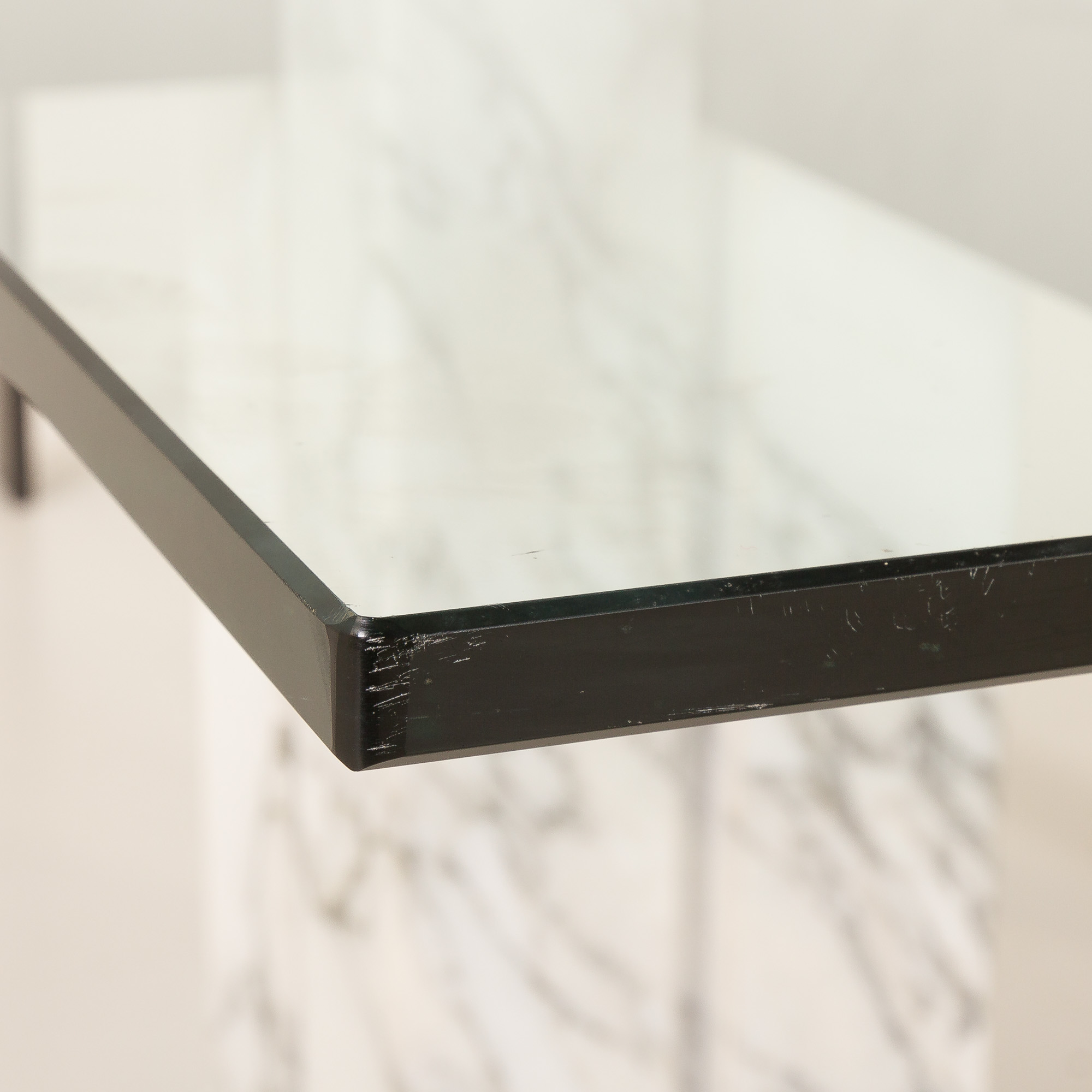 The glass top shows minimal scratches along the edges, consistent with age and use, which do not detract from the overall visual impact of the piece. Overall in very good vintage condition.