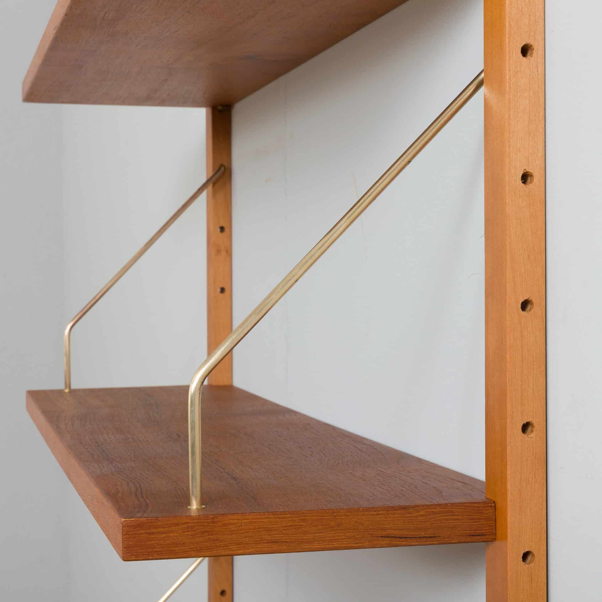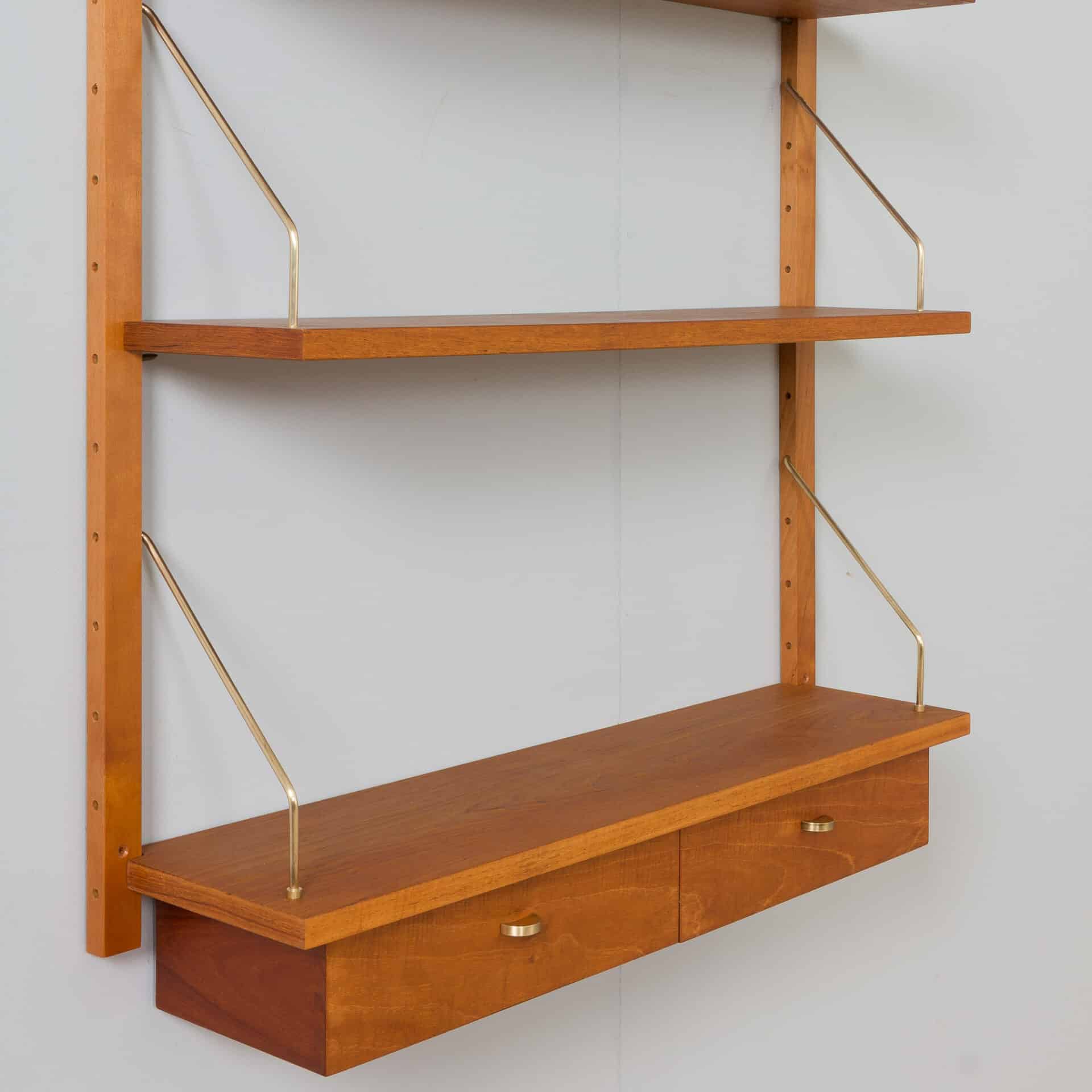 Single wall unit with a console with two drawers and brass handles, adding elegance to the piece. It can be used as a perfect entry unit. the set comes from Denmark in the 60s