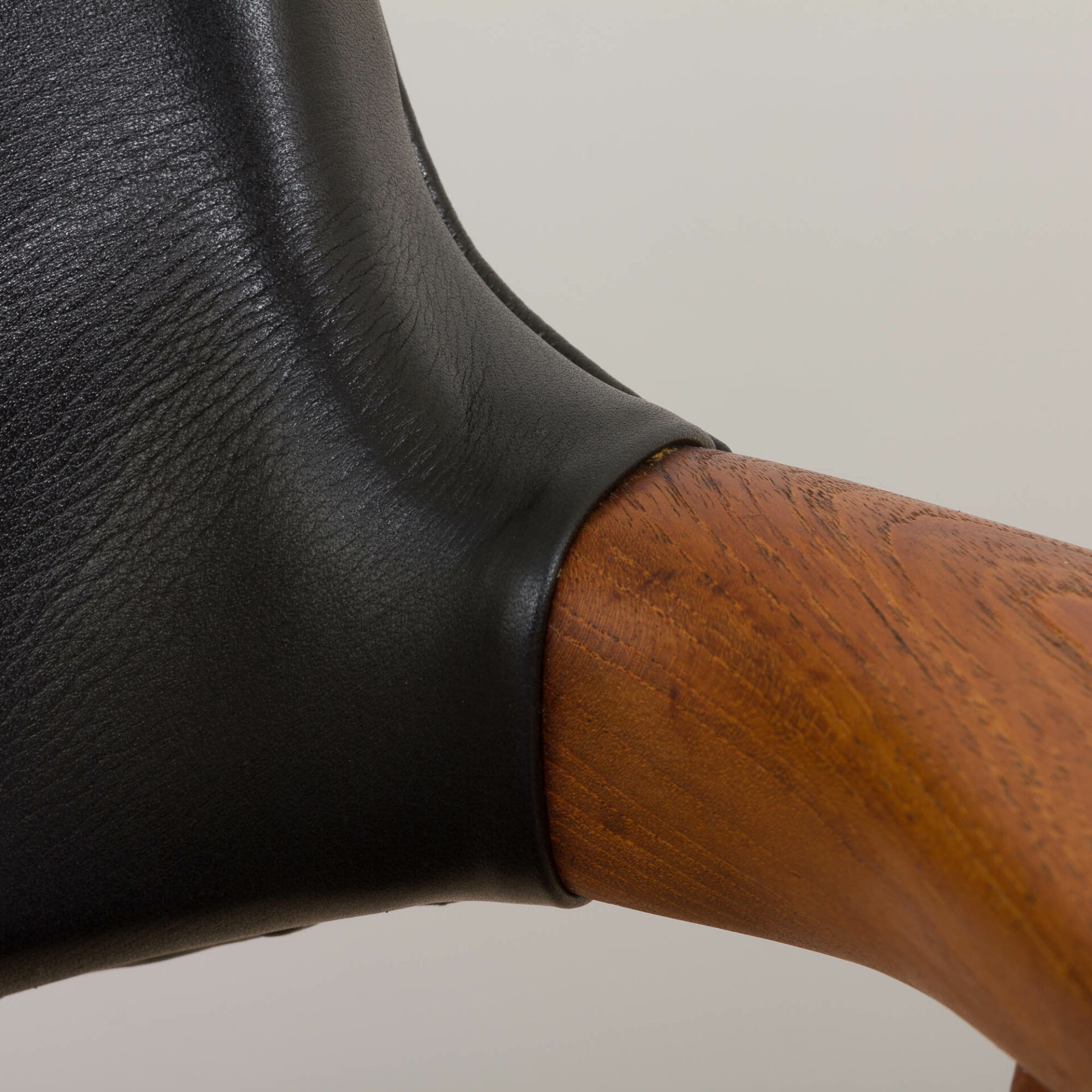 Danish mid century Solid Teak Armchair by Erik Kierkegaard in black aniline leather, 1960s