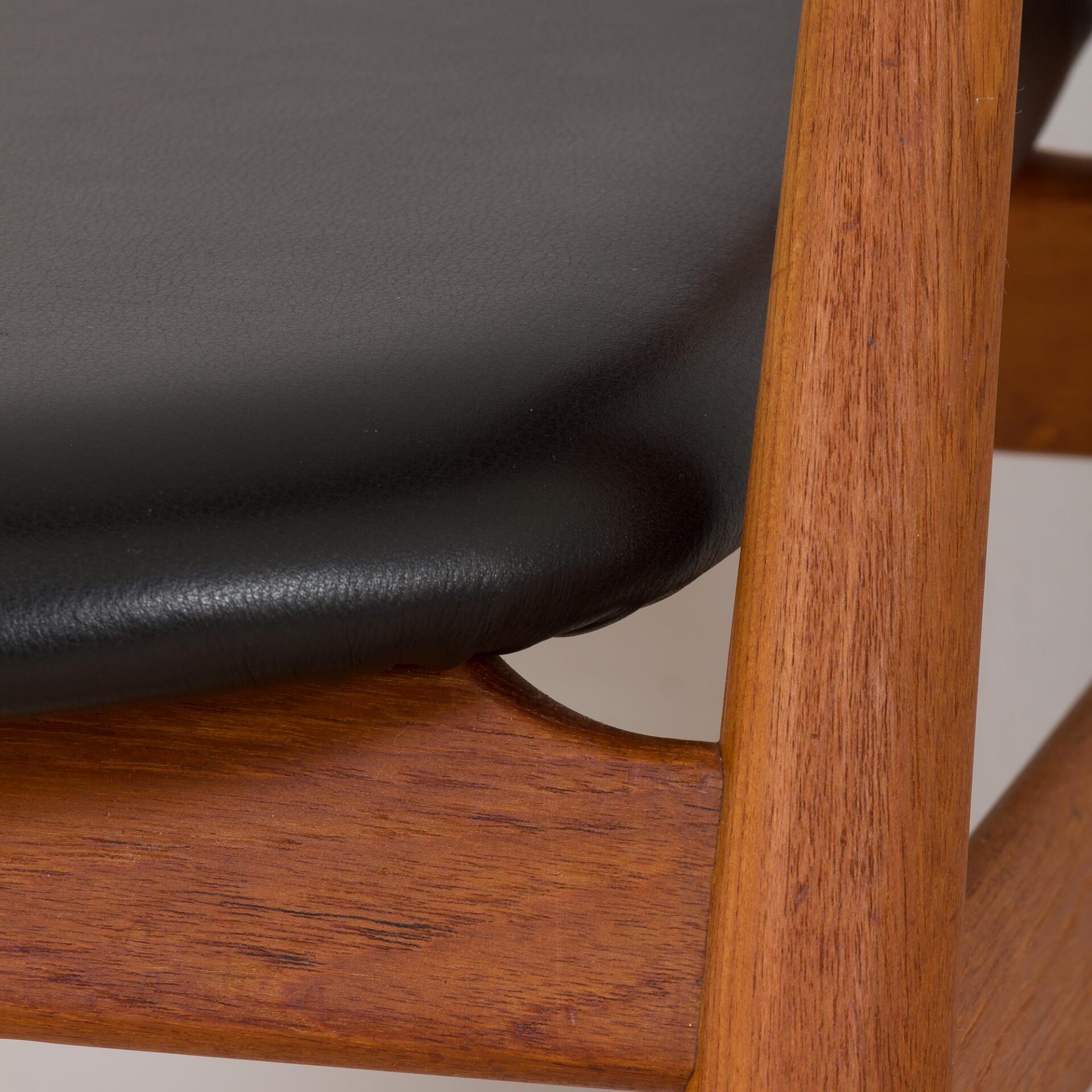 This chair was designed by Erik Kirkegaard for Høng Stolefabrik in the 1960s. Executed entirely in solid teak has new black leather upholstery and new foams, also the wood has been cleaned and re-oiled. The high-quality black leather combined with the solid teak frame adds elegance to the functionality. It will perfectly fit a mid-century desk or can enrich any home office space or a living room.