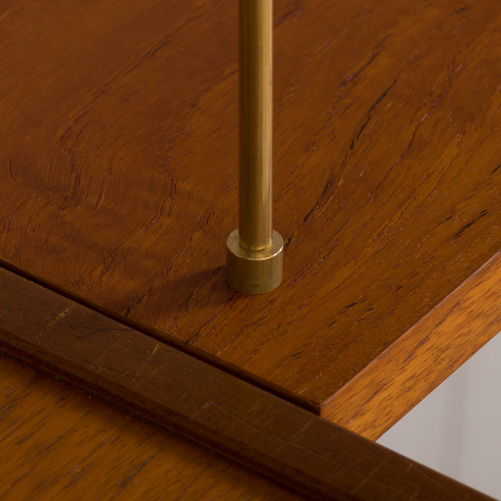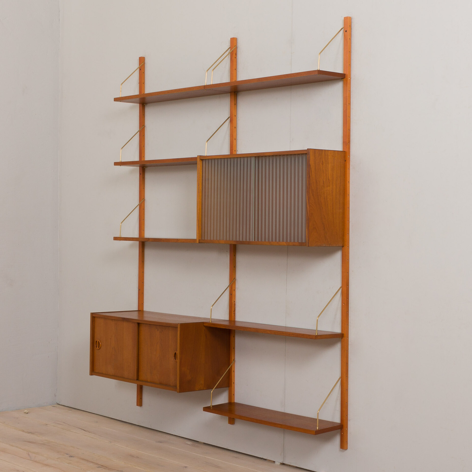 A Danish mid-century teak wall unit from the 1960s. This entirely modular shelving system is ideal for a small living room, bedroom or a office space providing enough space for storage, books and decorations.