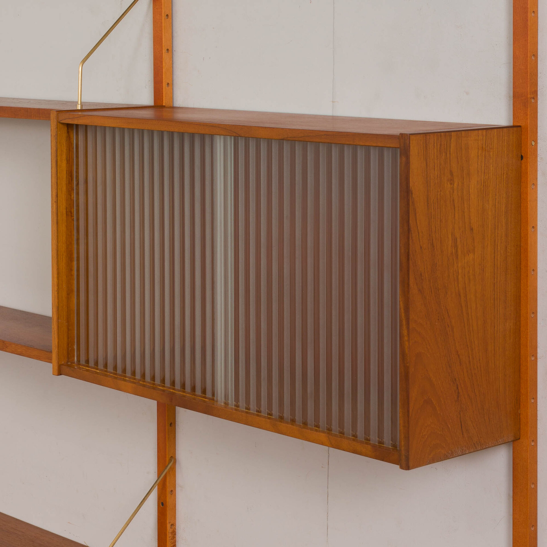 Danish mid century teak 2 bay wall unit with glass cabinet, Denmark, 1960s