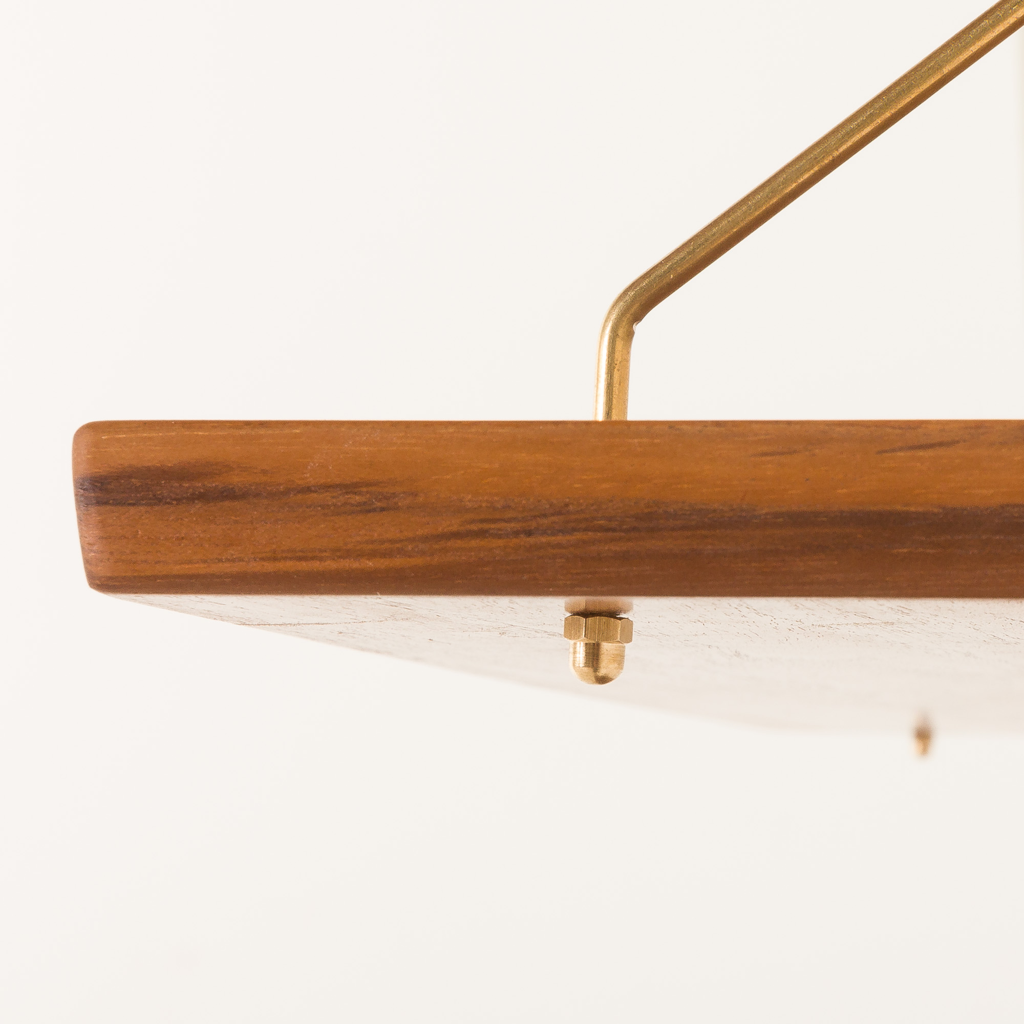 The set is in excellent condition with absolutely minor traces of use. The shelves have been professionally renovated and protected with Danish oil. The original brass hangers have been slightly polished.
