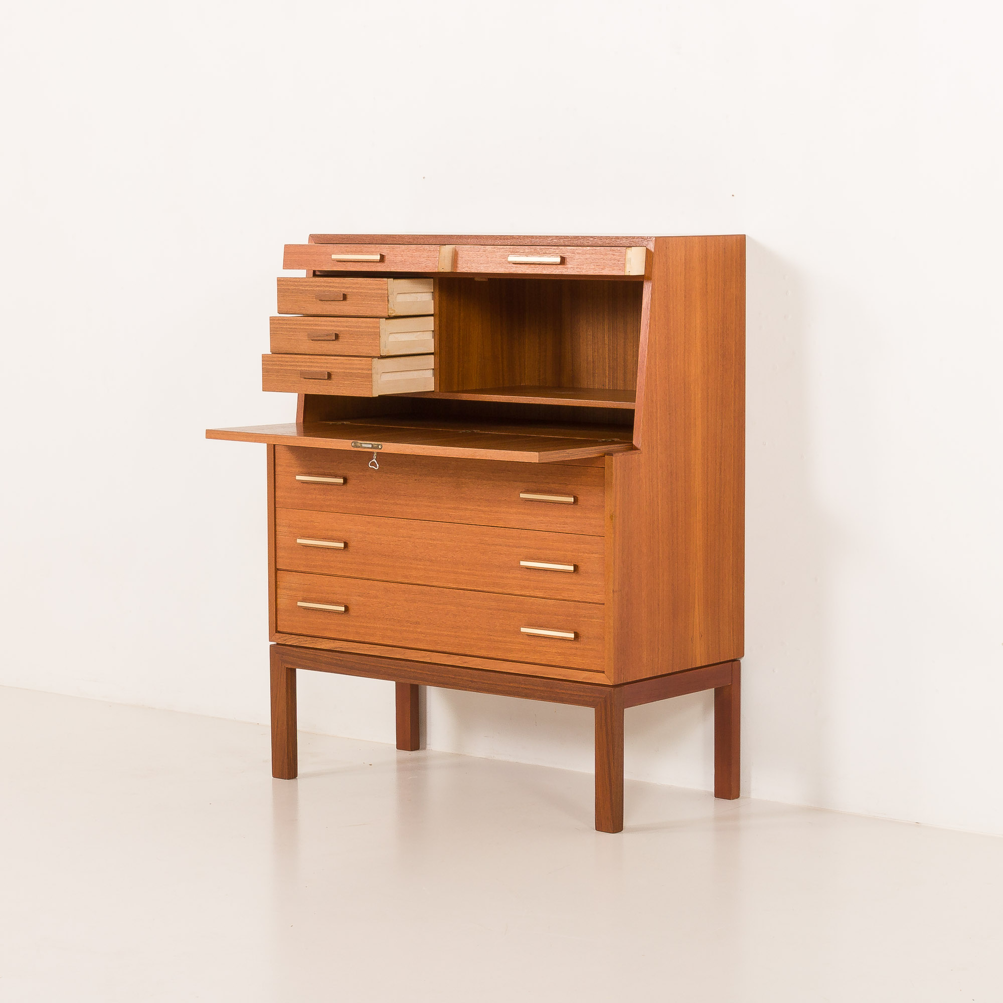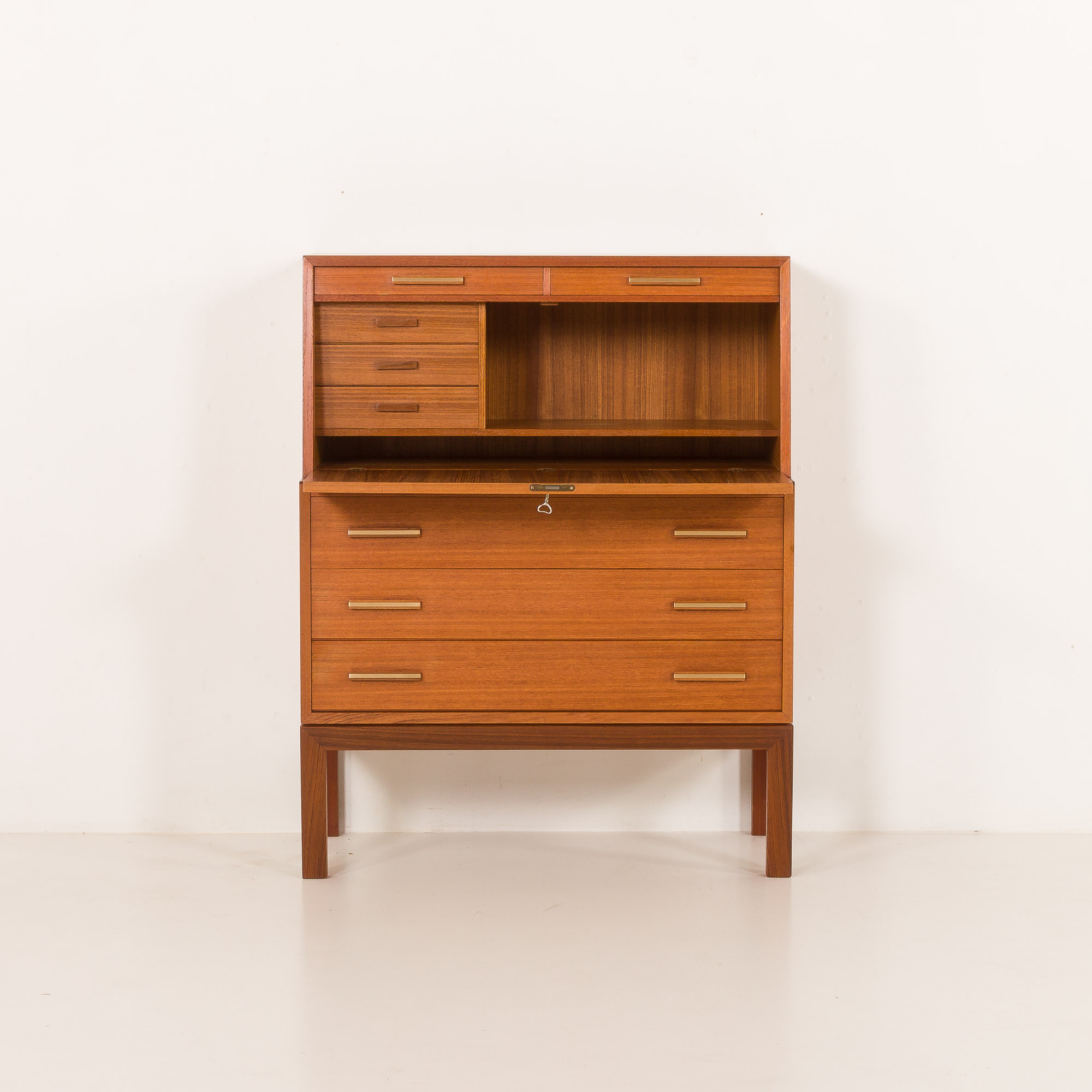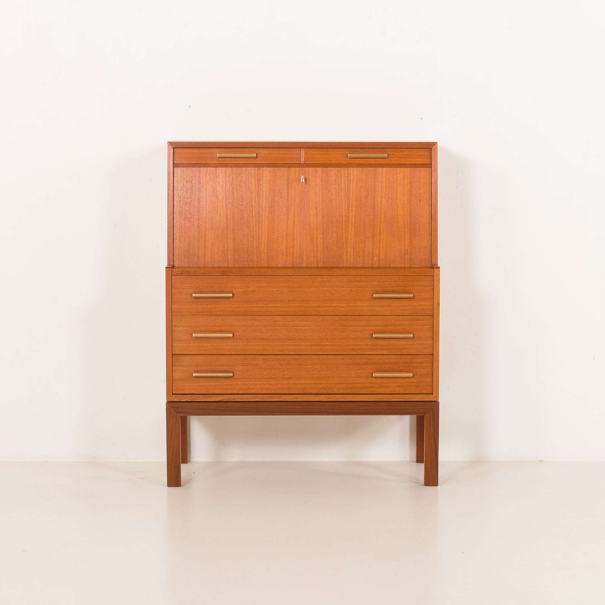 Danish mid-century teak secretaire with brass inlays, 1960s