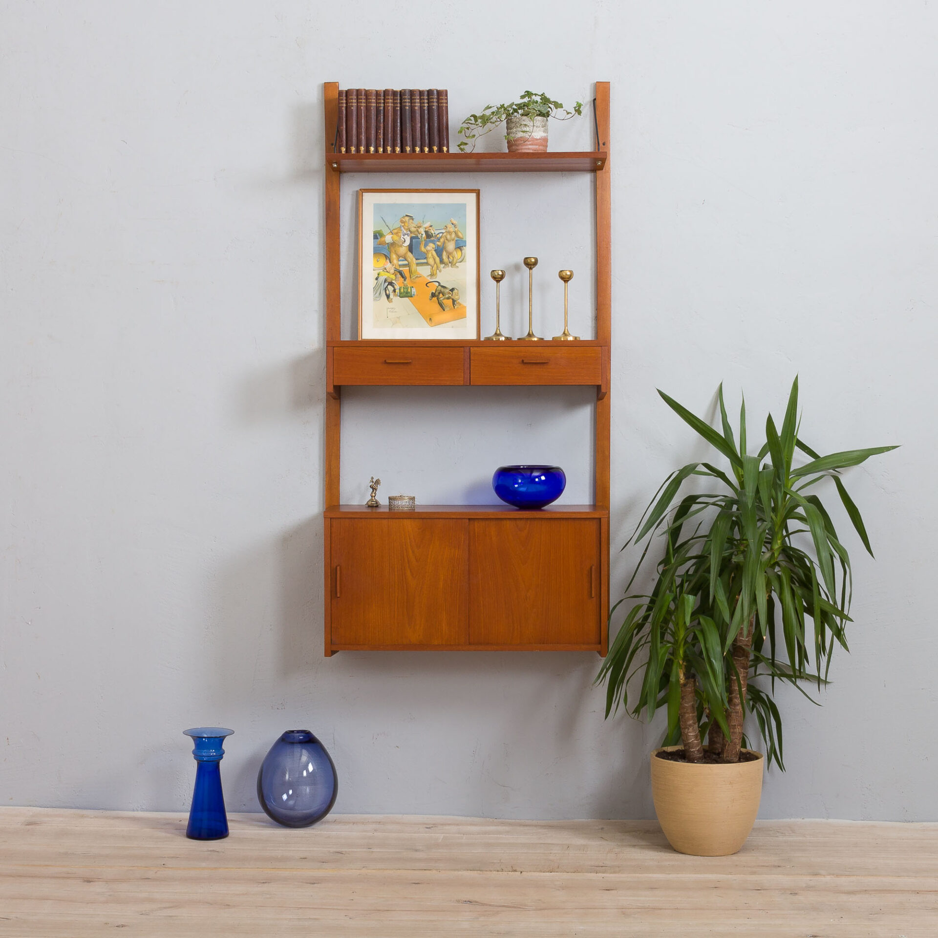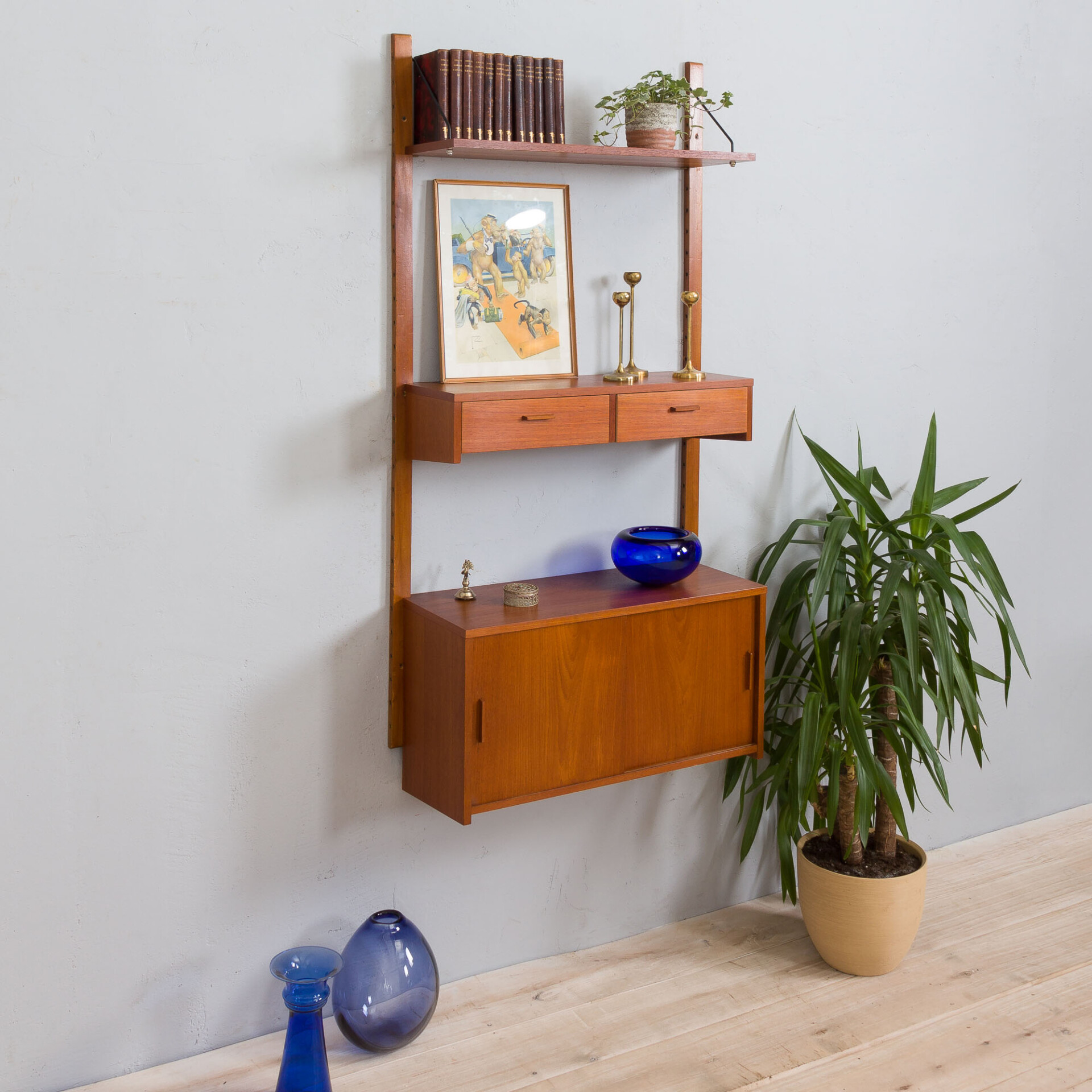 Danish mid century teak wall unit in the style of Kai Kristiansen, 1960s