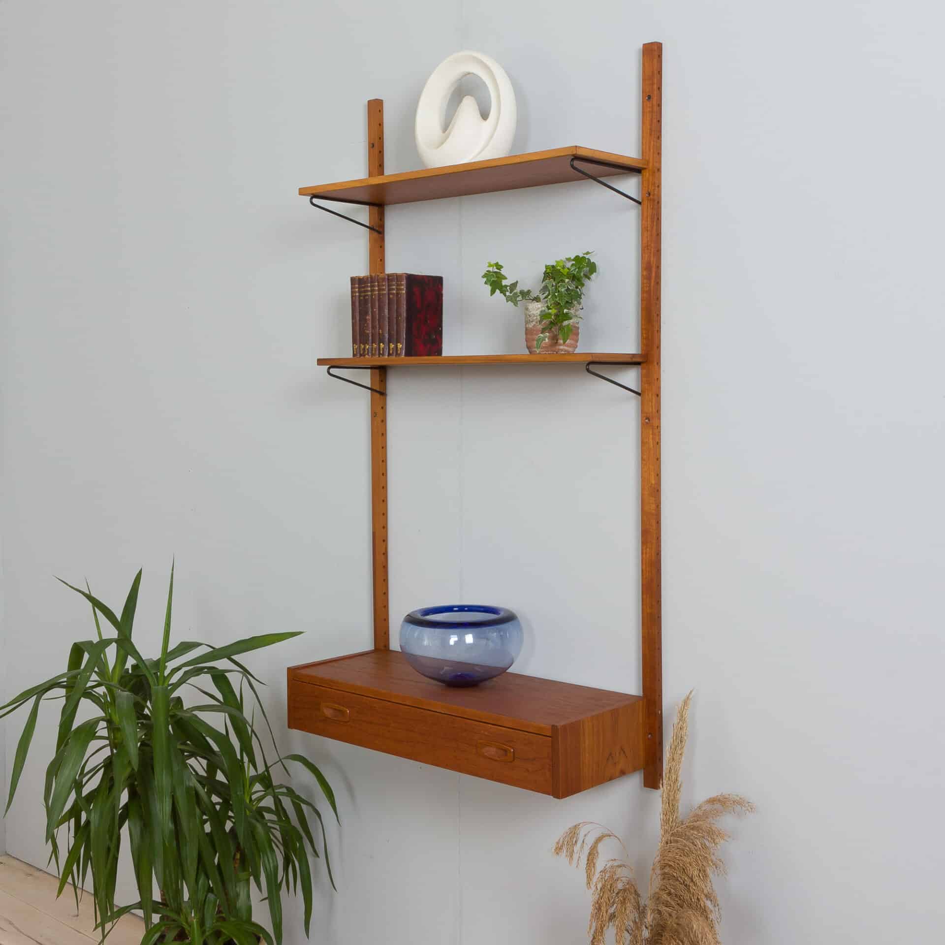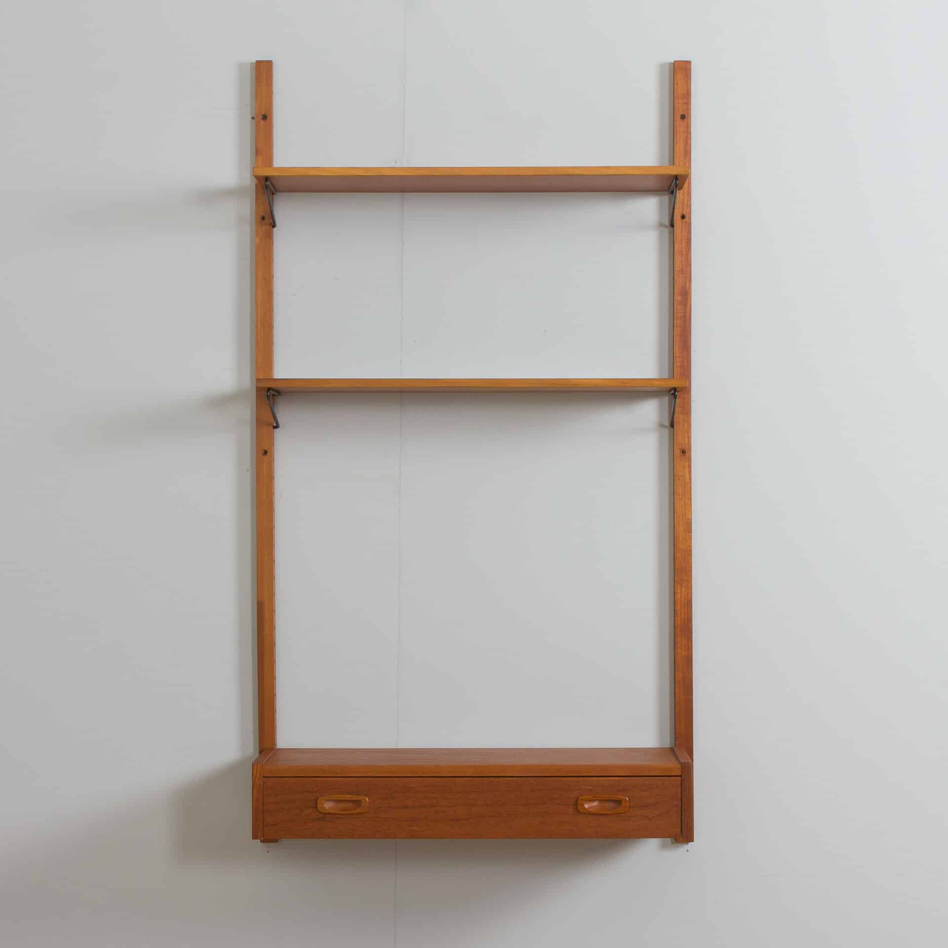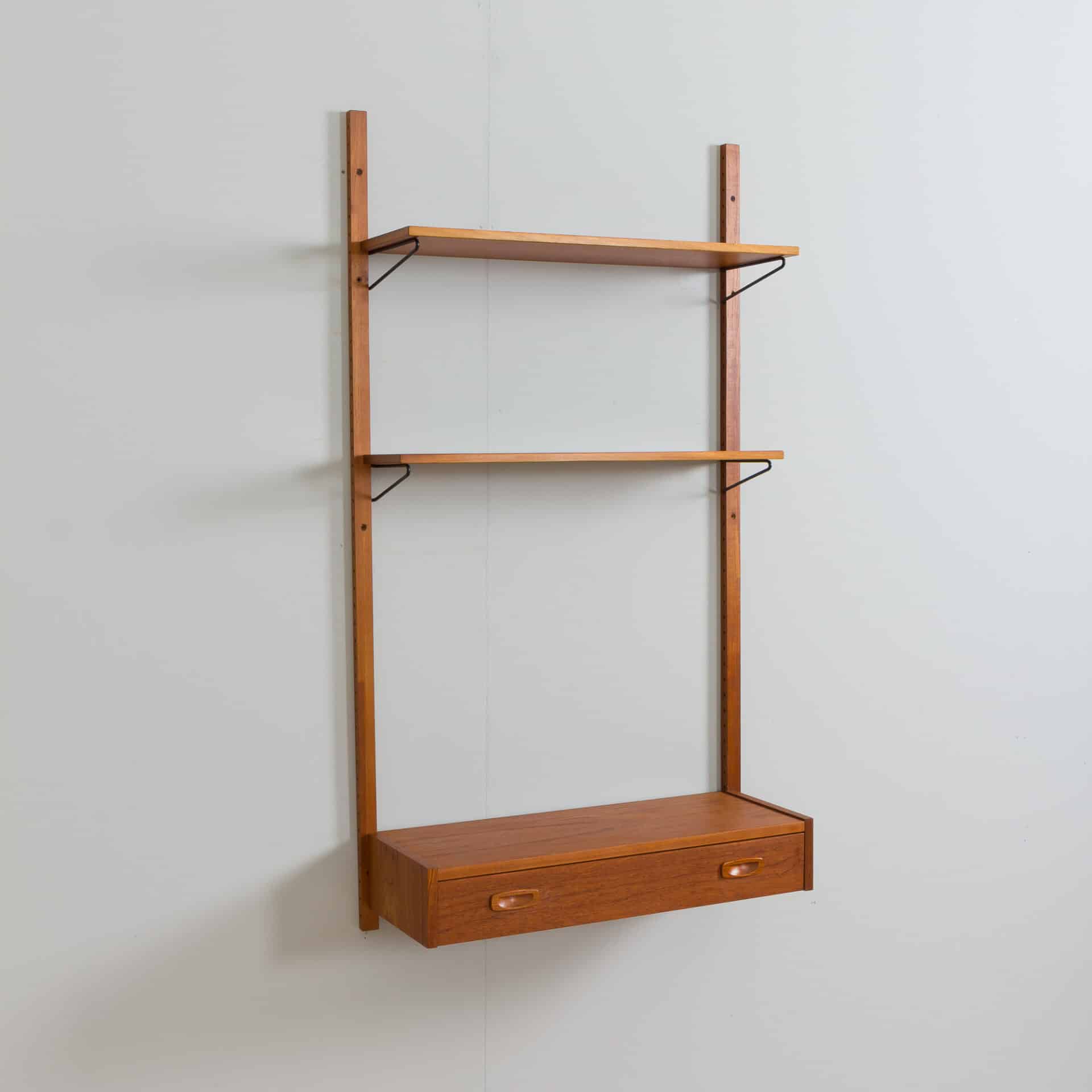Danish mid century teak wall unit with a console and two shelves, 1960s