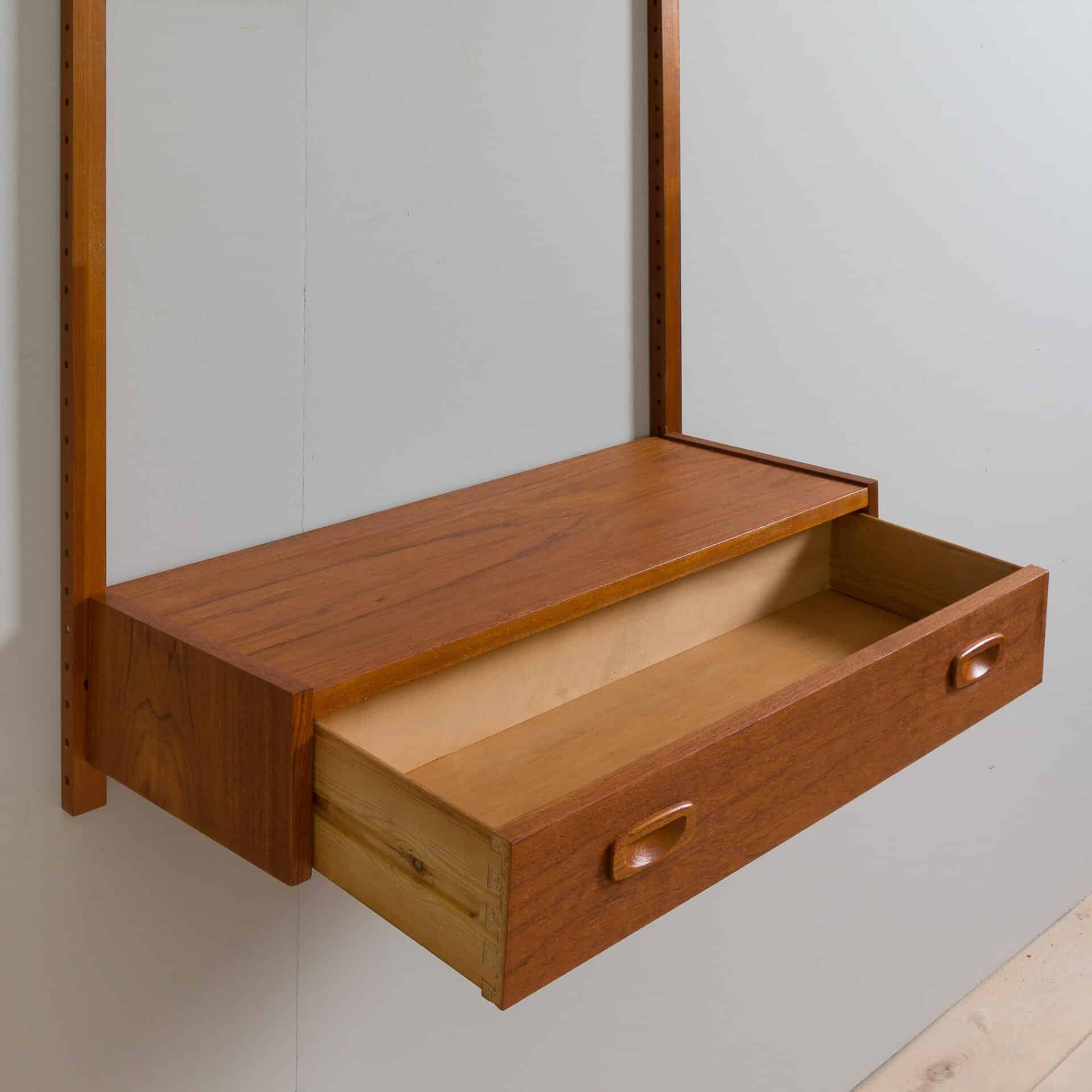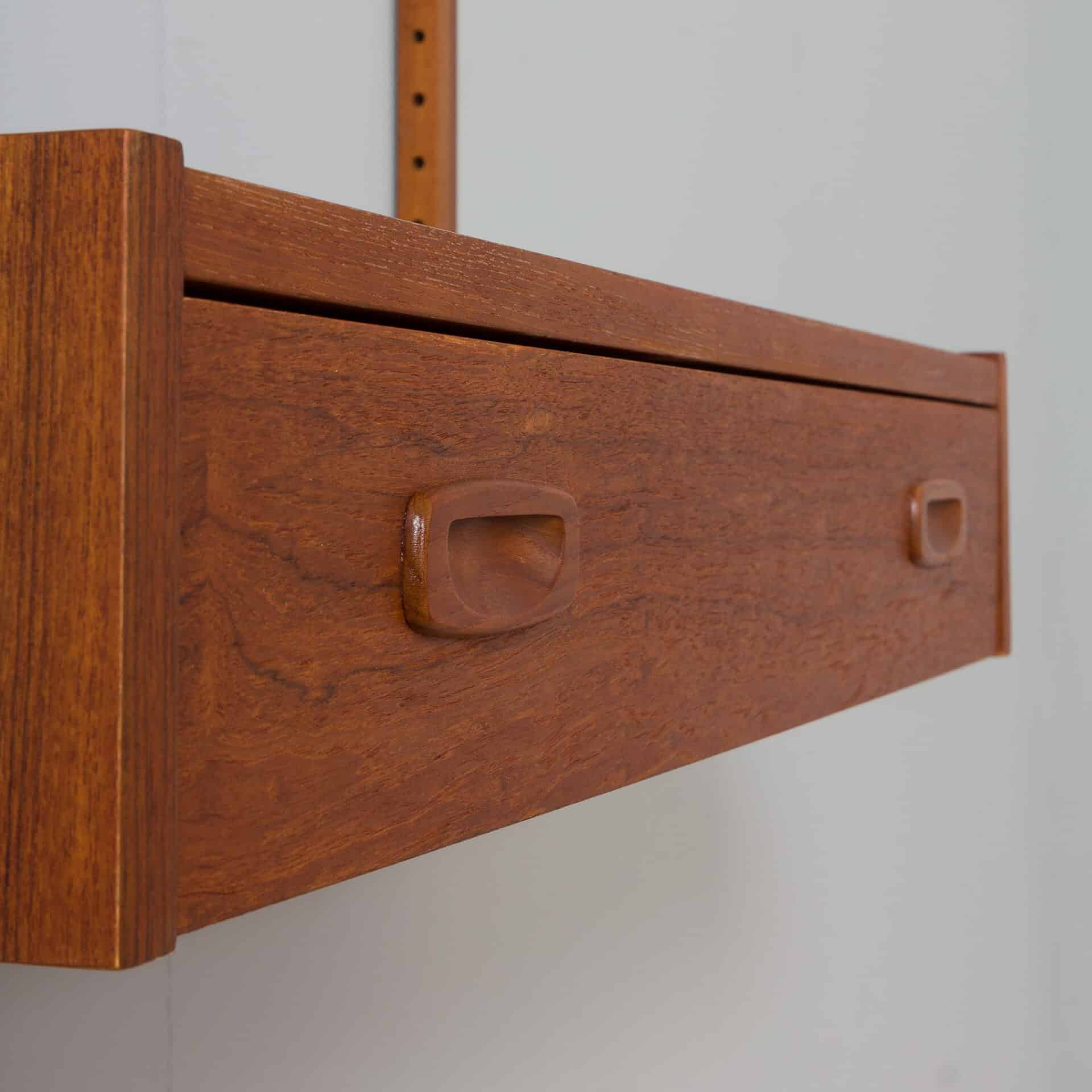 Wall unit uniting the style of Poul Cadovius and Preben Sorensen made in Denmark in the 60s. It can be used as a perfect entry unit or excellent living room decoration. The set consists of: