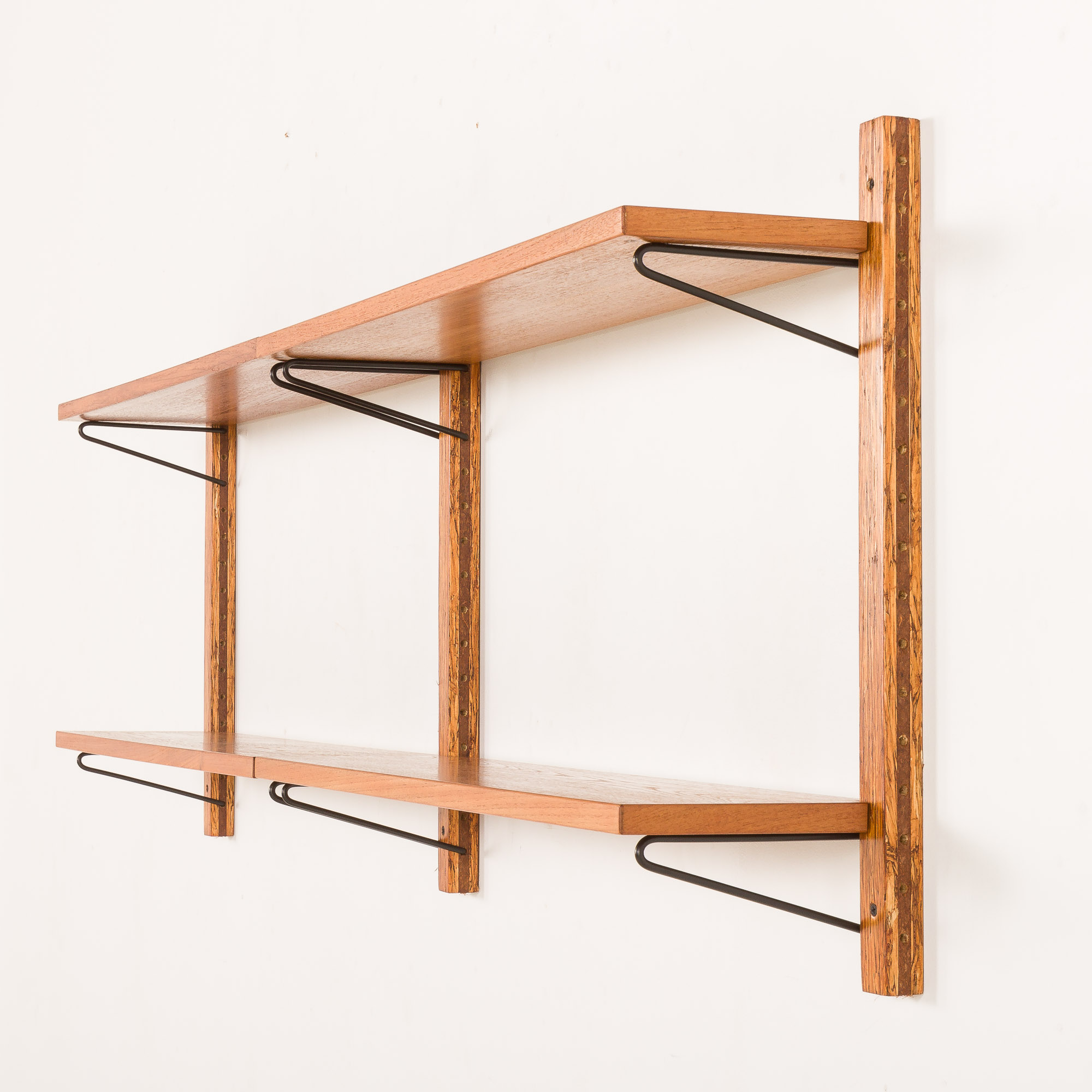 The contrast between the warm teak tone and the natural, fibrous pattern of the hemp wood creates a distinctive visual balance, reflecting the craftsmanship and ecological awareness of Danish design heritage. The open structure and lightweight form make it ideal for displaying books, ceramics, or decorative objects while maintaining an airy, understated aesthetic.