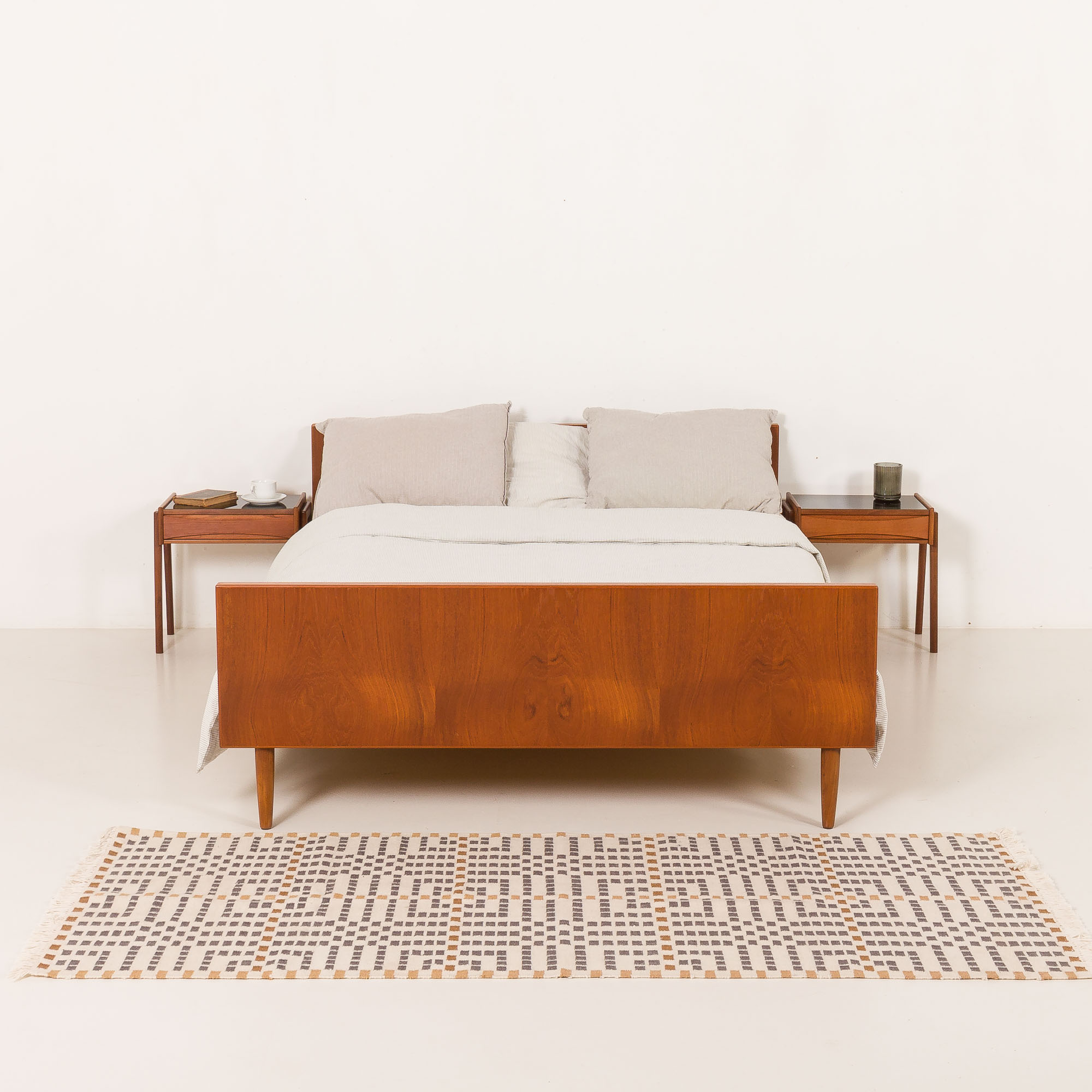 The bed has been renovated; the teak surface has been carefully cleaned with professional compounds and finished with several layers of oil. The piece remains in excellent vintage condition. The frame can be easily disassembled into smaller elements for easier and cheaper transport. The mattress is not included.
