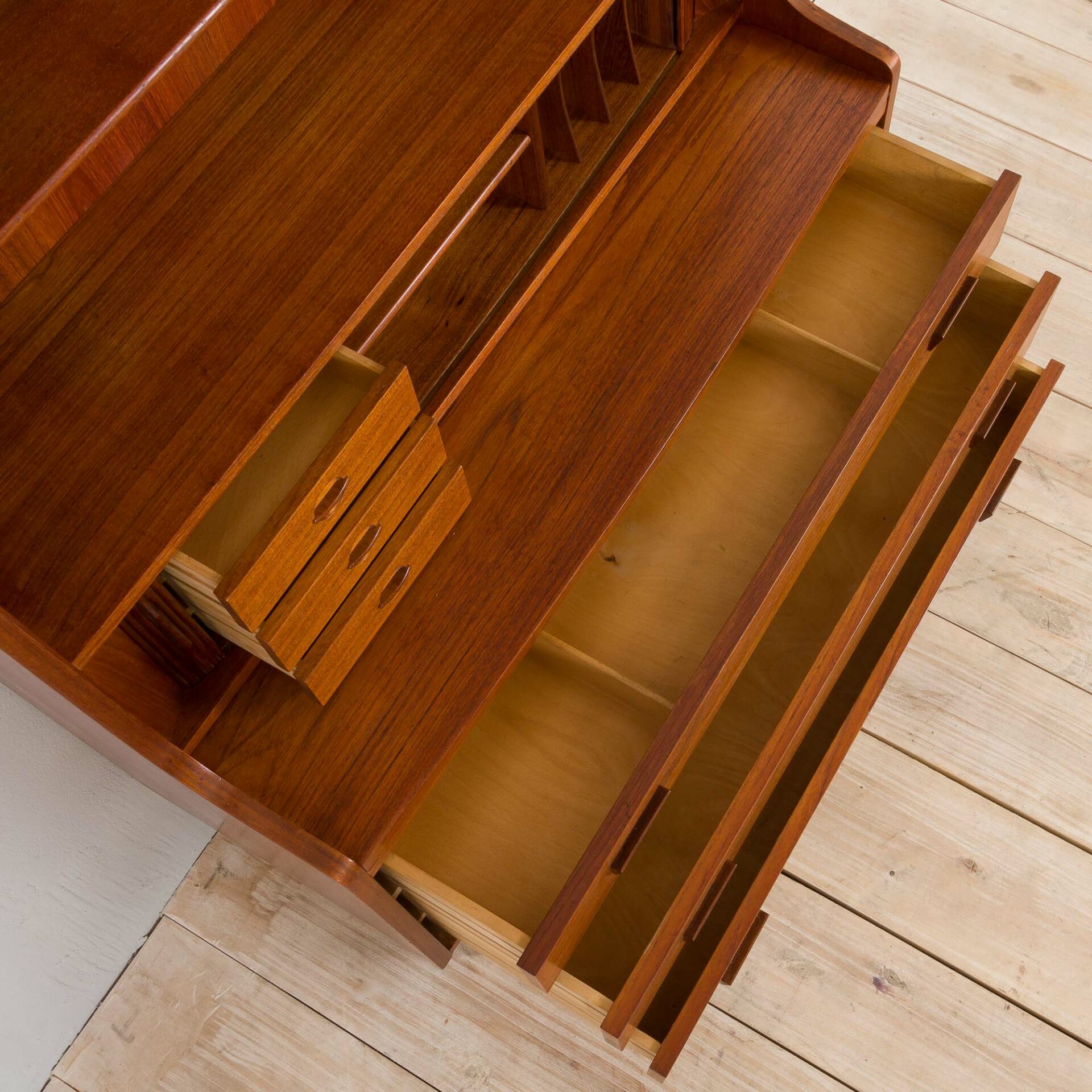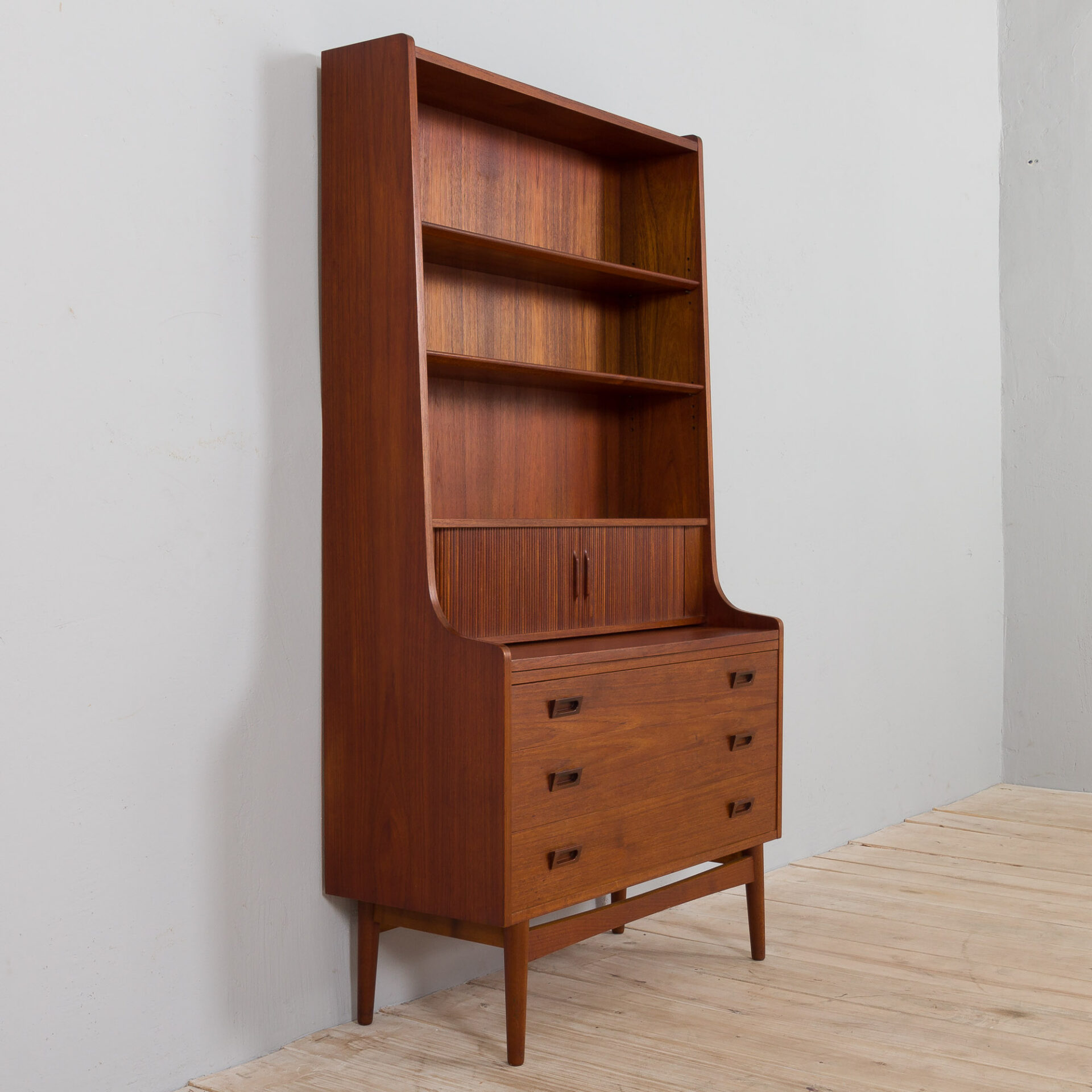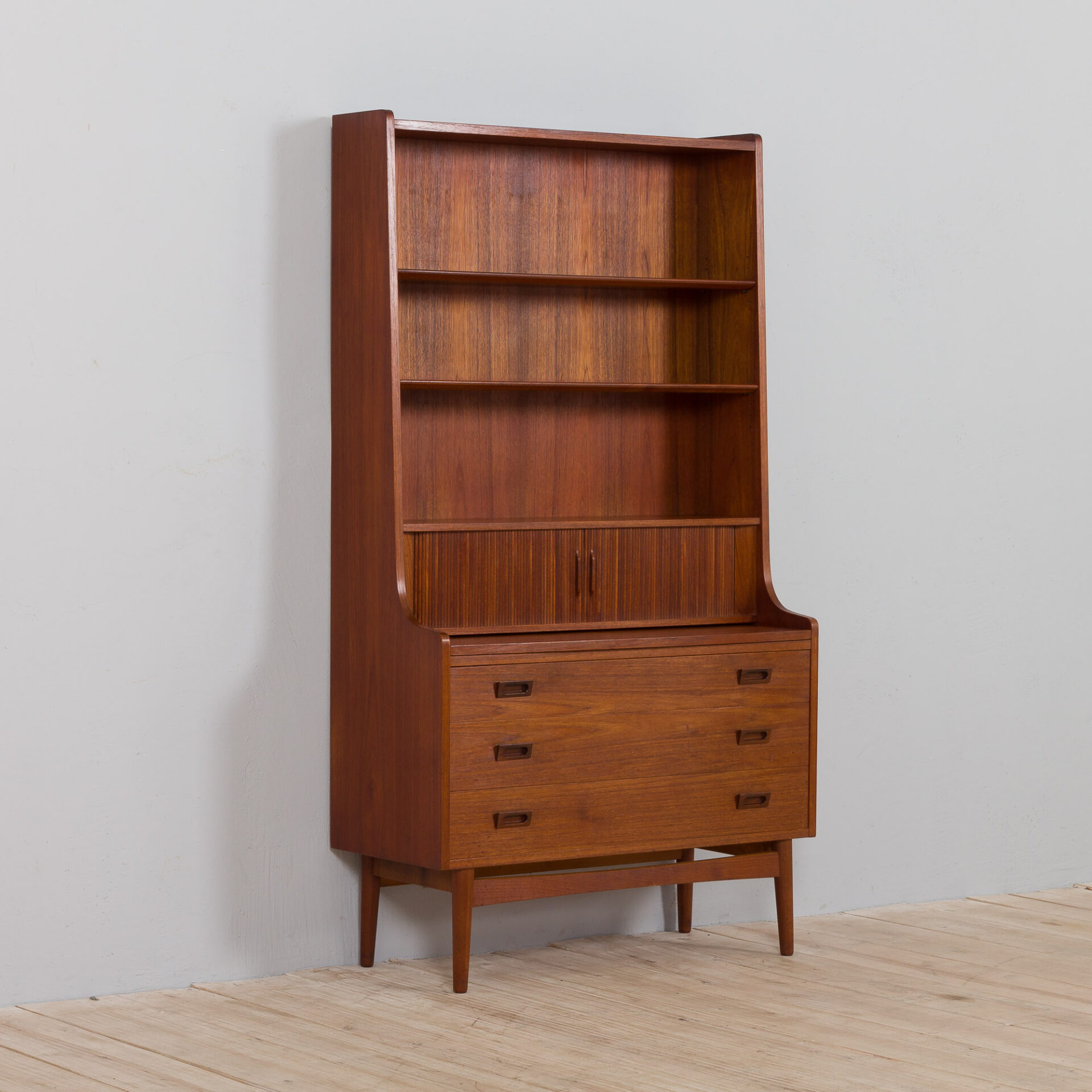 Danish teak bookcase secretaire with drawers and tambour doors, Johannes Sorth, 1960s