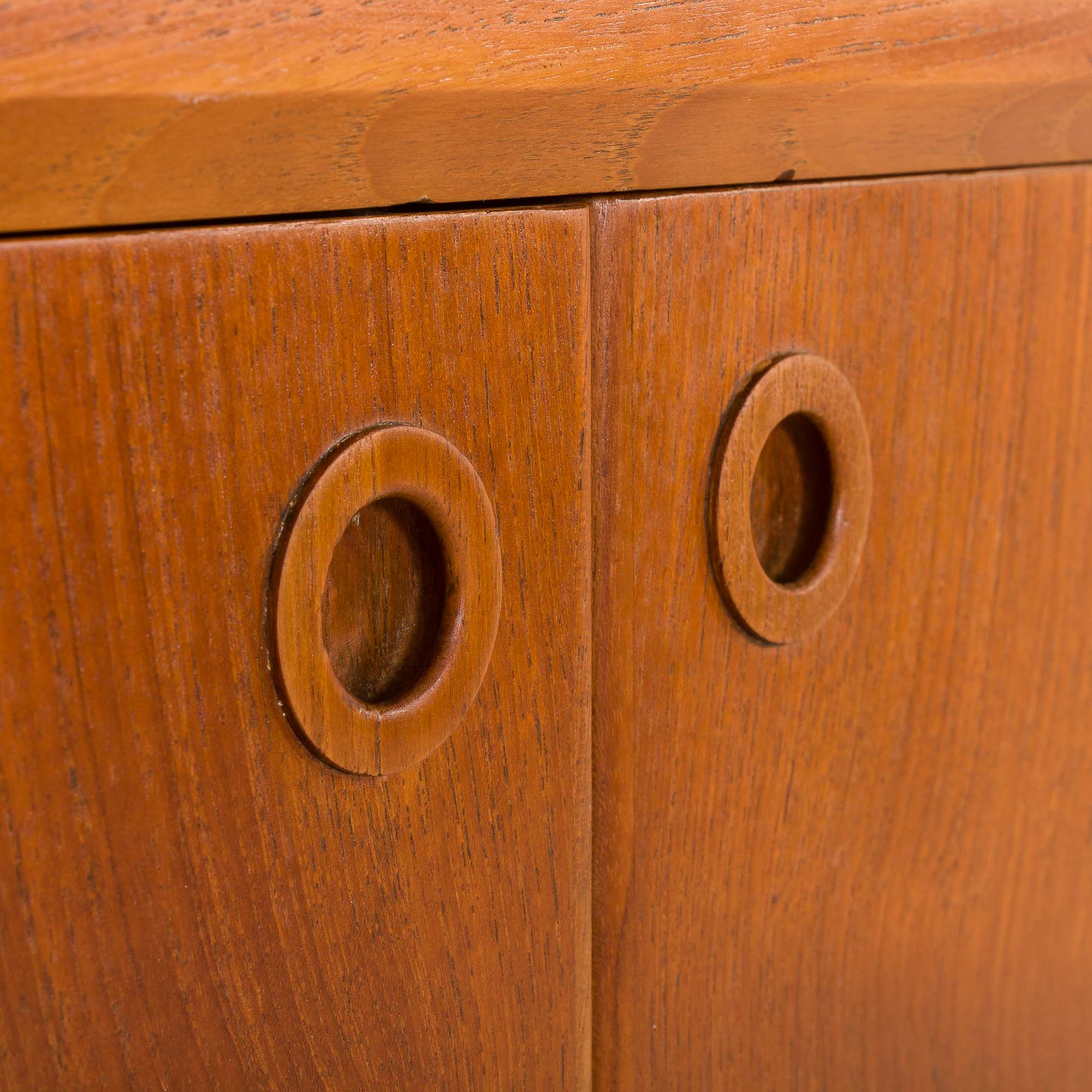 A rare and multifunctional Danish secretaire with a desk in teak, beautifully merging form and function, was most likely by Poul Volther. and made in the 1960s. (There are certain construction features indicating this designer ) This piece exemplifies the understated elegance and superior craftsmanship of Danish modern design. Its warm teak grain, sculptural drawer pulls, and gently tapered legs give it a graceful presence, equally suited for use as a writing desk, bedroom vanity, or hallway statement piece.