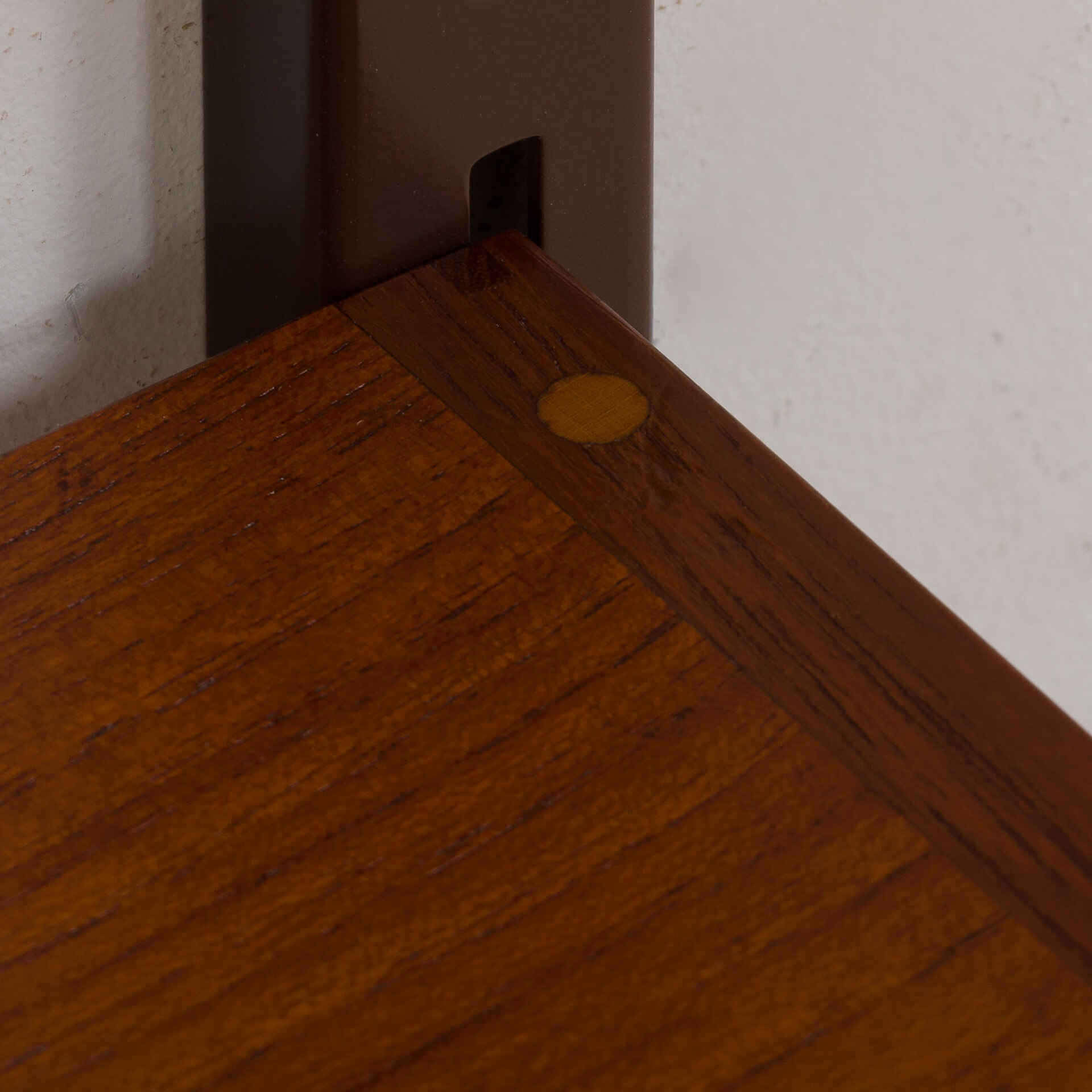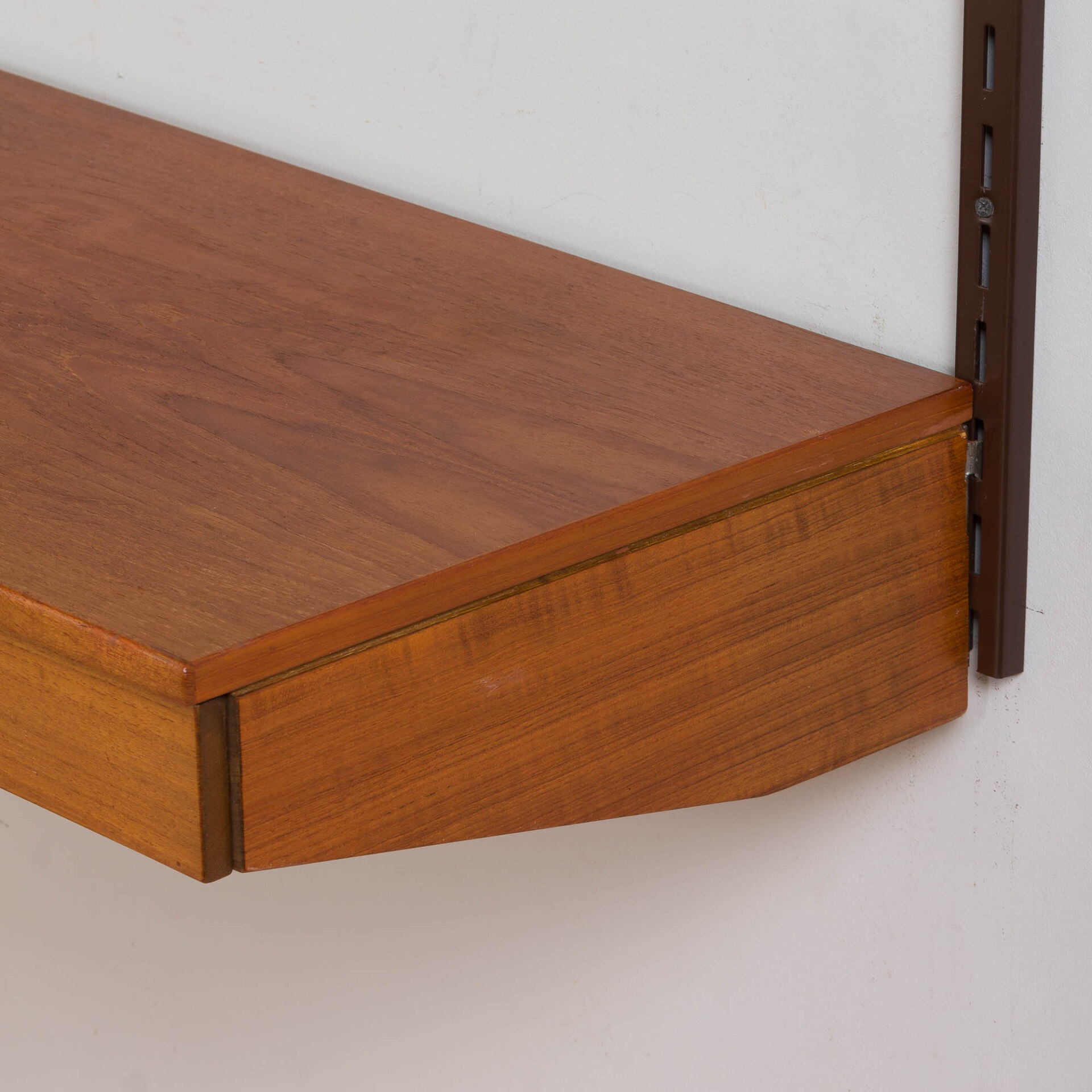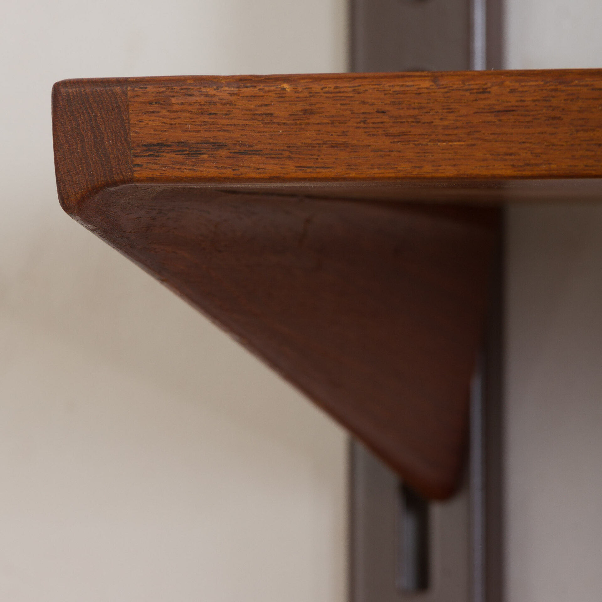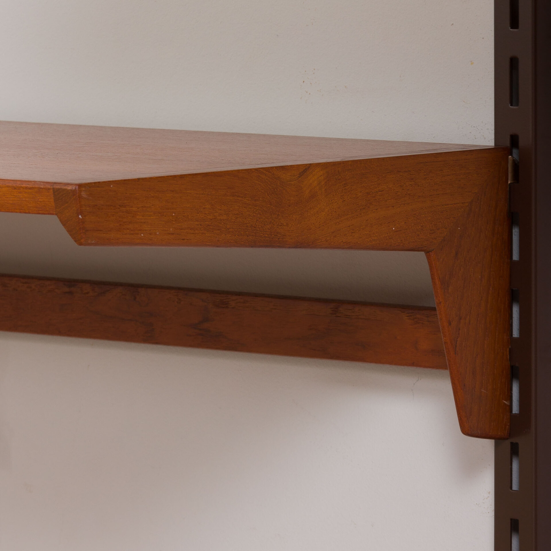 Every component is 86 cm wide and can be easily arranged upon one’s will, using a system of metal brackets fitting into the rails. The set is in a very good vintage condition with minimal signs of wear, additionally preserved with Danish Oil.