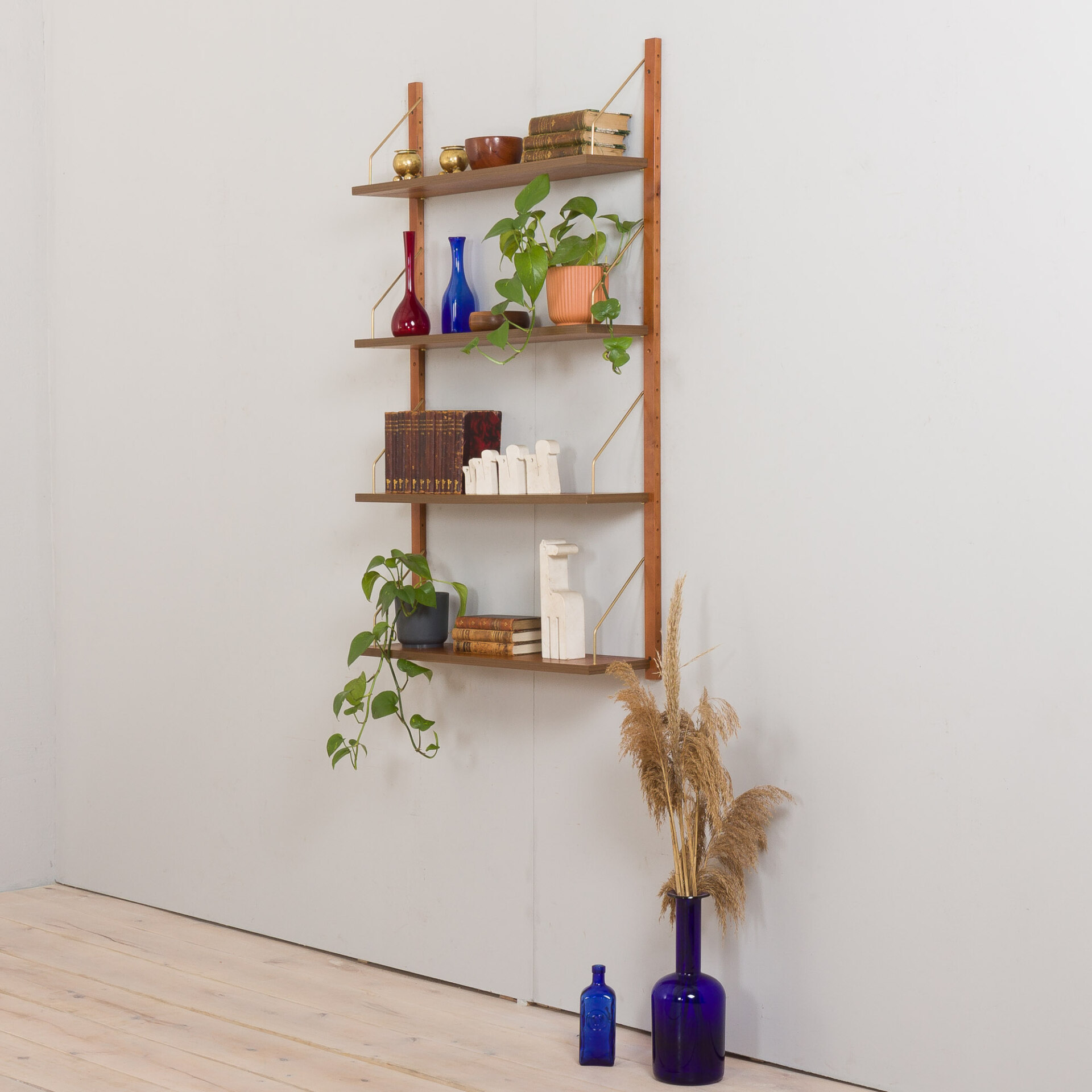Danish vintage bookshelves in teak, mid century wall unit with 4 shelves, 1960s