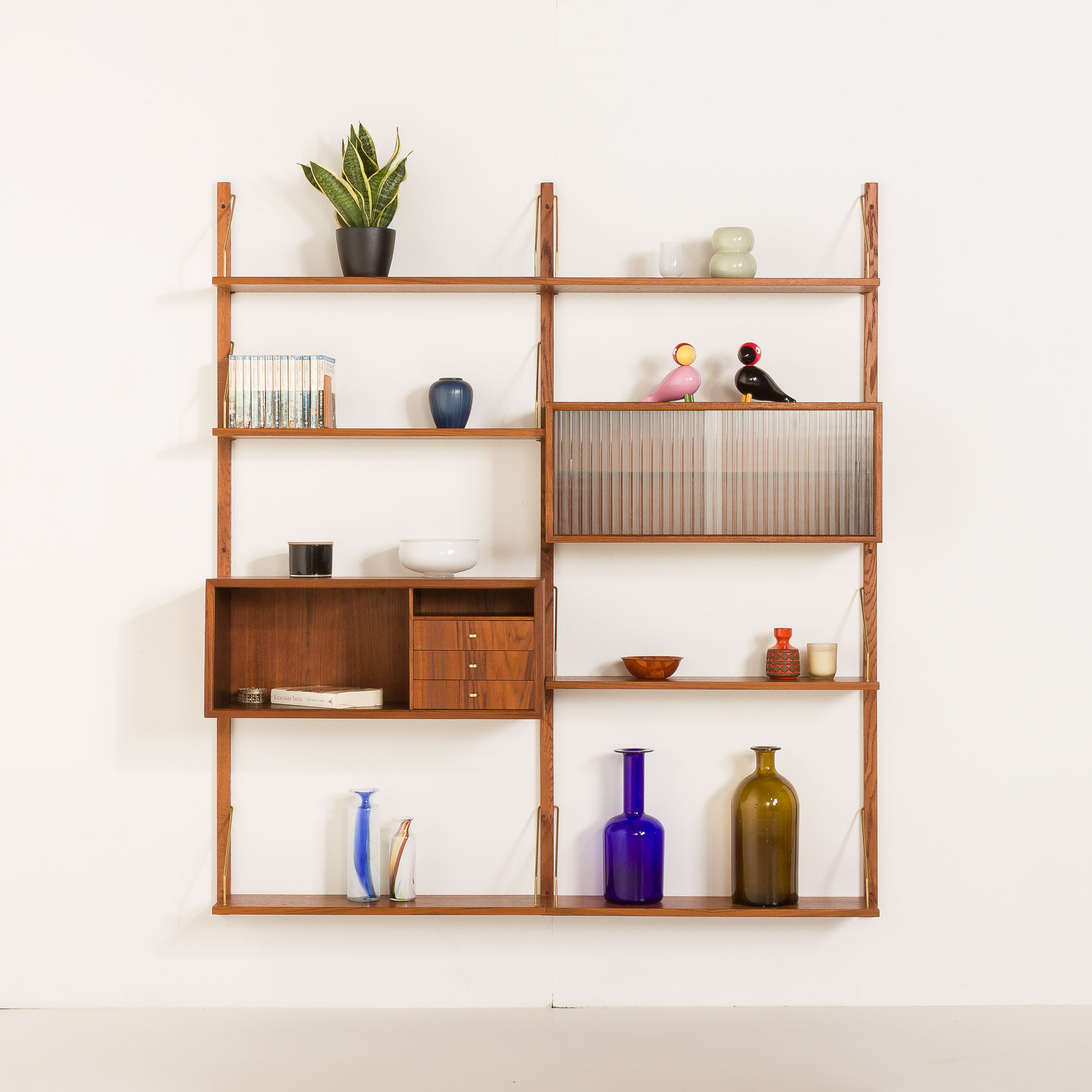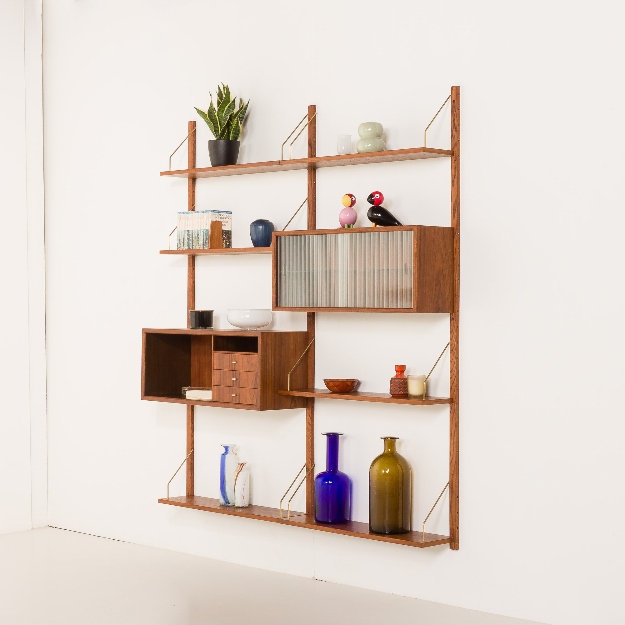 We have over 200 Danish shelves from the mid-20th century. We offer them in various sets. If you are looking for other types of wood or a larger unit, please visit our website or let us know.