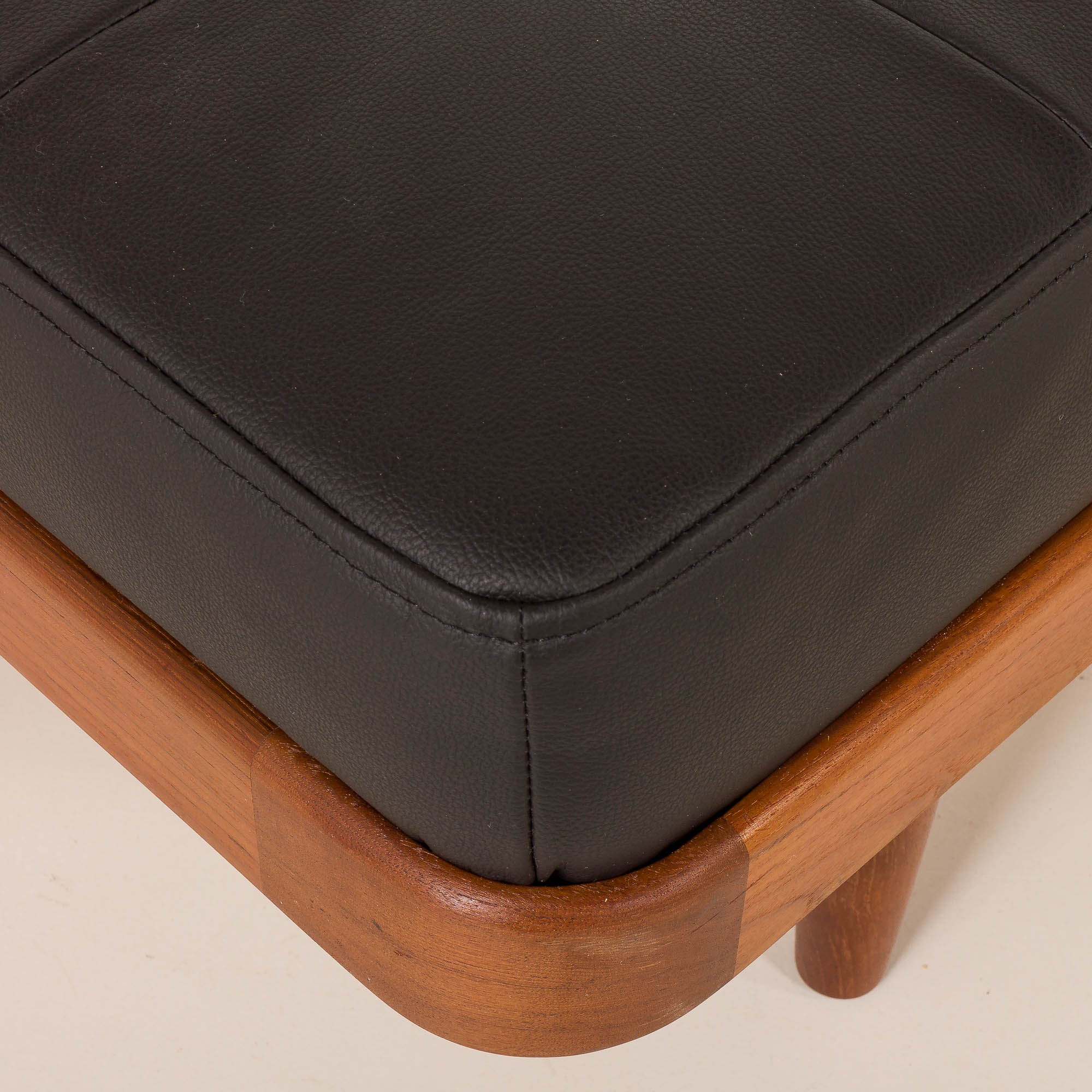 Danish mid-century modern daybed crafted during the 1960s. This piece features a solid teak frame paired with a new quilted mattress upholstered in elegant black leather.