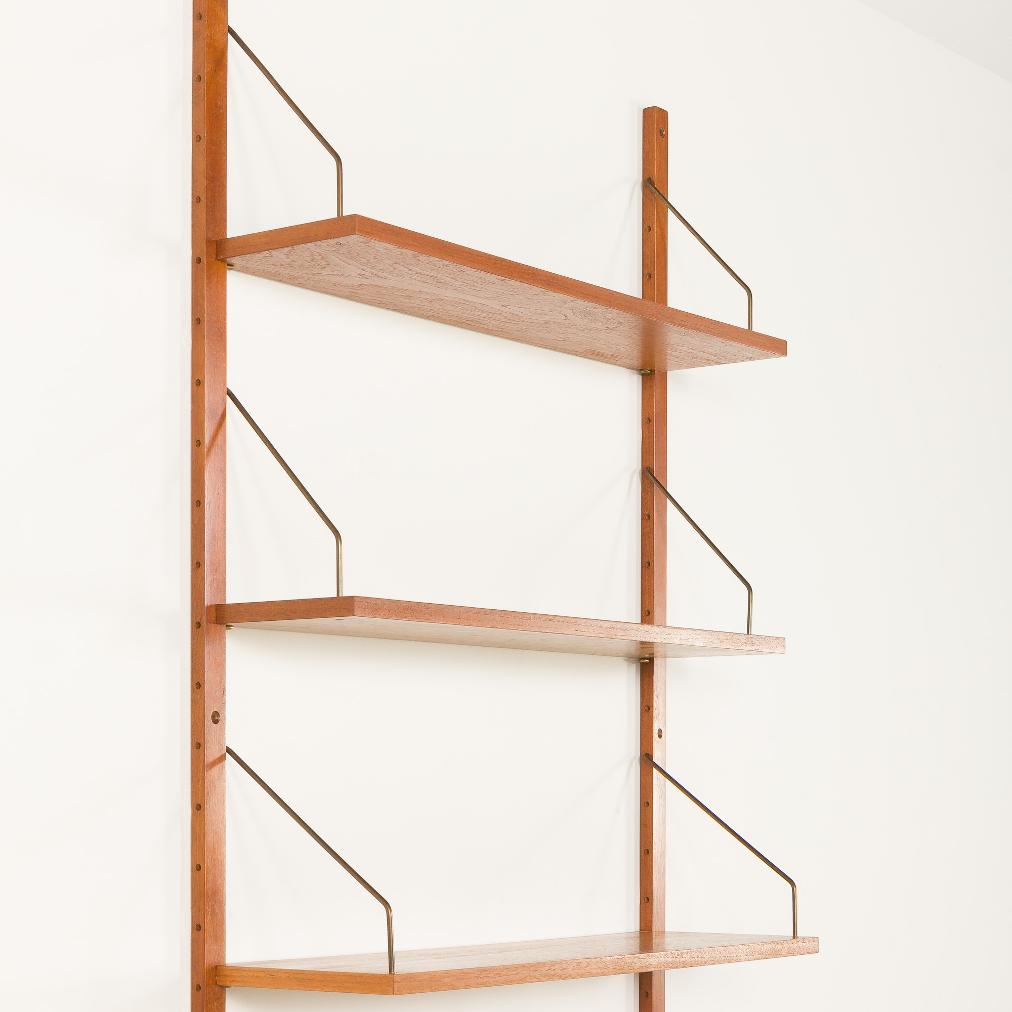 A Danish home office shelving unit with a secretaire from the 1960s, resembling Poul Cadovius’s design from the same period. It provides spacious working and storage space. Perfect for the living room or bedroom, this wall unit is an entirely modular shelving system. All elements are 80 cm wide and can be arranged as needed.
