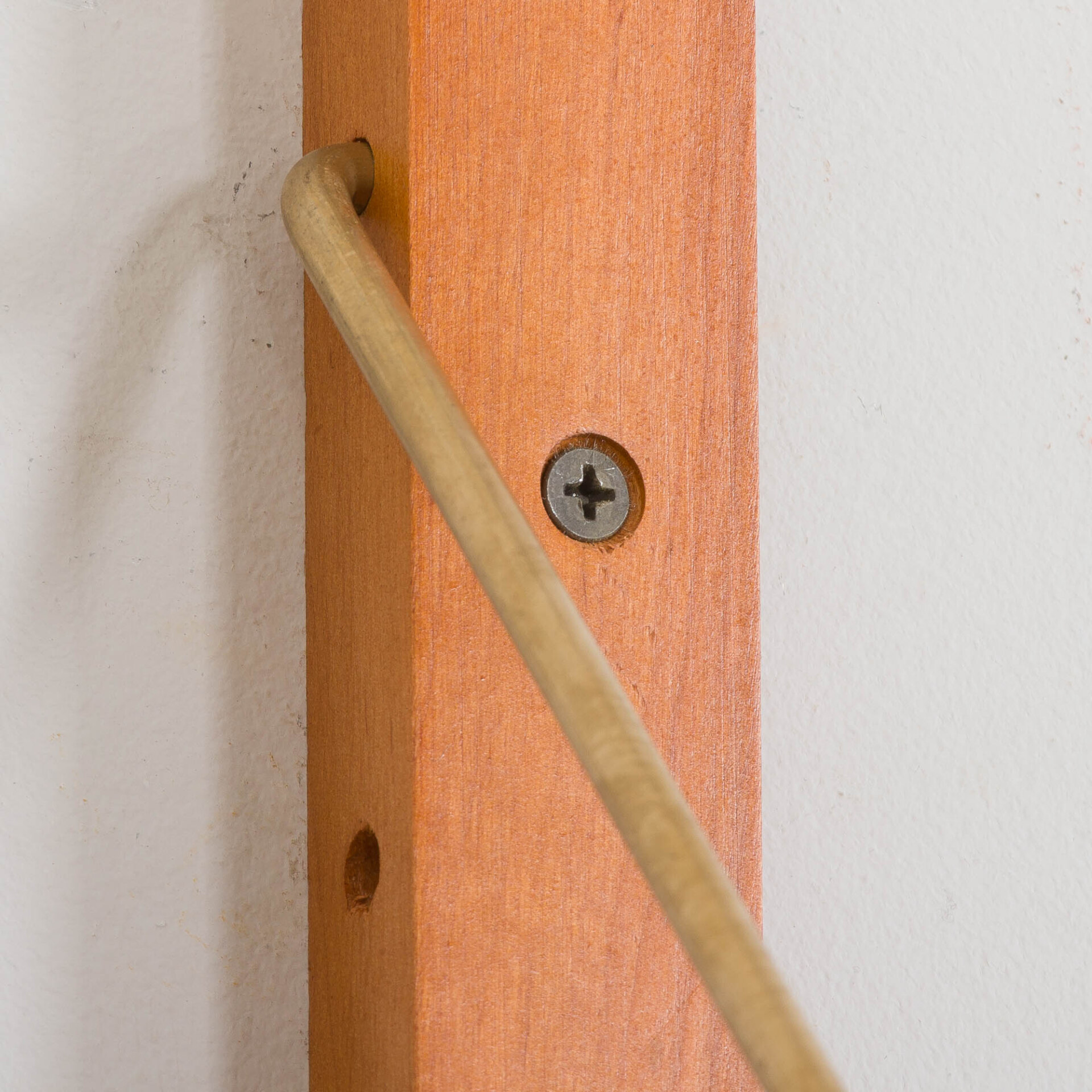 Danish vintage teak bookshelves hanging on solid wood rails are a pretty composition to expose books and decorations. Designed in the style of Poul Cadovius or Preben Sorensen, most likely in the 60s.
