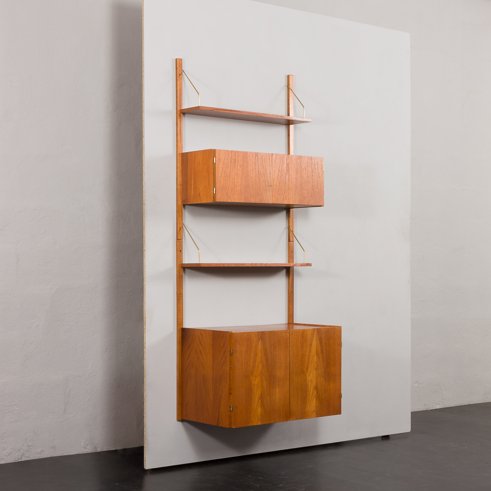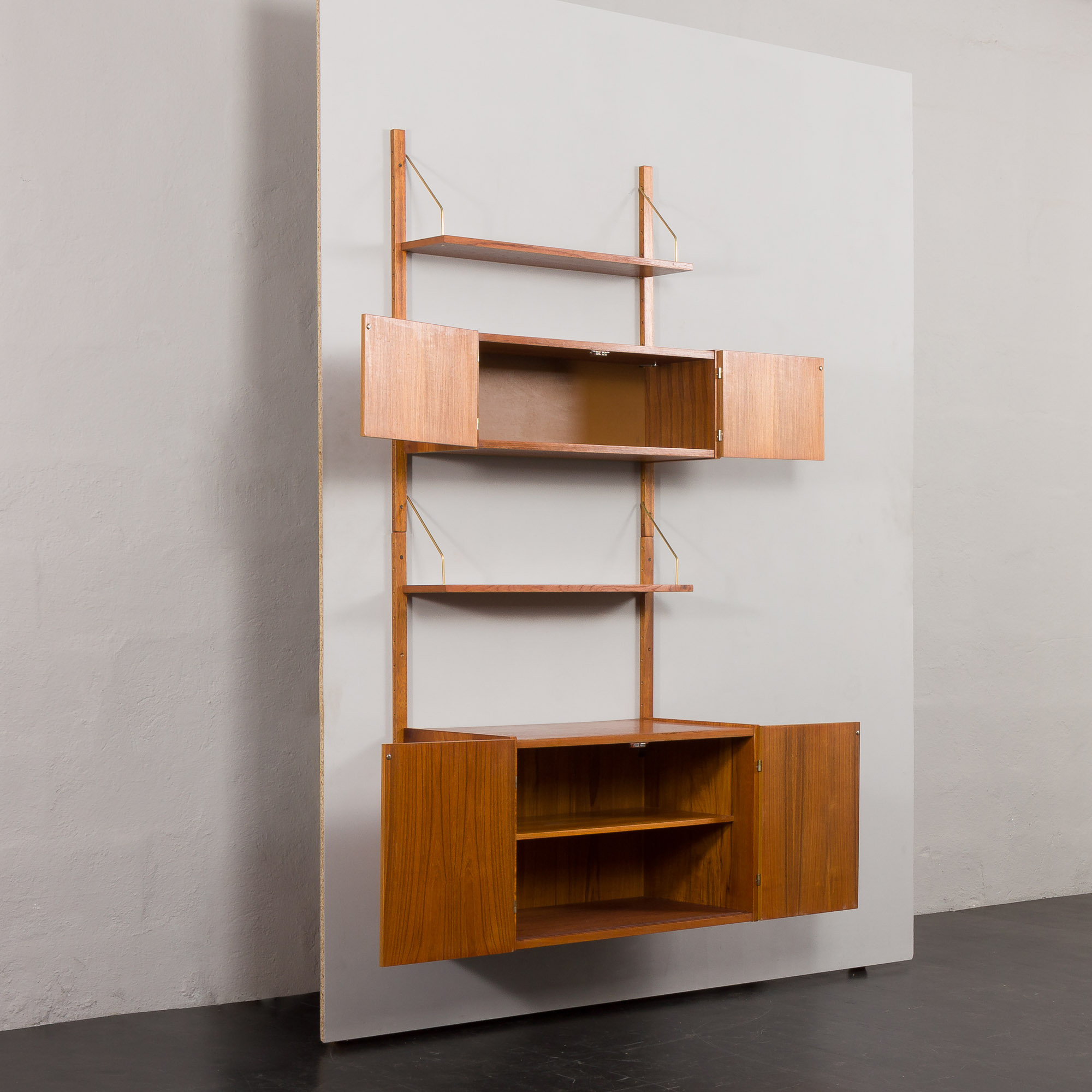 Danish mid-century wall unit in teak with two cabinets, 1960s