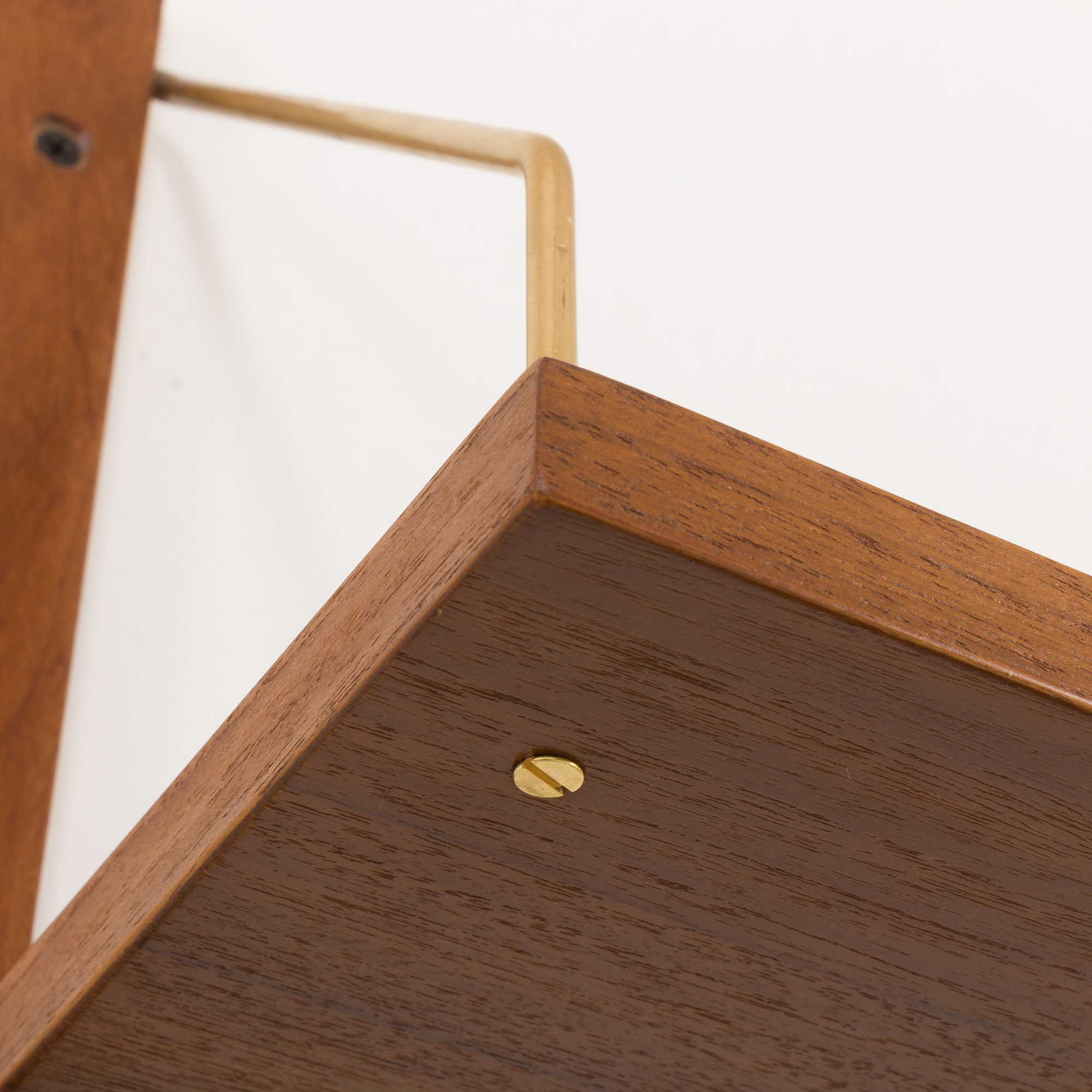 Gerade Linien, wunderschön gemasertes Teakholz, hochwertige Handwerkskunst und ein modulares Aufhängesystem unterstreichen den charakteristischen Stil des skandinavischen Designs..