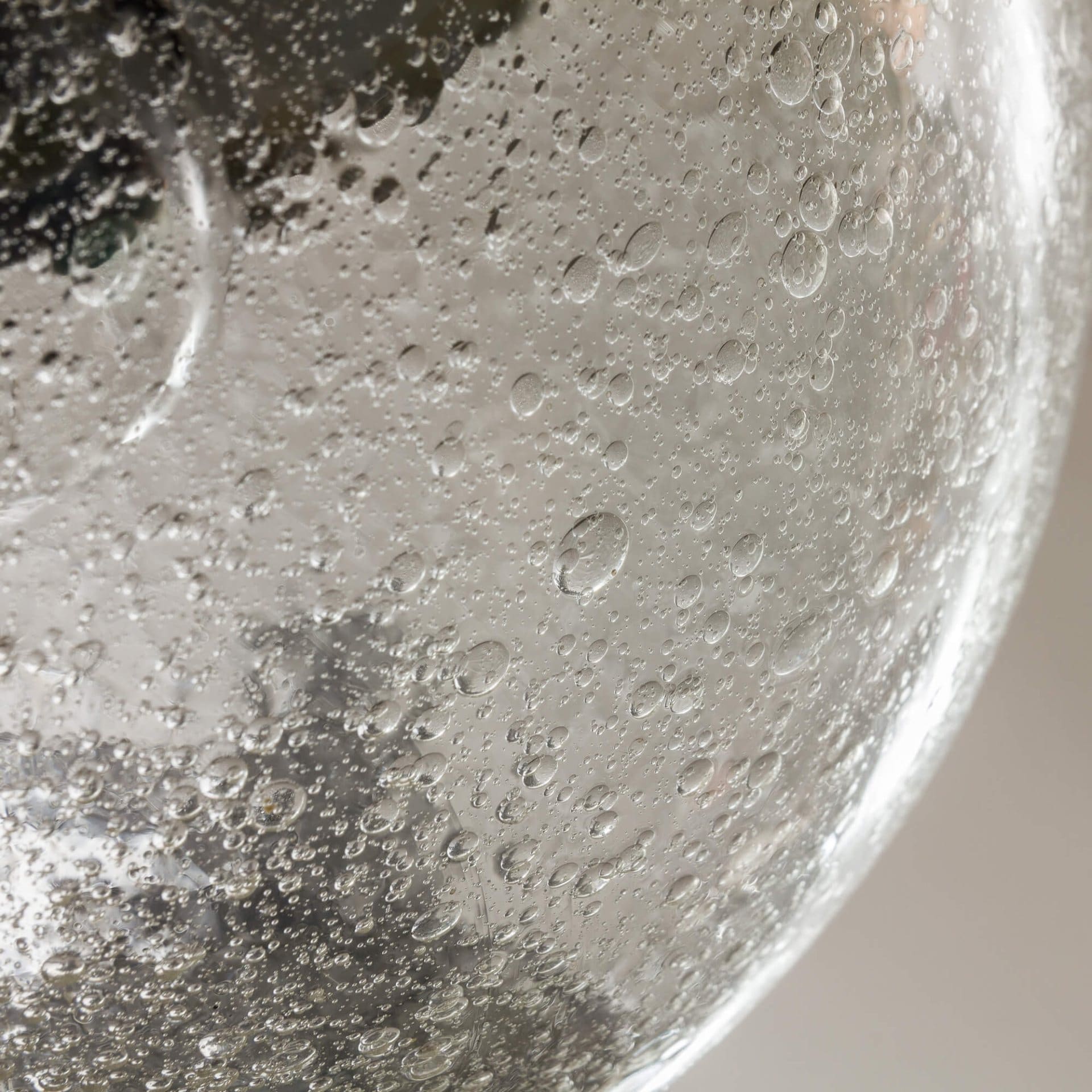 A large Sciolari chandelier from the 70s with eight Murano frosted glass shades which capture the air bubbles inside. The structure made out of white bakelite and chrome plated metal. Very good original condition.
