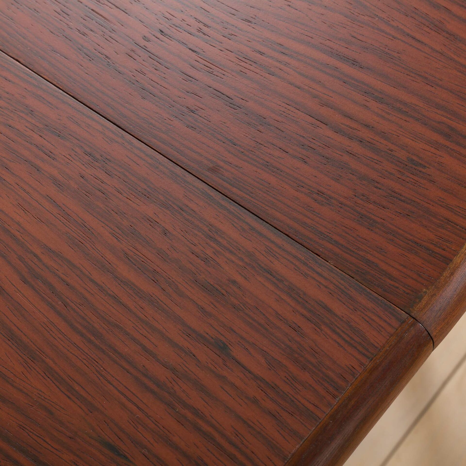 The table opens smoothly on wooden runners and extends to 240 cm. Two extension leaves with aprons provide a continuous line with the beautiful, rich rosewood wood grain. The table top has been newly varnished, so the piece is in excellent condition.