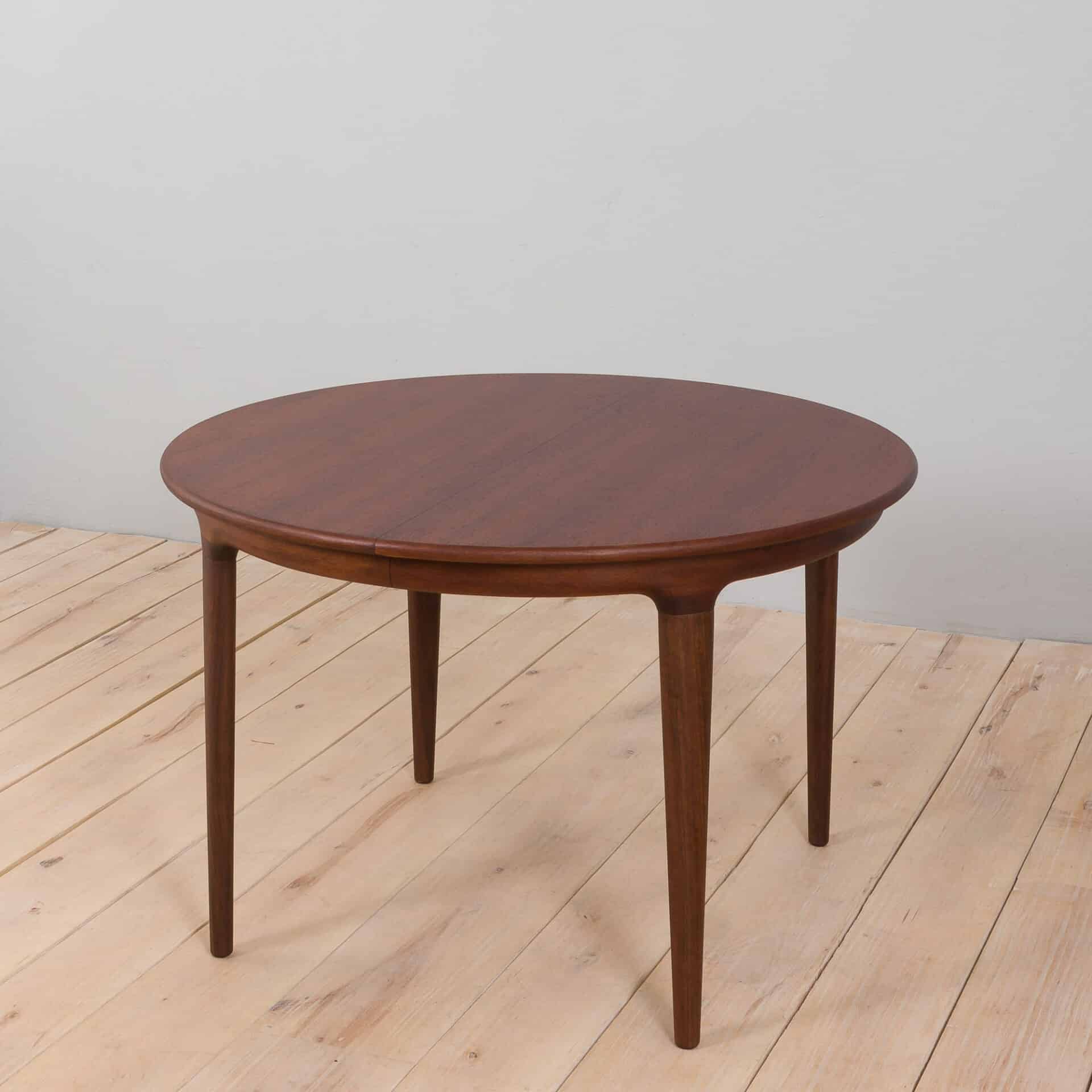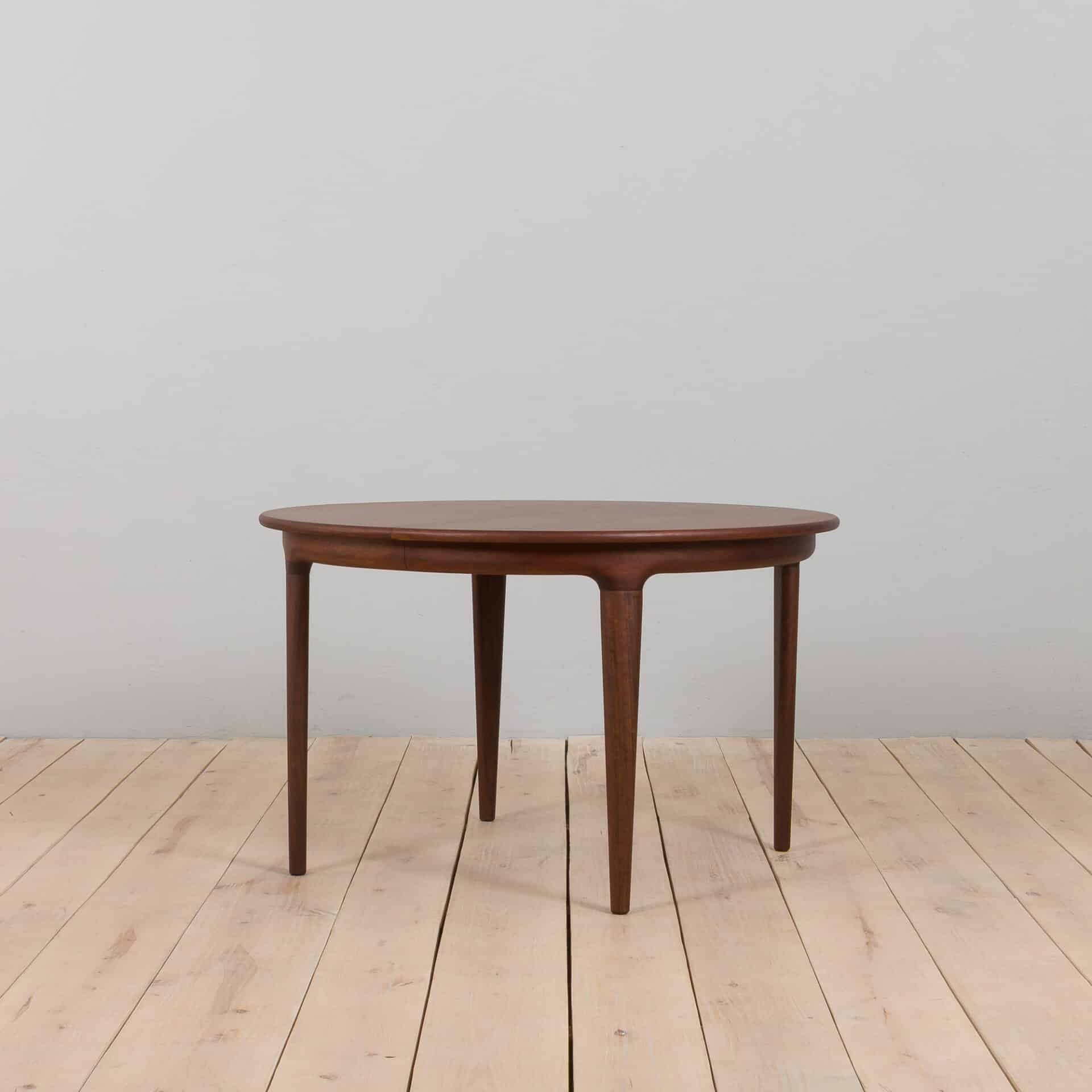 Johannes Andersen, Uldum rosewood round dining table with 2 extension leaves with aprons, Denmark, 1960s