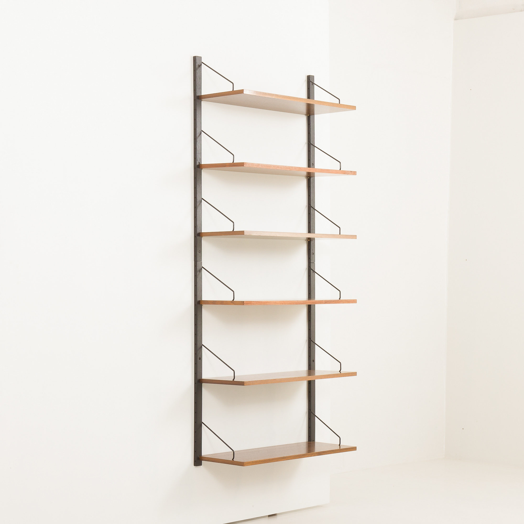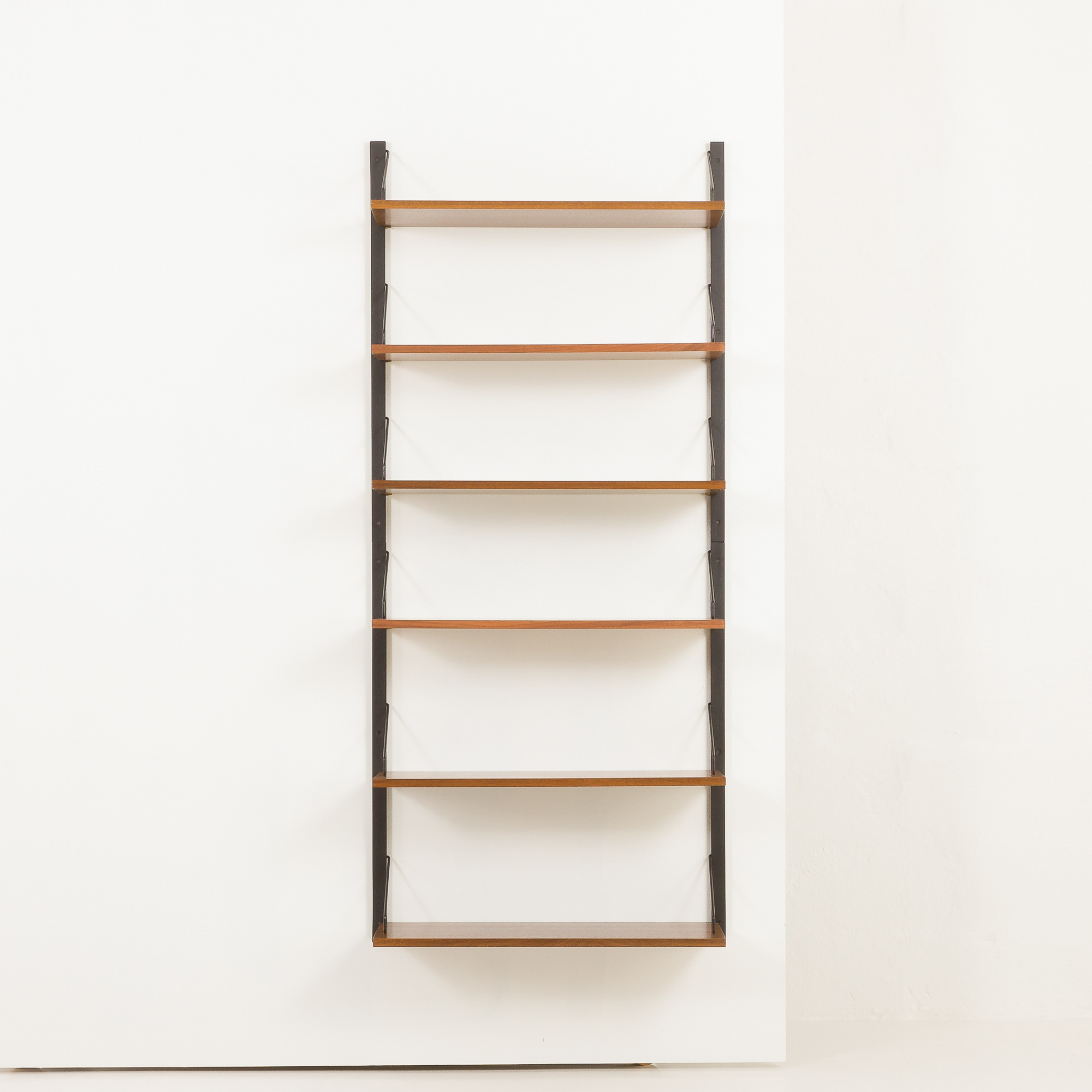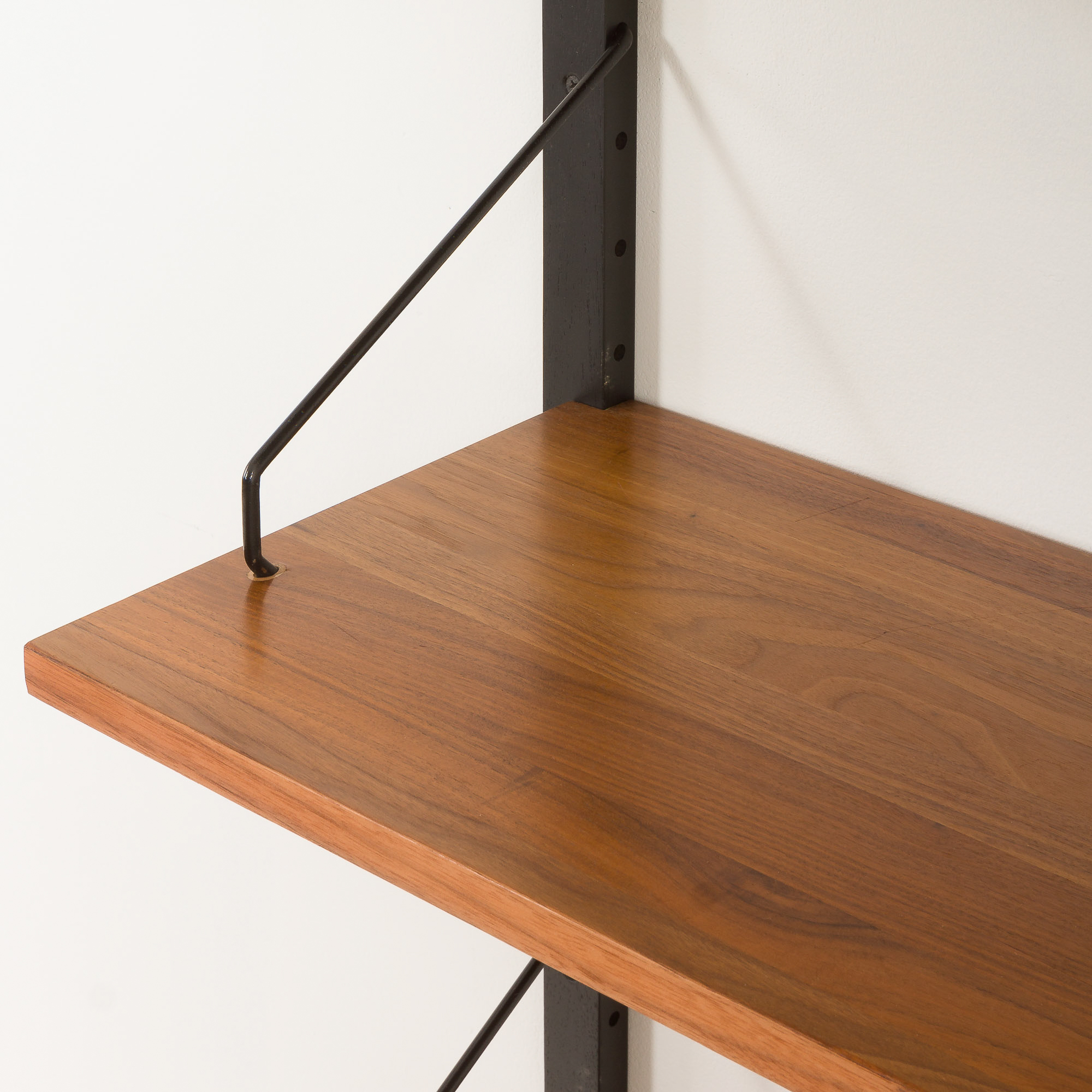 The set has been checked by our team. It is in excellent vintage condition. Each shelf has engraved inscriptions: “Made in Denmark”. All components fit together. The wood has been cleaned and rejuvenated with professional compounds.