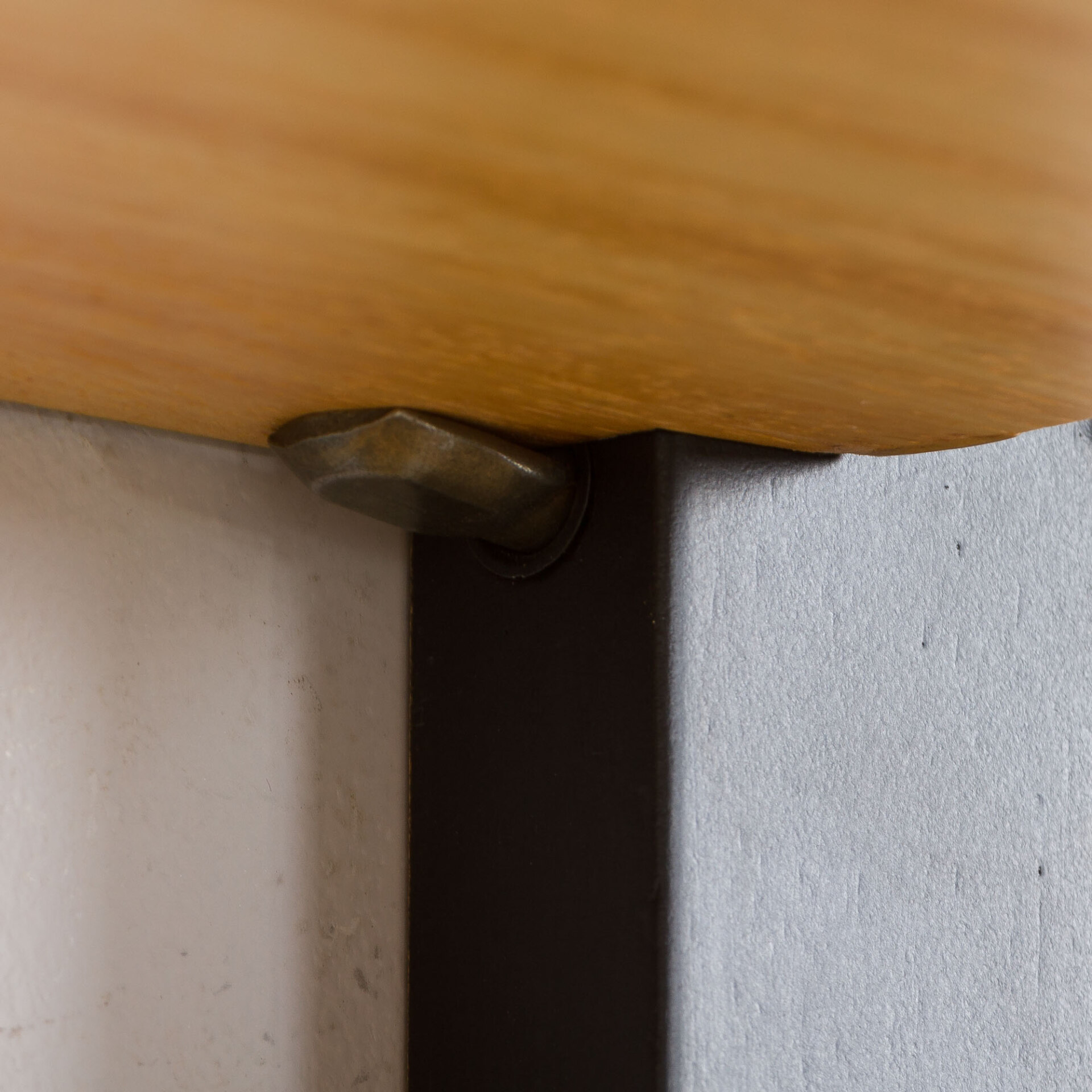 Fantastic condition with minor traces of use and black painted hardware. Shelves coated with new layer of mat lacquer.