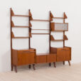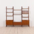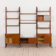 Scandinavian 3 bay wall unit in teak with 4 cabinets and 6 shelves