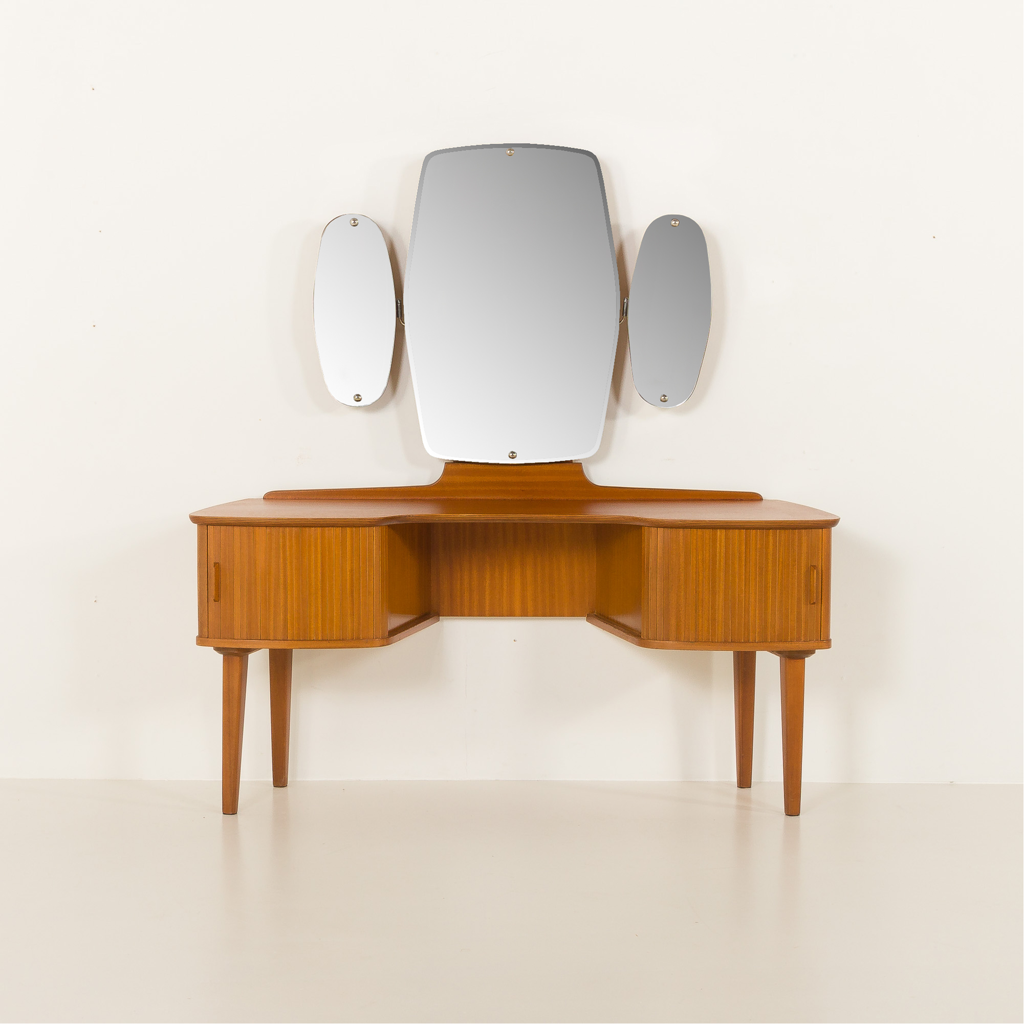 Skandinavischer Schminktisch aus der Mitte des Jahrhunderts mit verstellbaren Spiegeln und Tambour-Türen, Norwegen 1970er Jahre