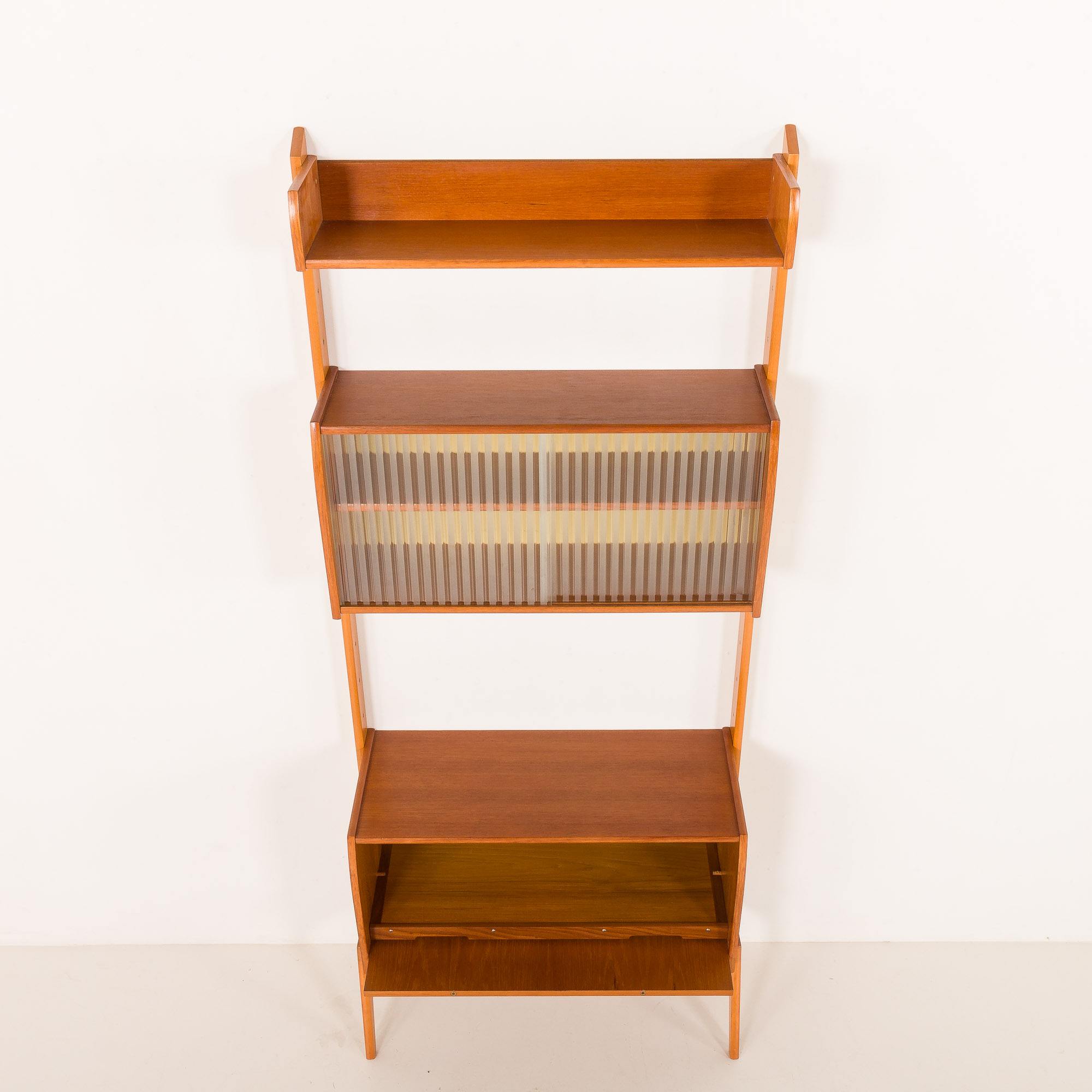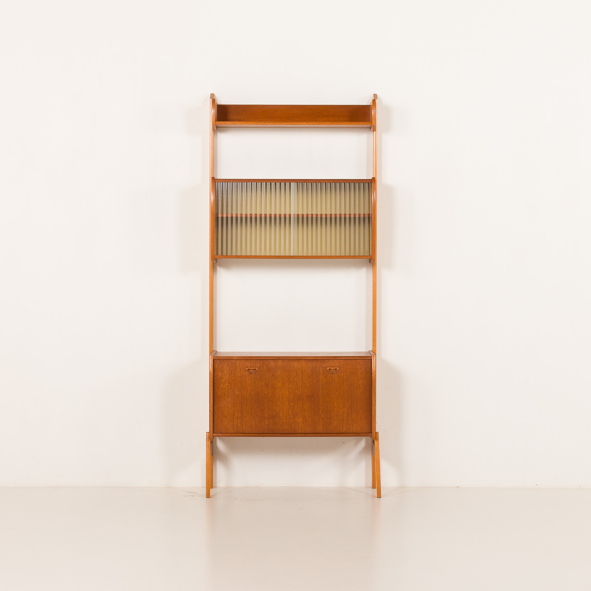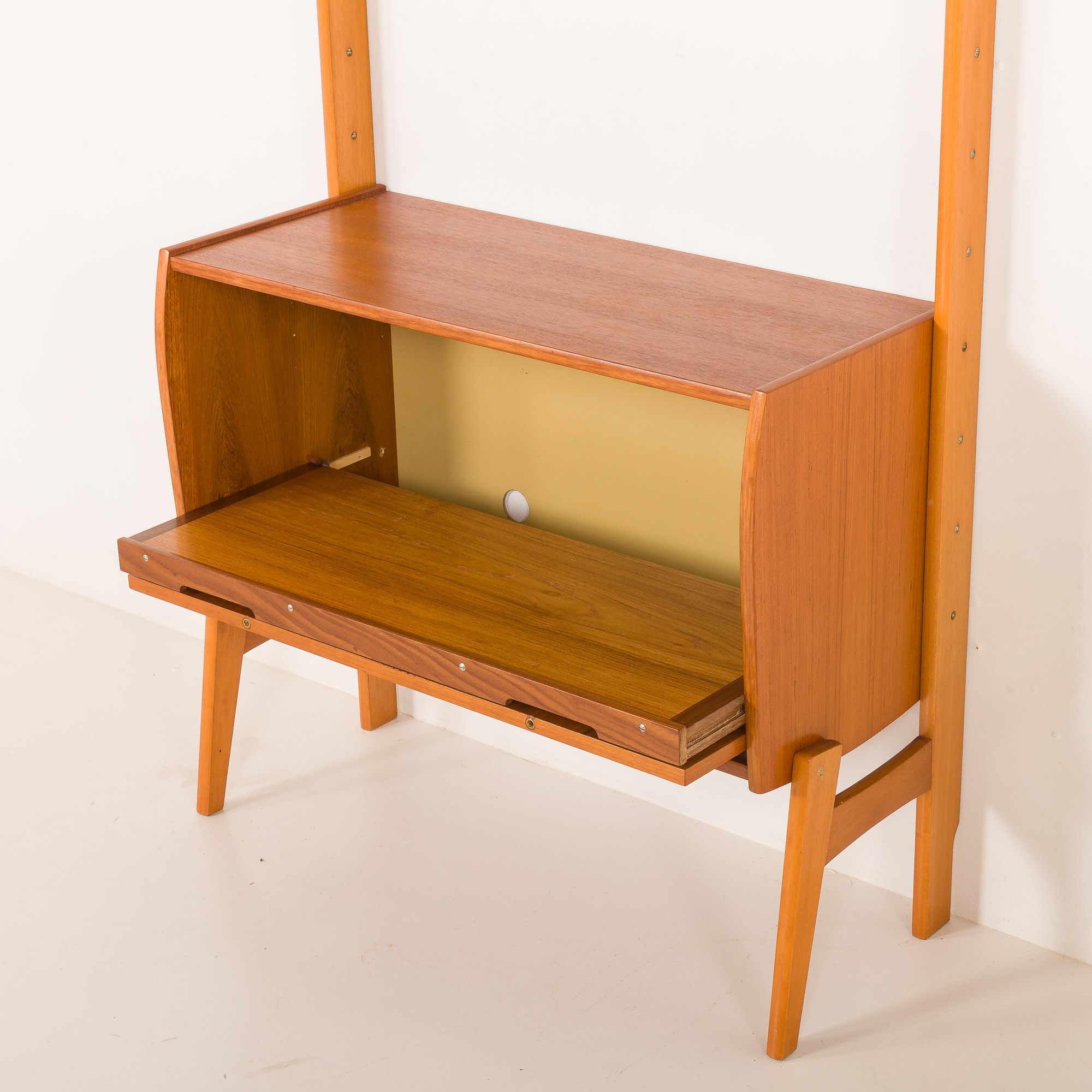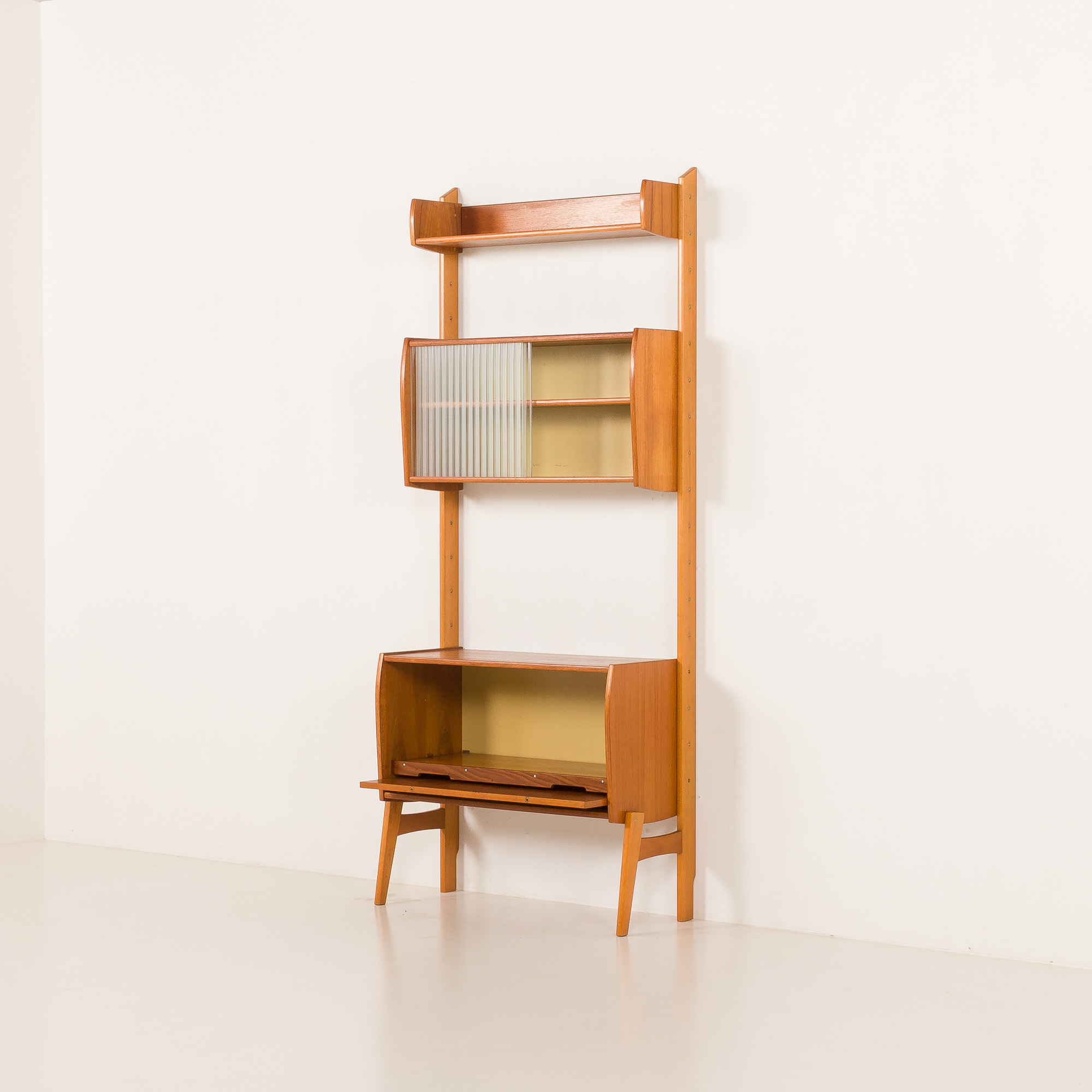 Danish mid century teak wall unit with a desk shelf, 1960s