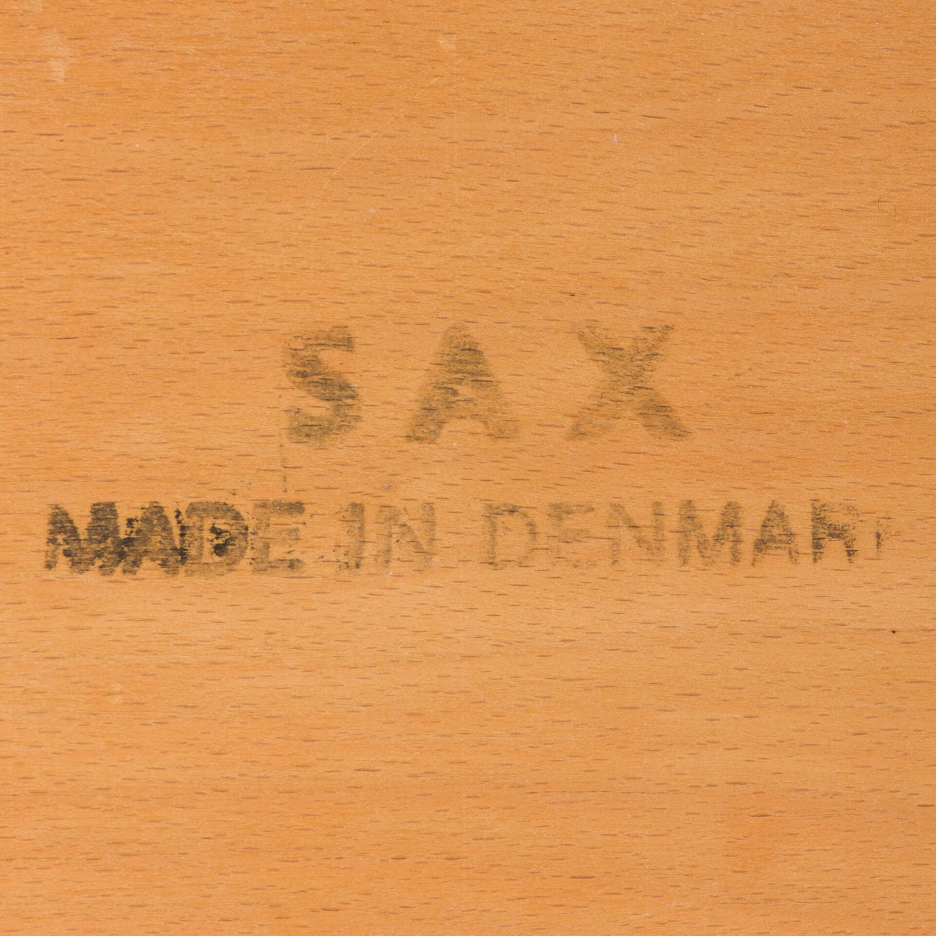 A set of four mid-century dining chairs by SAX (Saxkjobing Savvaerk Stolefabrik) manufactured in Denmark in the 1960s, validated by the original stamp. Simple and gentle lines, the warm color of a wooden frame, and new natural wool upholstery in grey will enhance any dining area with a touch of Danish mid-century design.