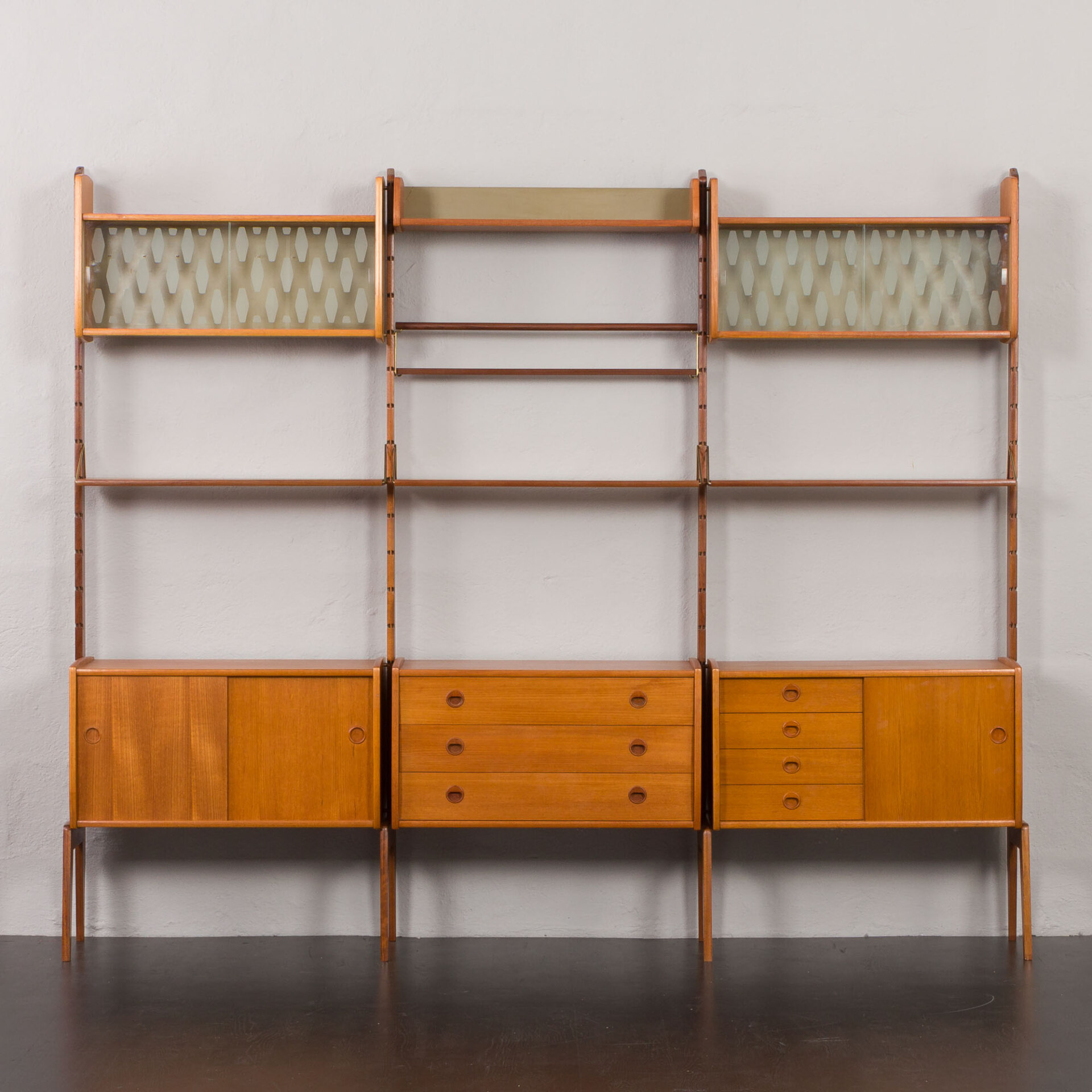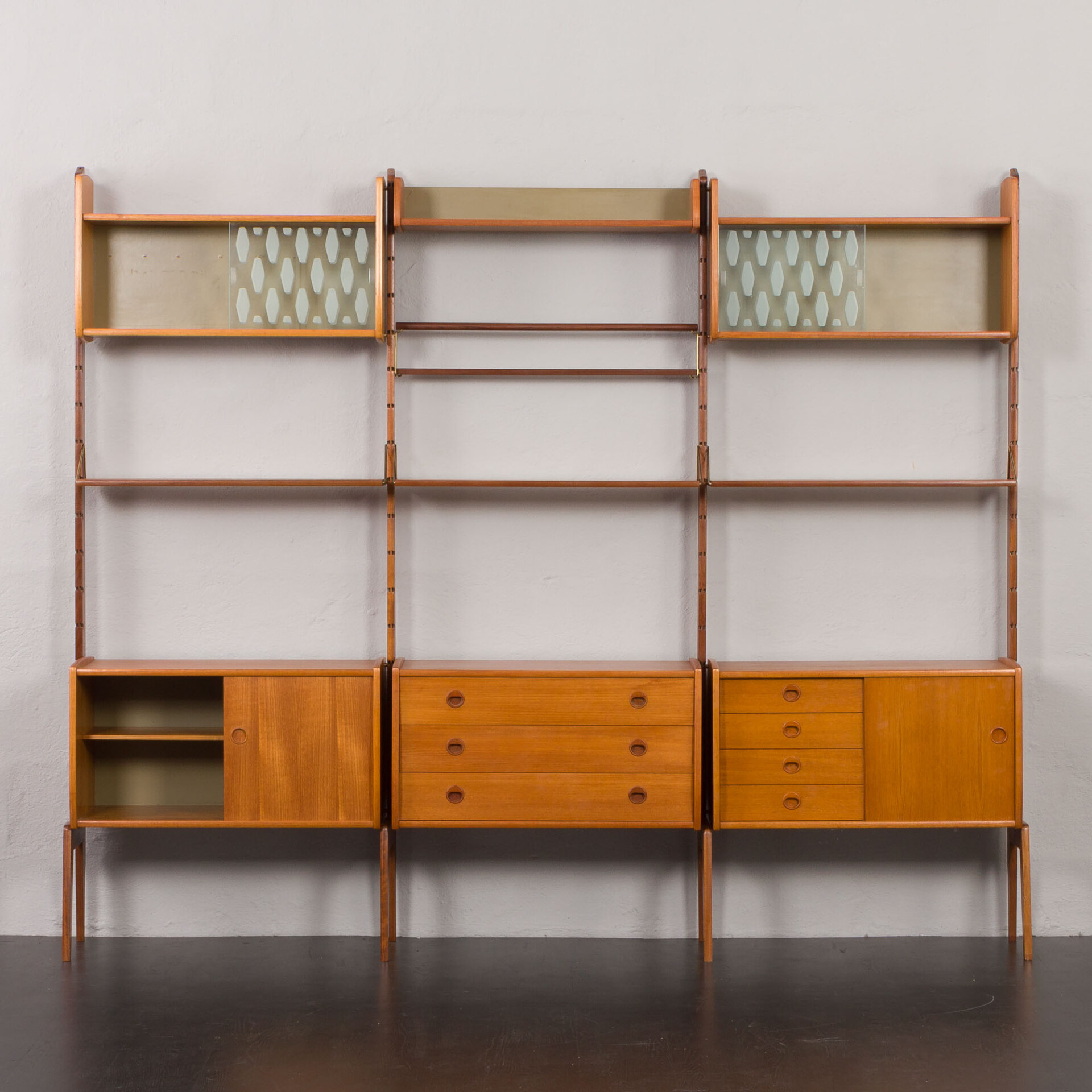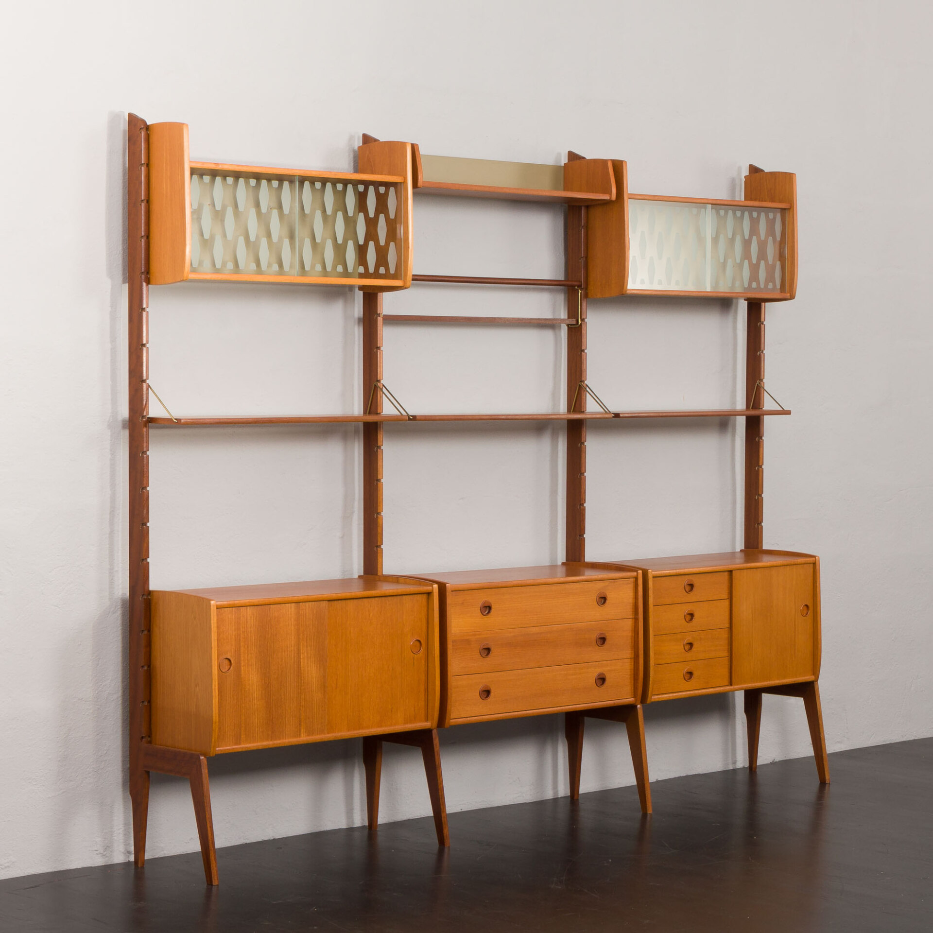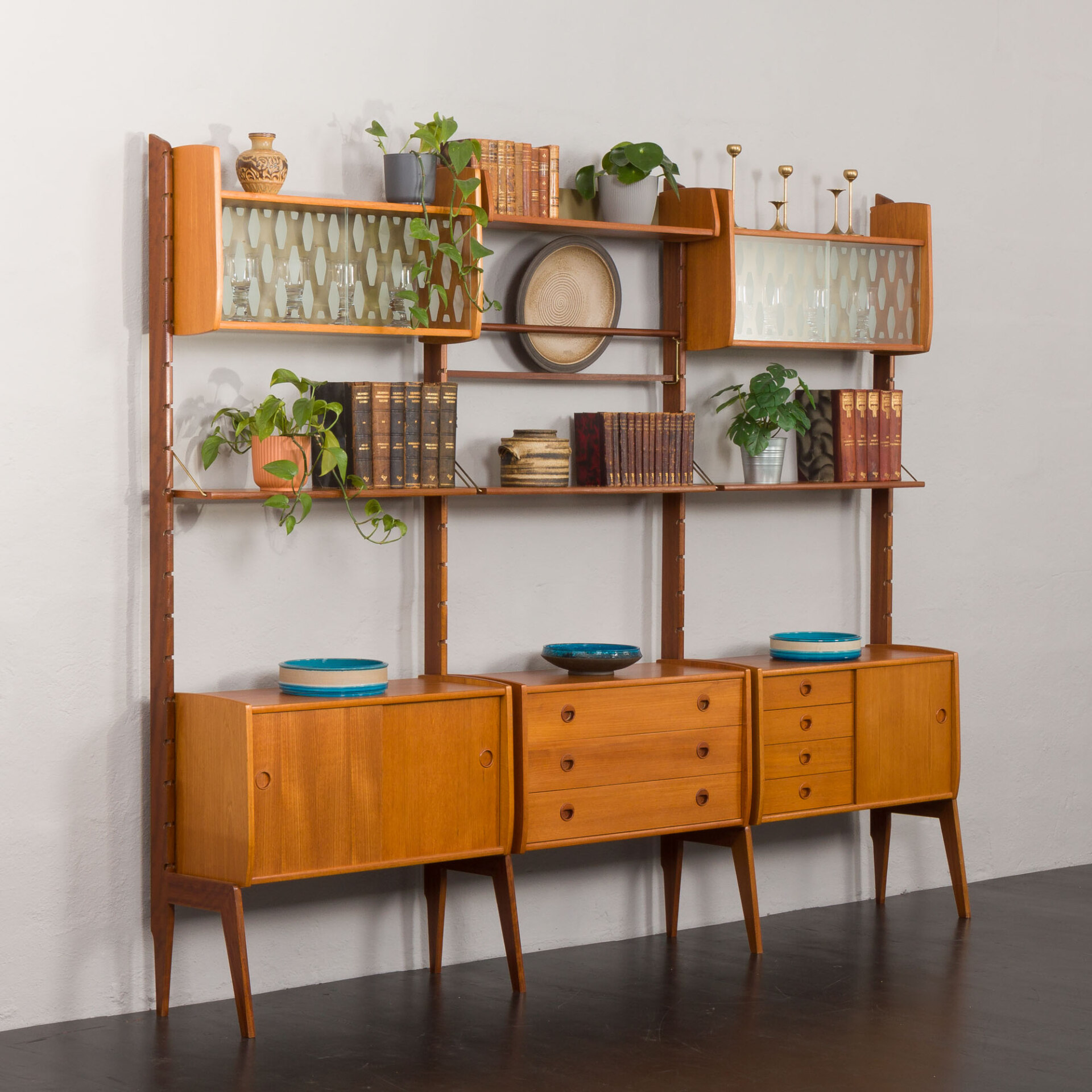Danish mid century teak wall unit in the style of Poul Cadovius, 1960s