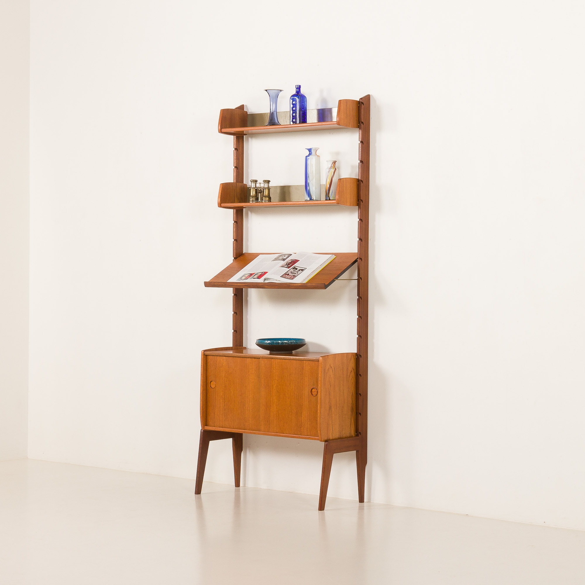 Scandinavian teak wall unit with a secretaire, in a style of Poul Cadovius, 1970s