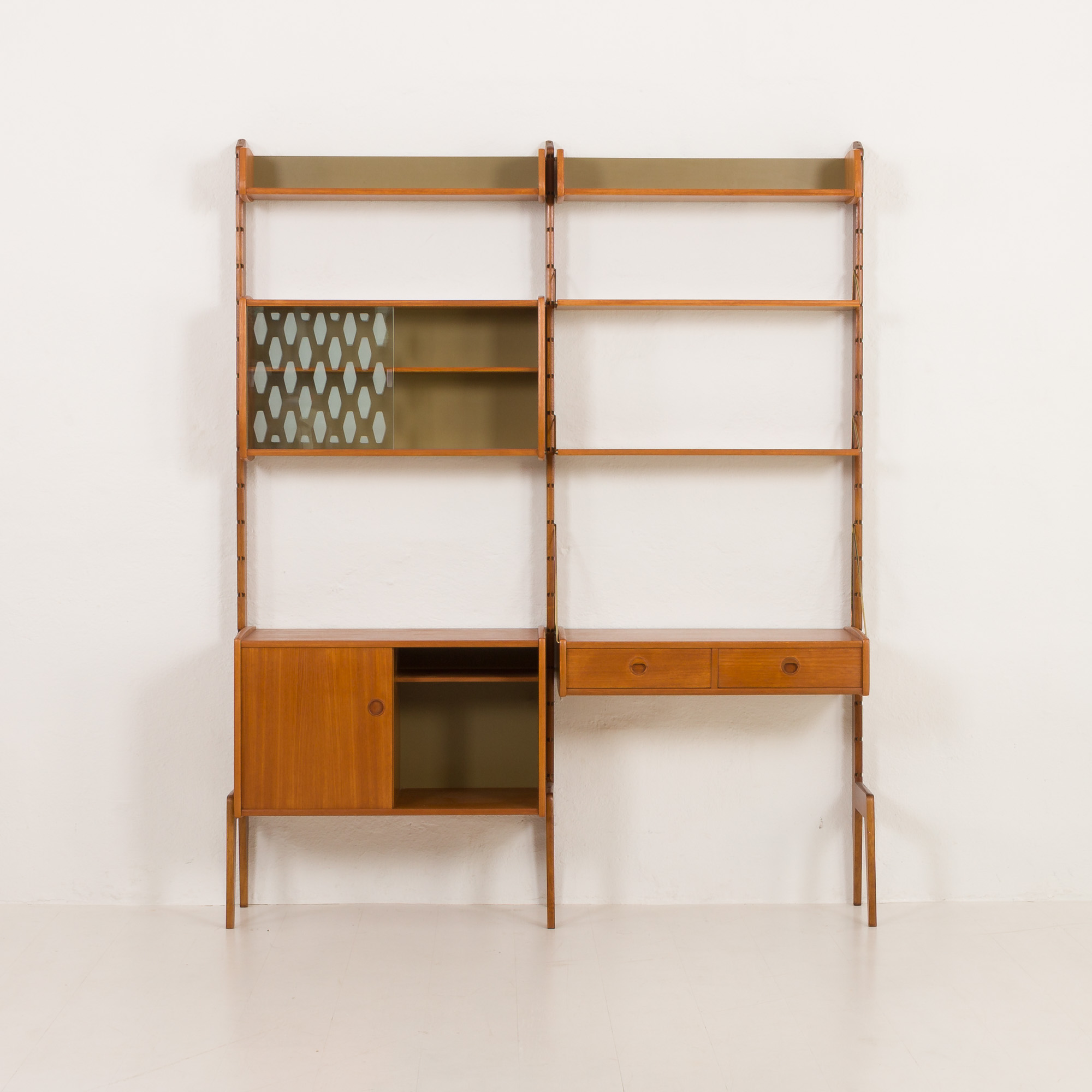 This functional and elegant wall unit is a true example of Scandinavian mid-century design at its best. It is an entirely modular shelving and storage system called “Ergo de lux” which was designed by John Texmon for Blindheim Mobelfabrikk and made in Norway in the 1960s.