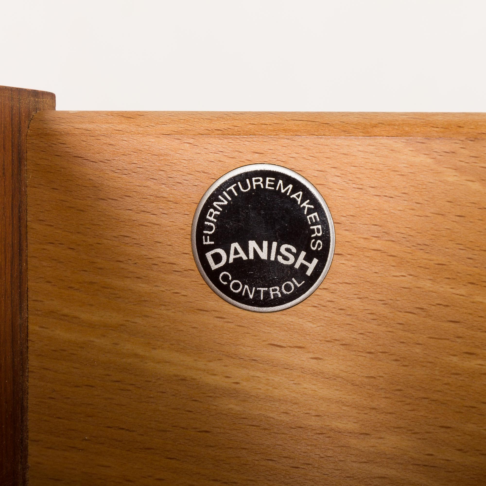 The unit has been fully renovated – the wood has been carefully cleaned and refinished with professional-grade compounds to highlight its natural depth of color and ensure long-lasting durability. All drawers slide smoothly, and all components fit perfectly. The label confirms the authenticity of the furniture’s origin. Overall, the wall unit remains in excellent vintage condition.