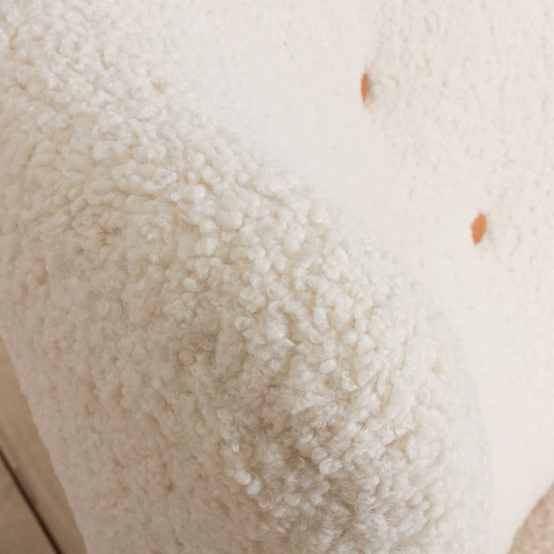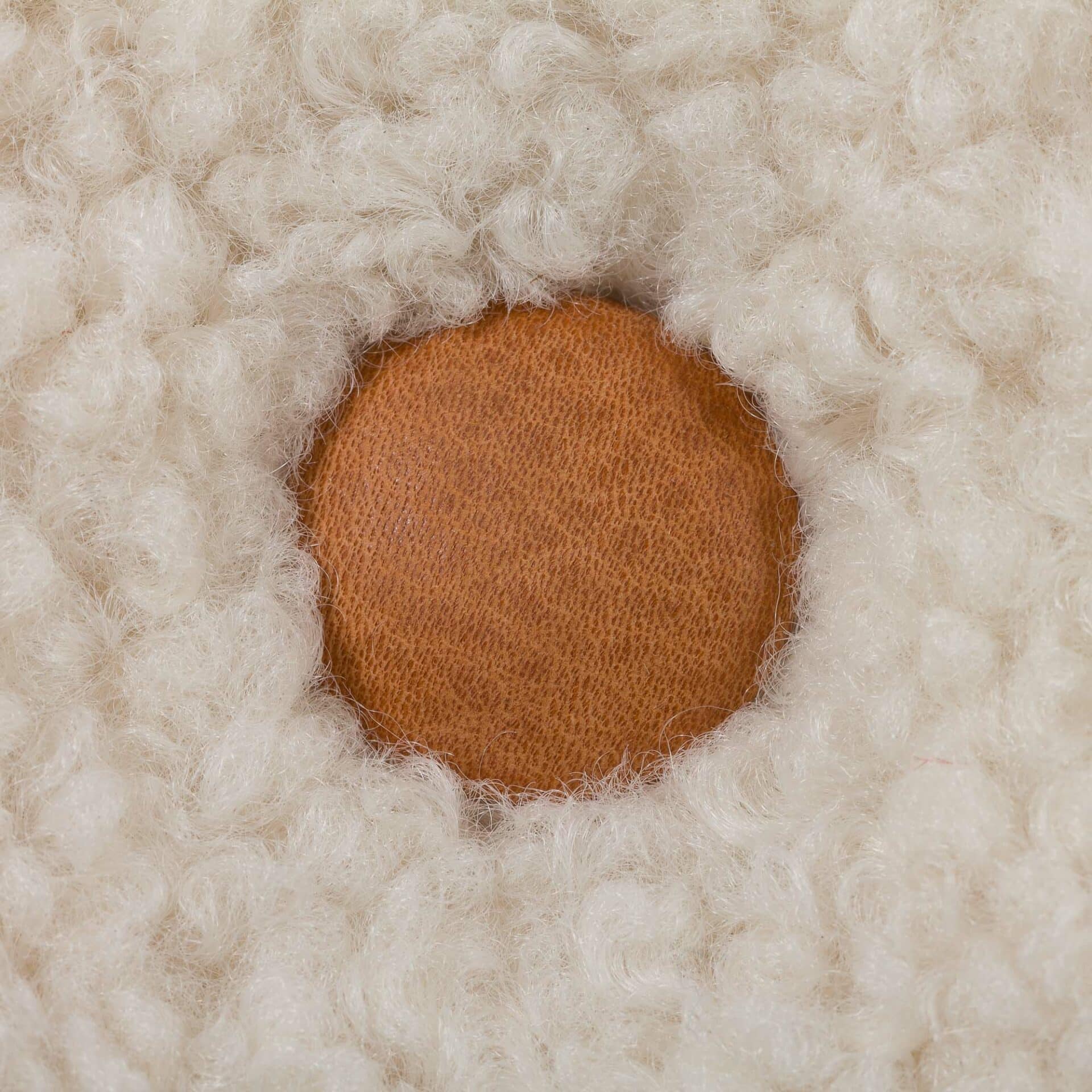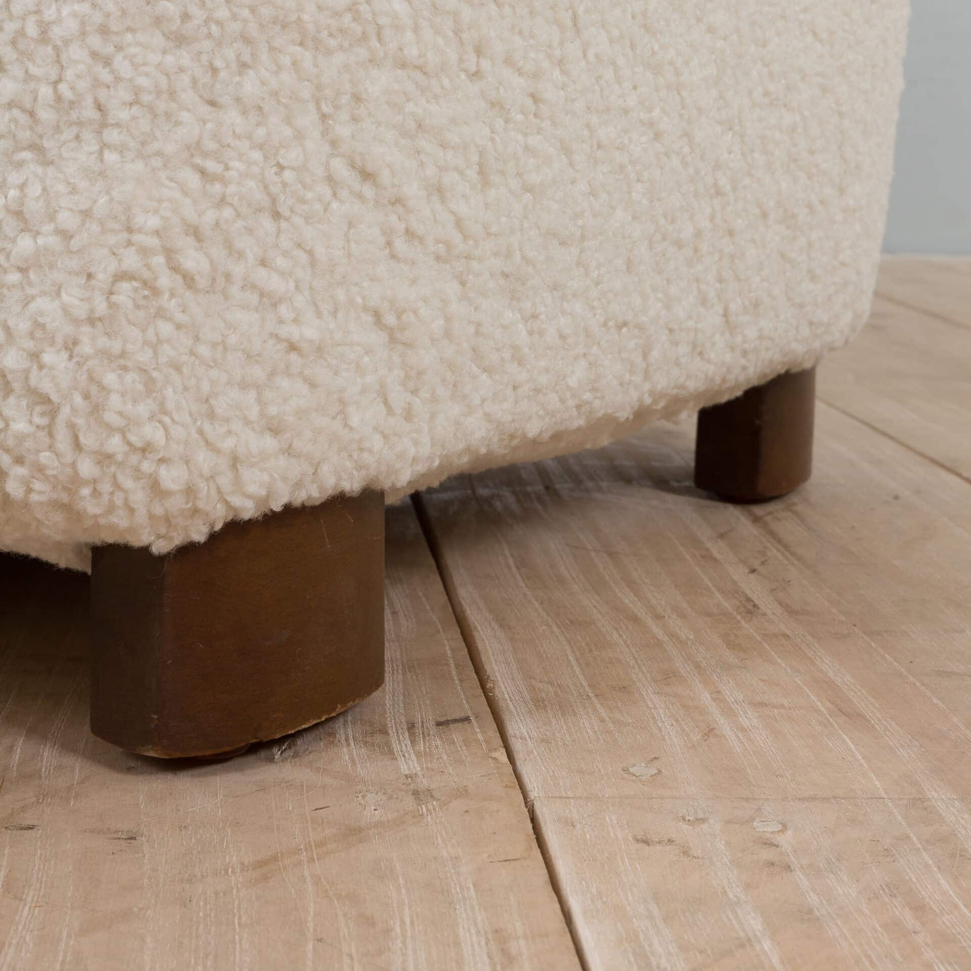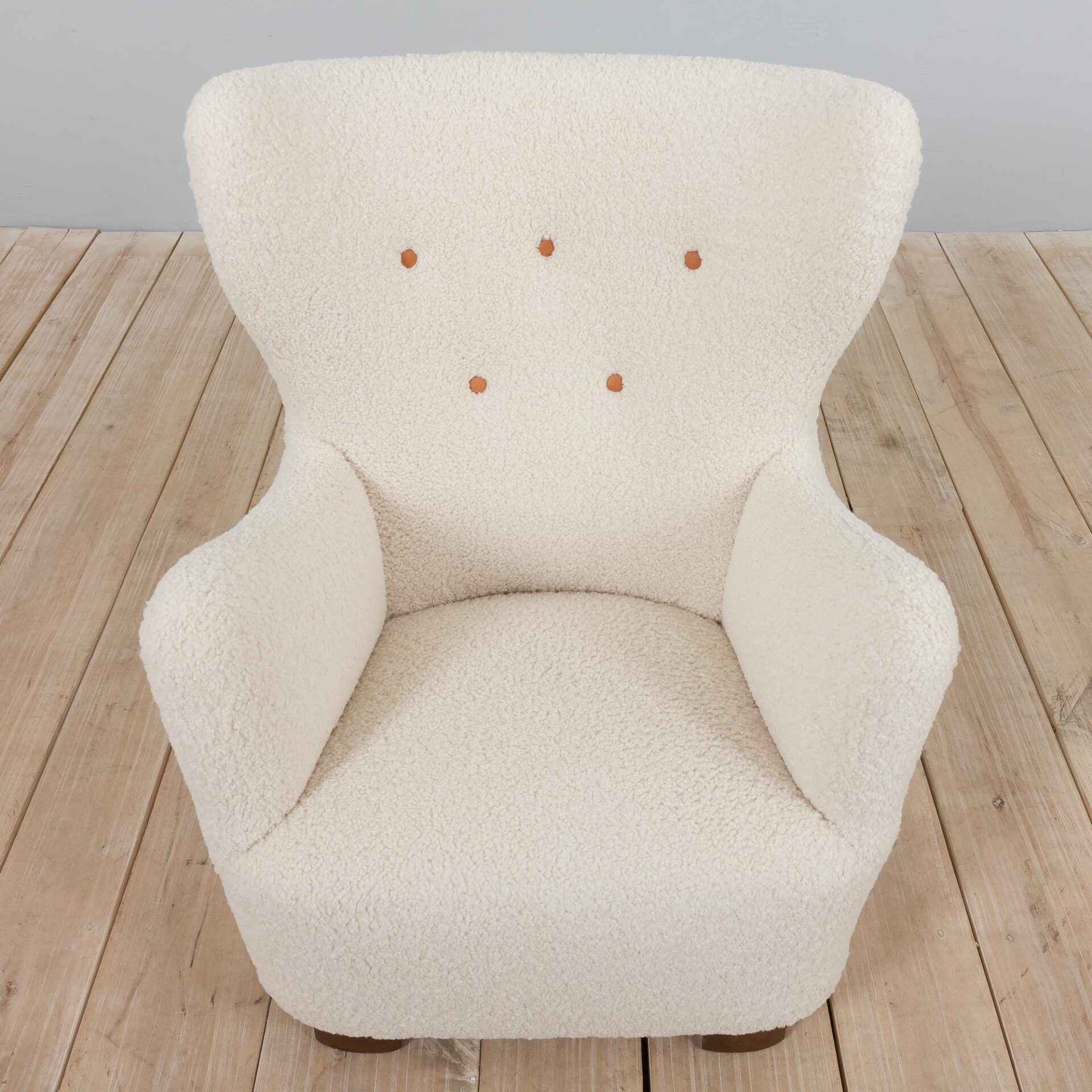 Flemming Lassen style Danish mid century lounge chair in thick boucle fabric and leather buttons, 1940s