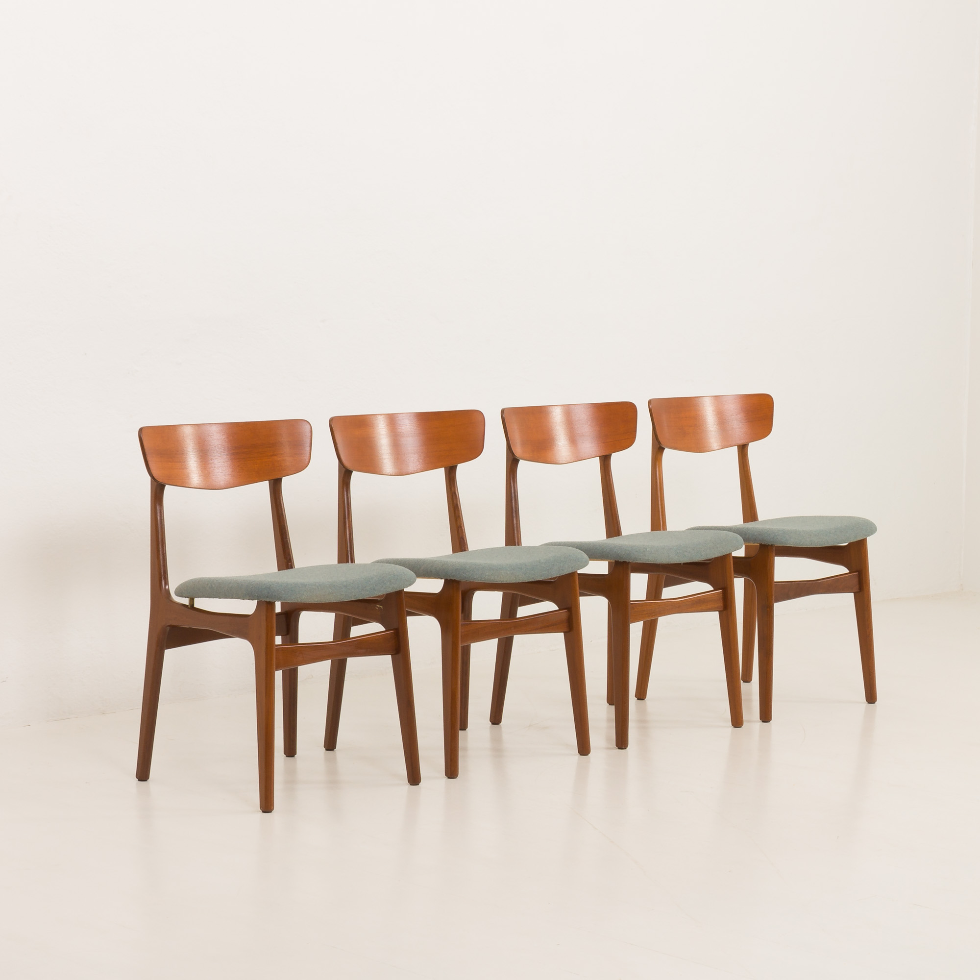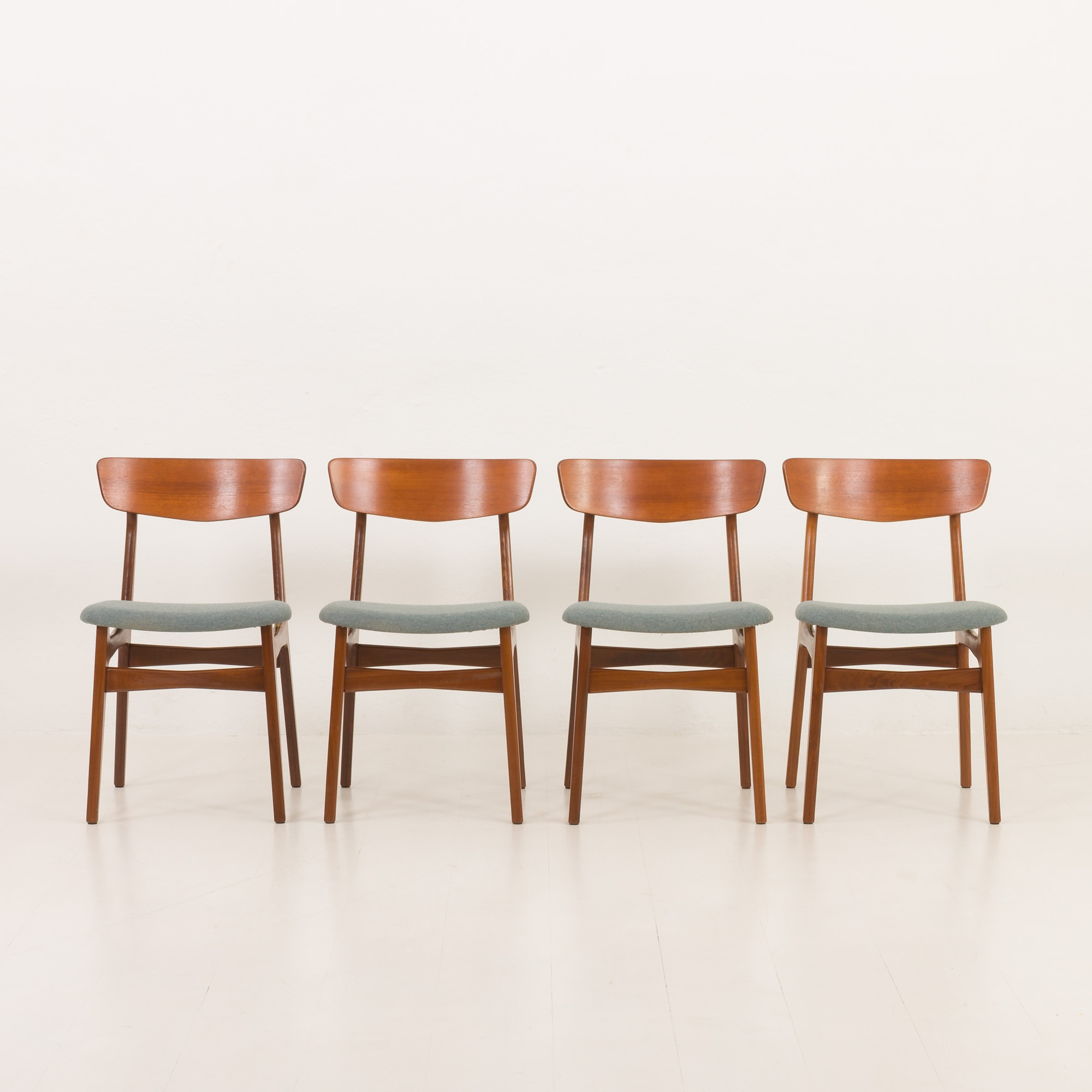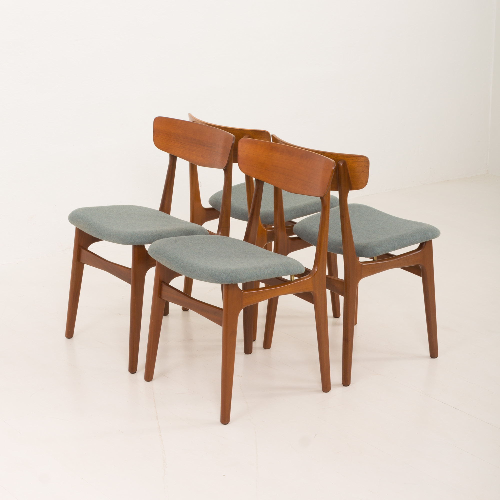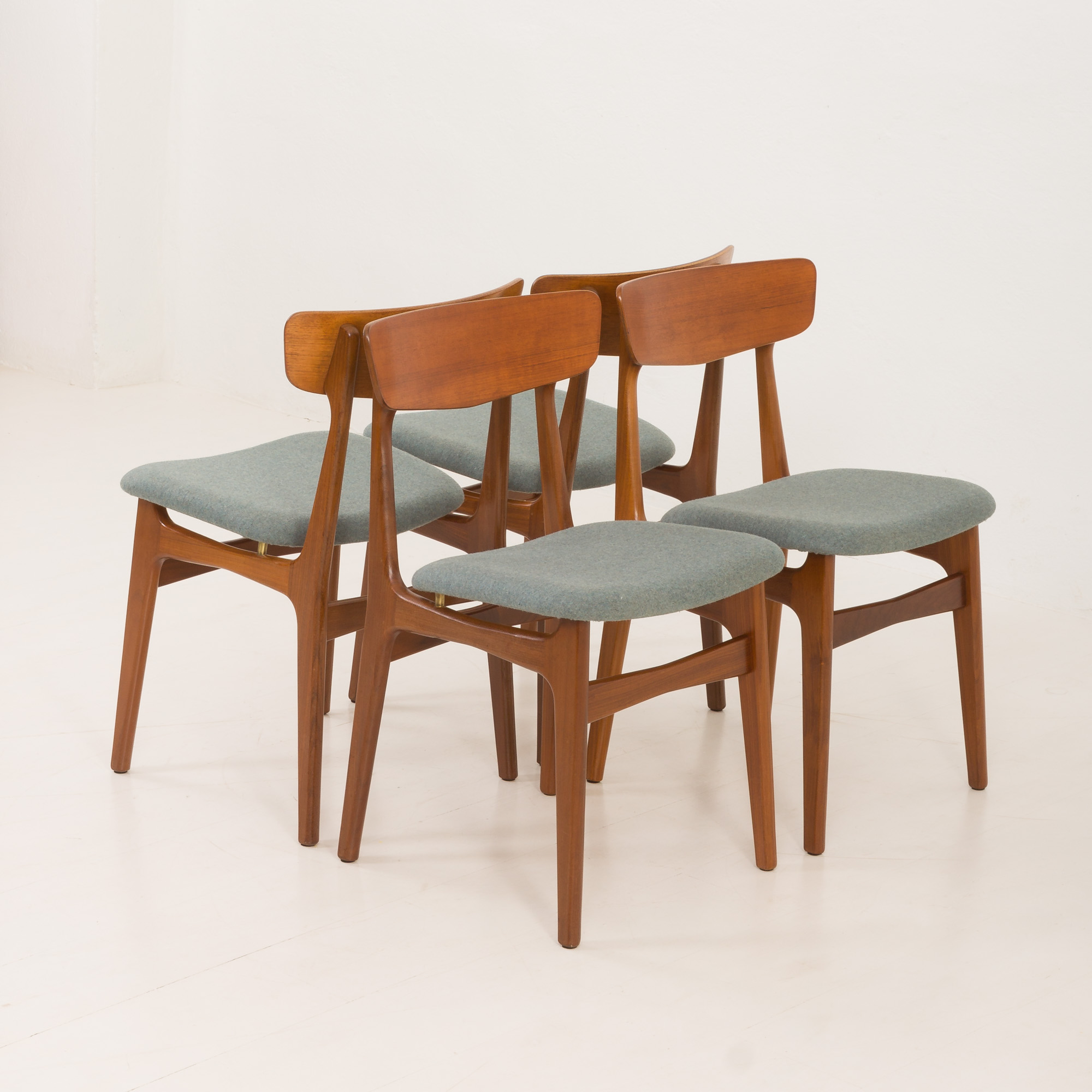 Set of 4 Danish mid century teak chairs in wool upholstery, 1960s