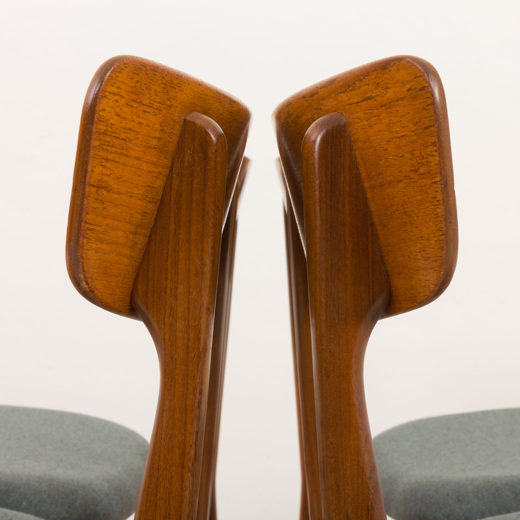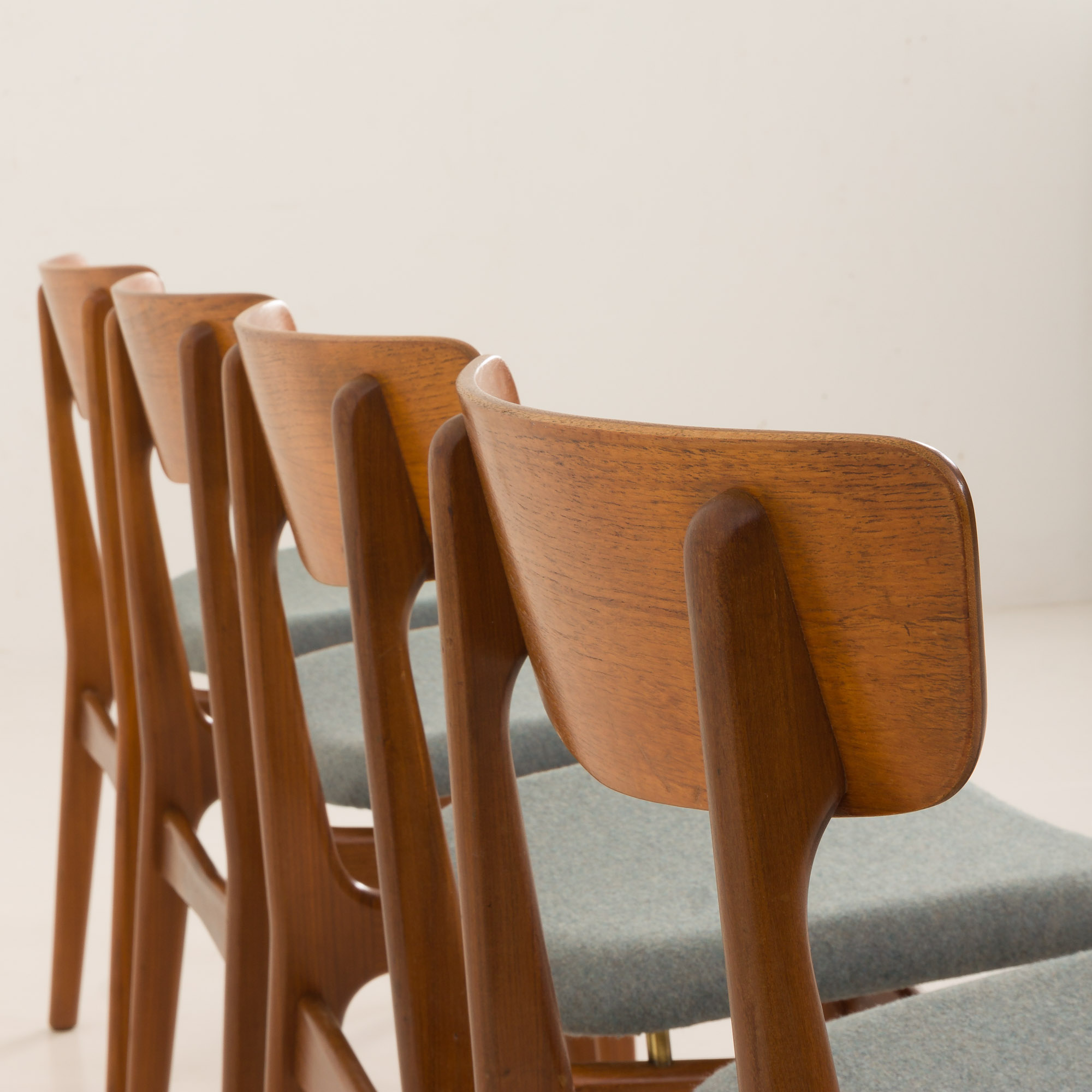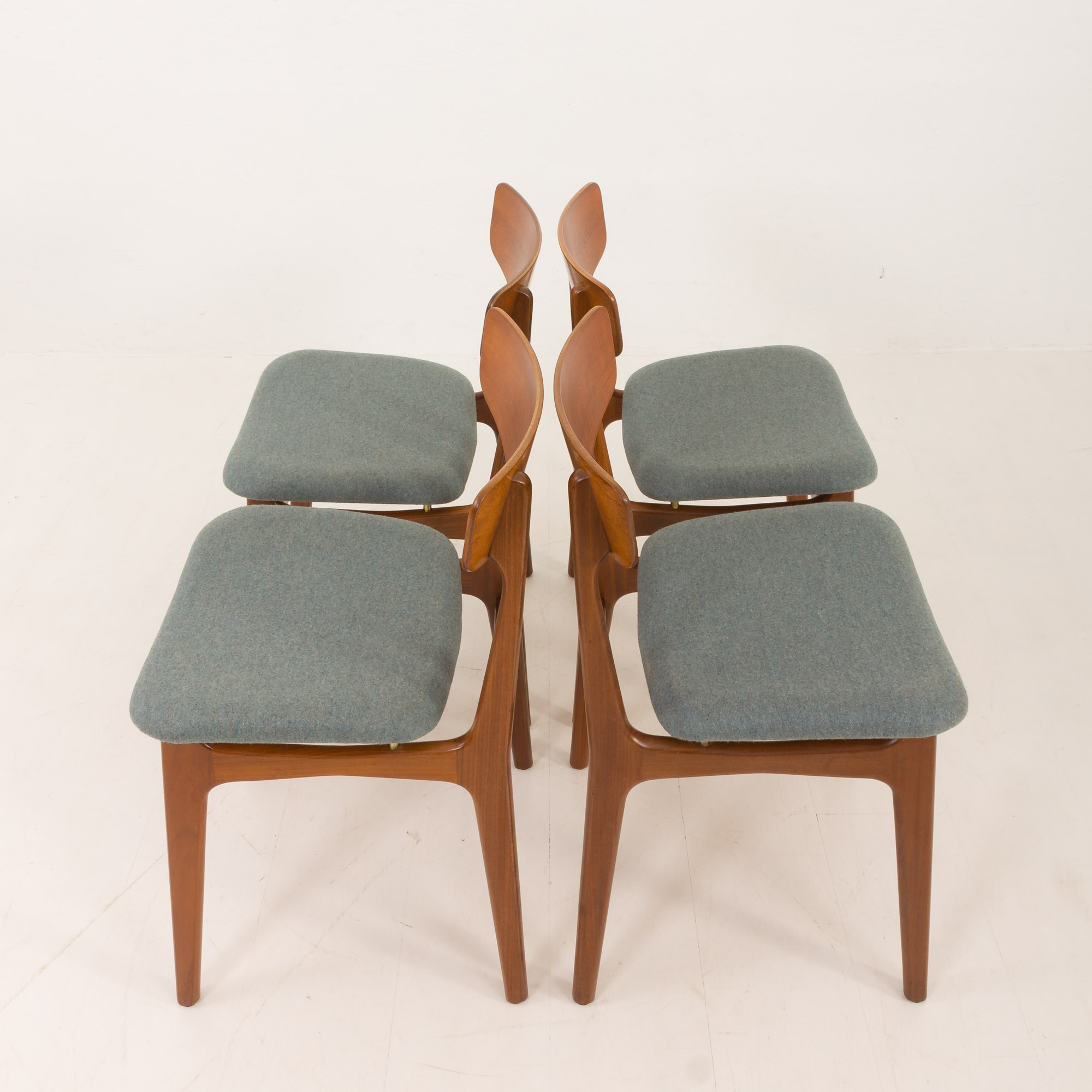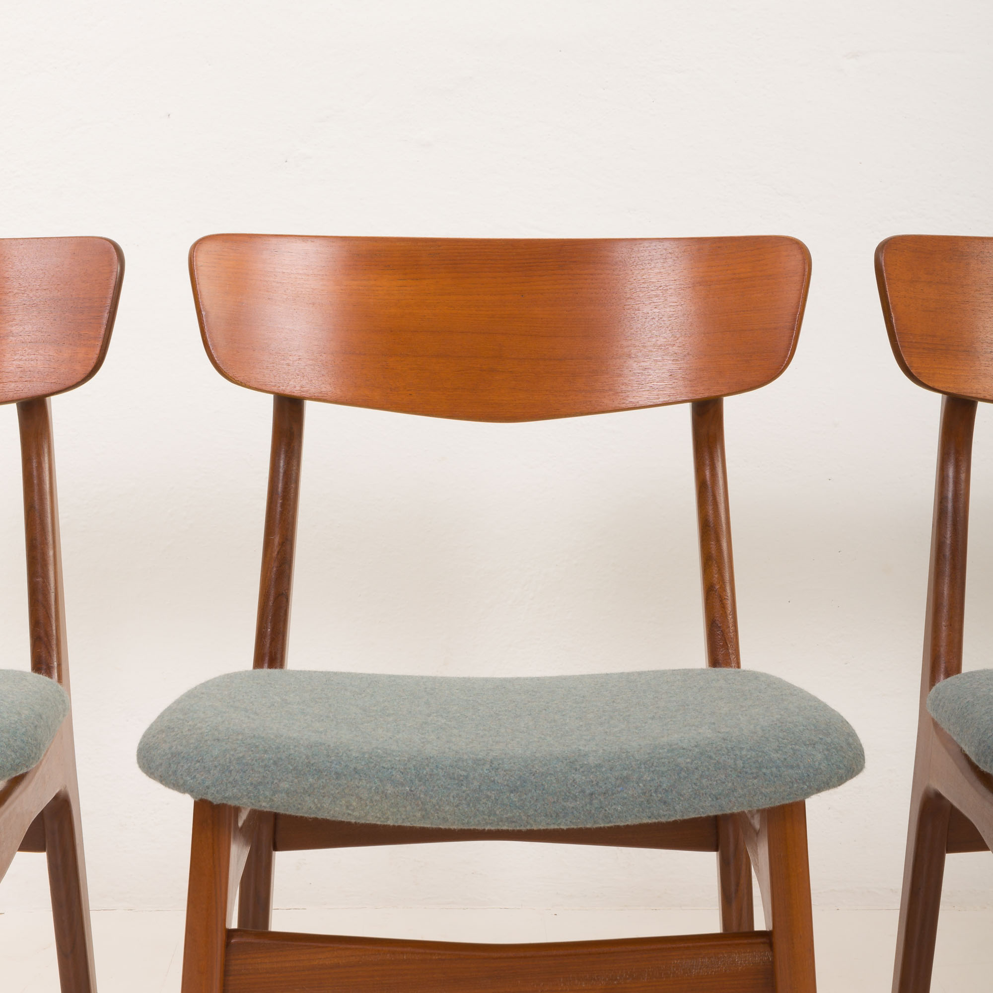 Set of 4 Danish mid century teak chairs in wool upholstery, 1960s