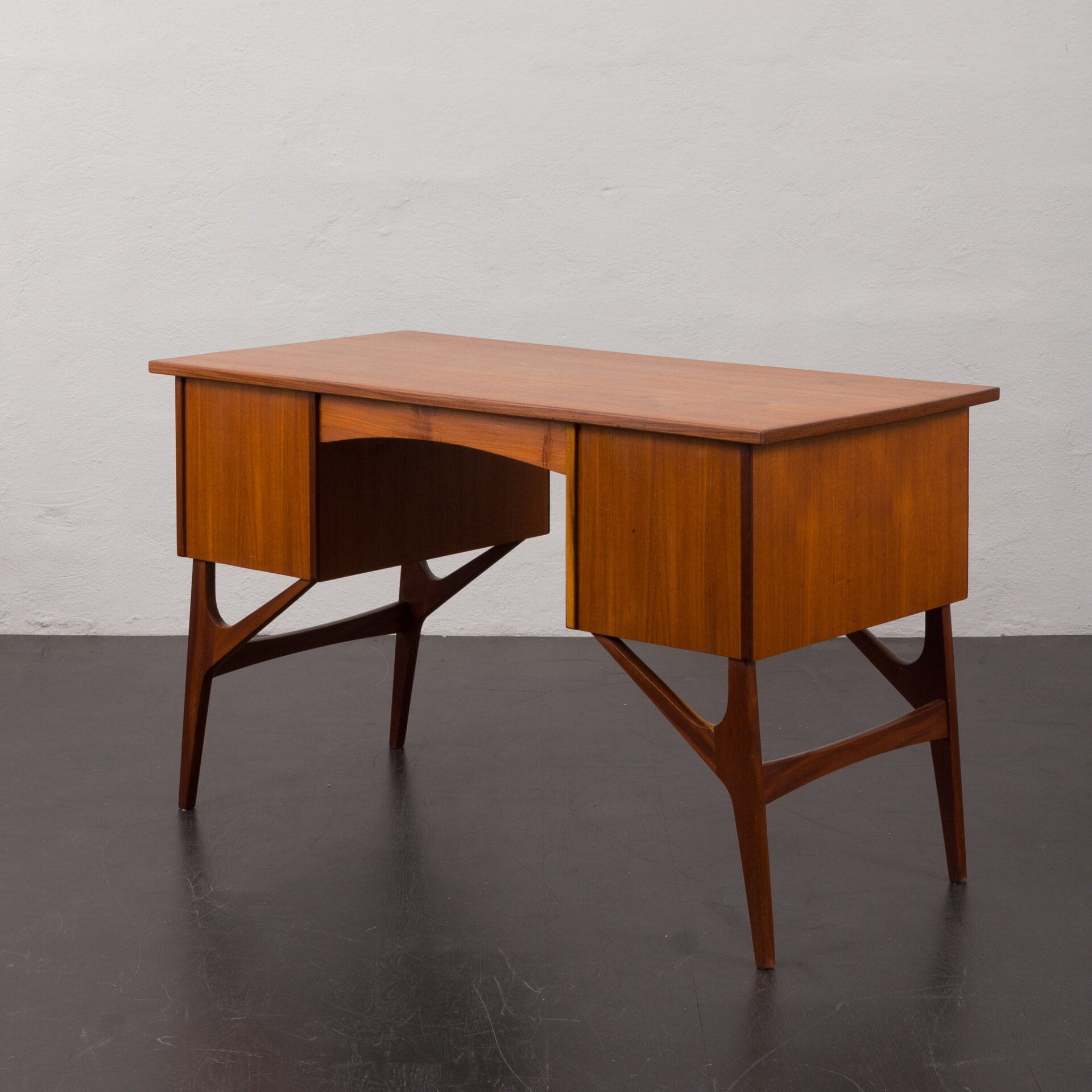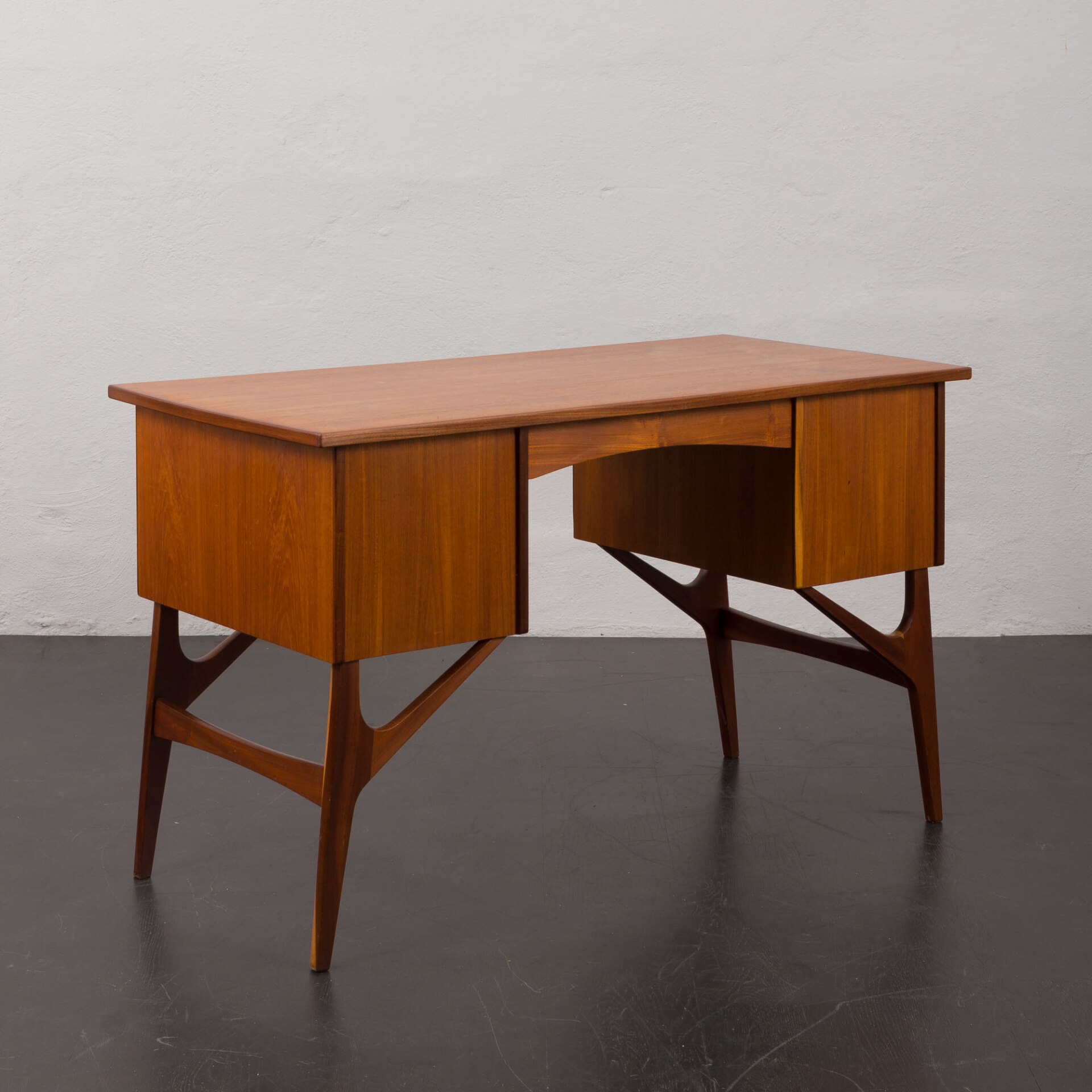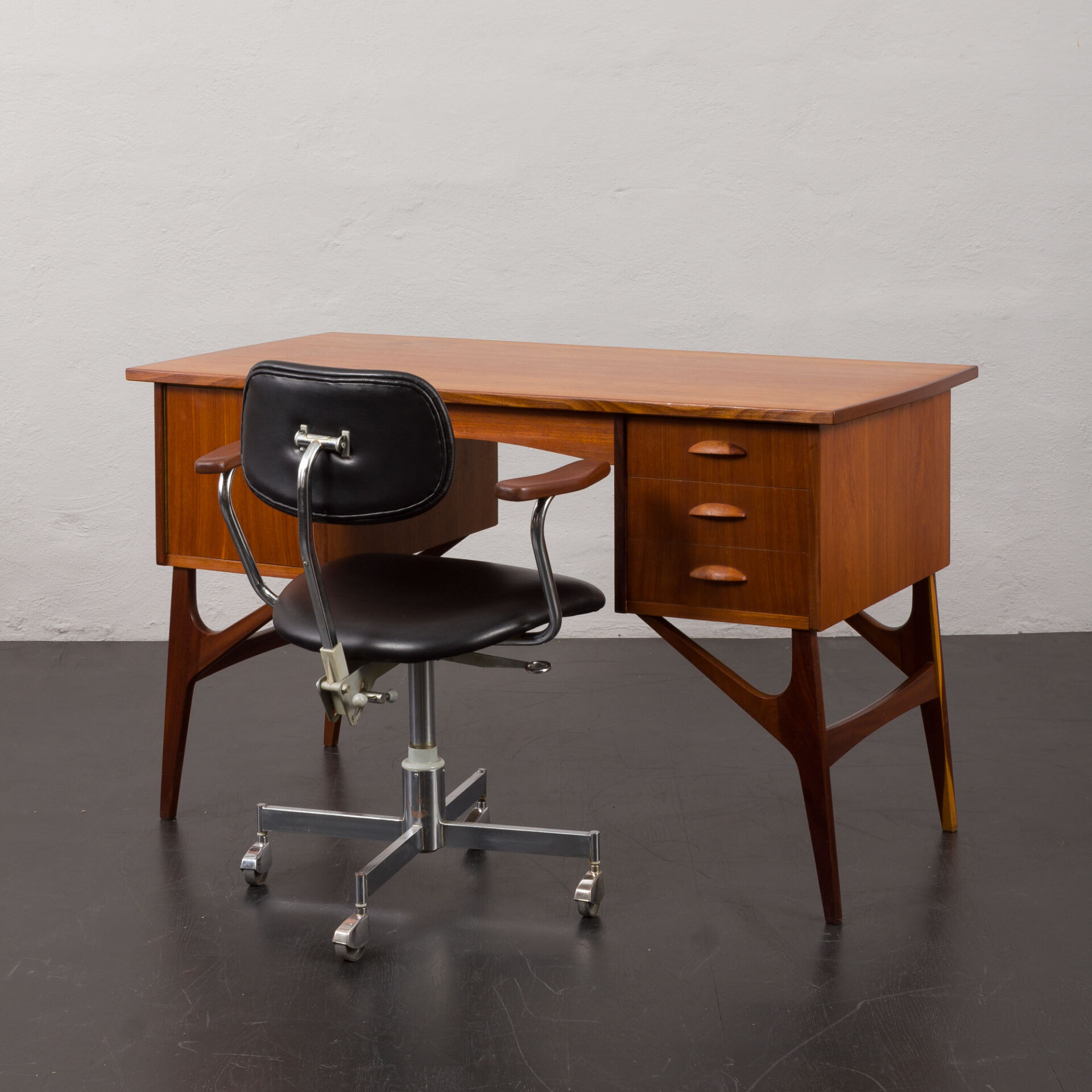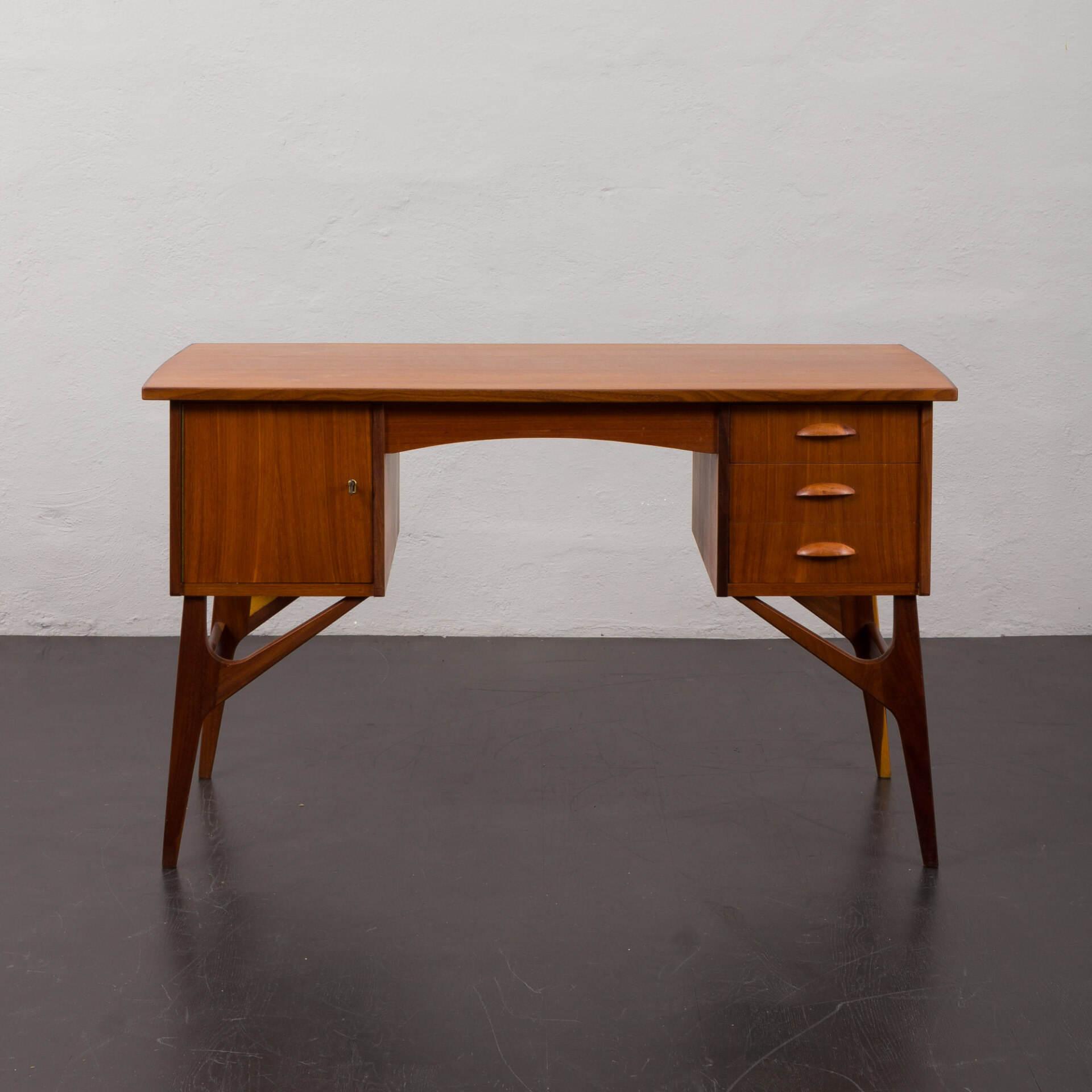 Bureau danois en teck du milieu du siècle sur une base sculpturale en teck massif, années 1960.