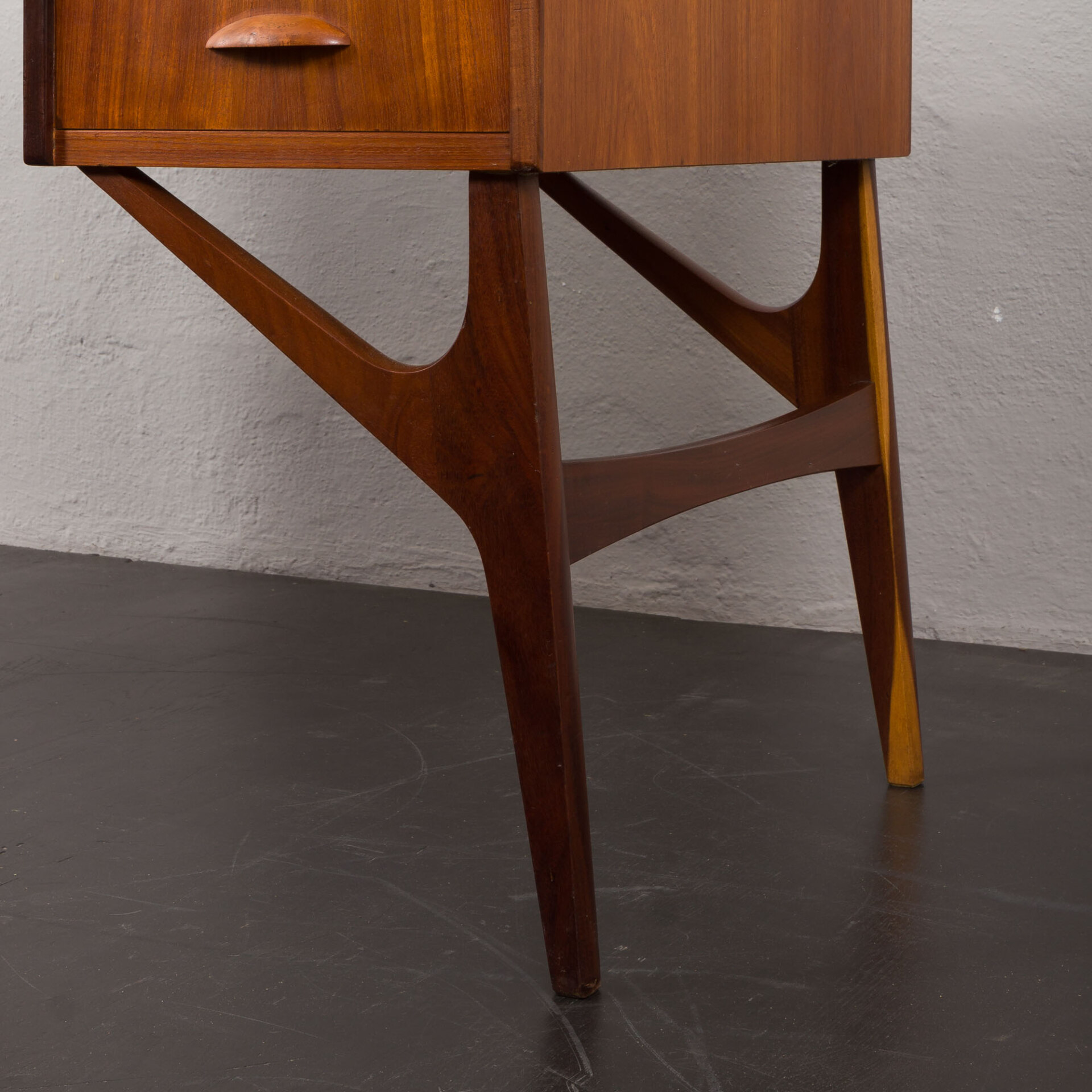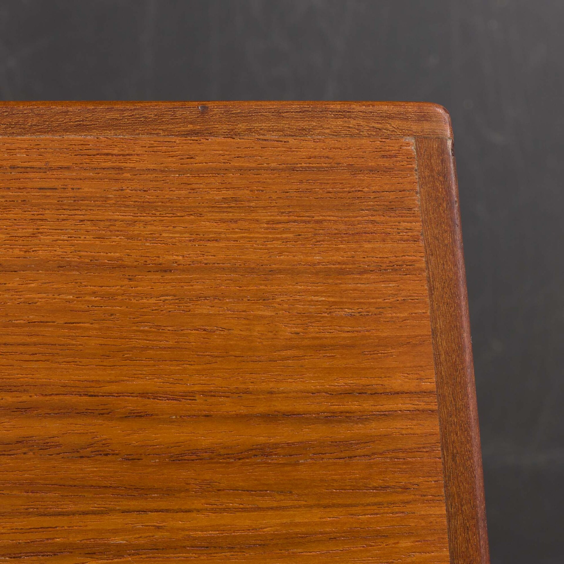 Le bureau a été vérifié par notre équipe. Les tiroirs, la porte et la serrure fonctionnent correctement. Le bois de teck a été méticuleusement conservé avec de l'huile danoise, ce qui garantit sa longévité et son aspect lustré. Nous essayons de redonner aux meubles leur meilleur aspect, tout en tenant compte du fait qu'ils ont 60 ans.