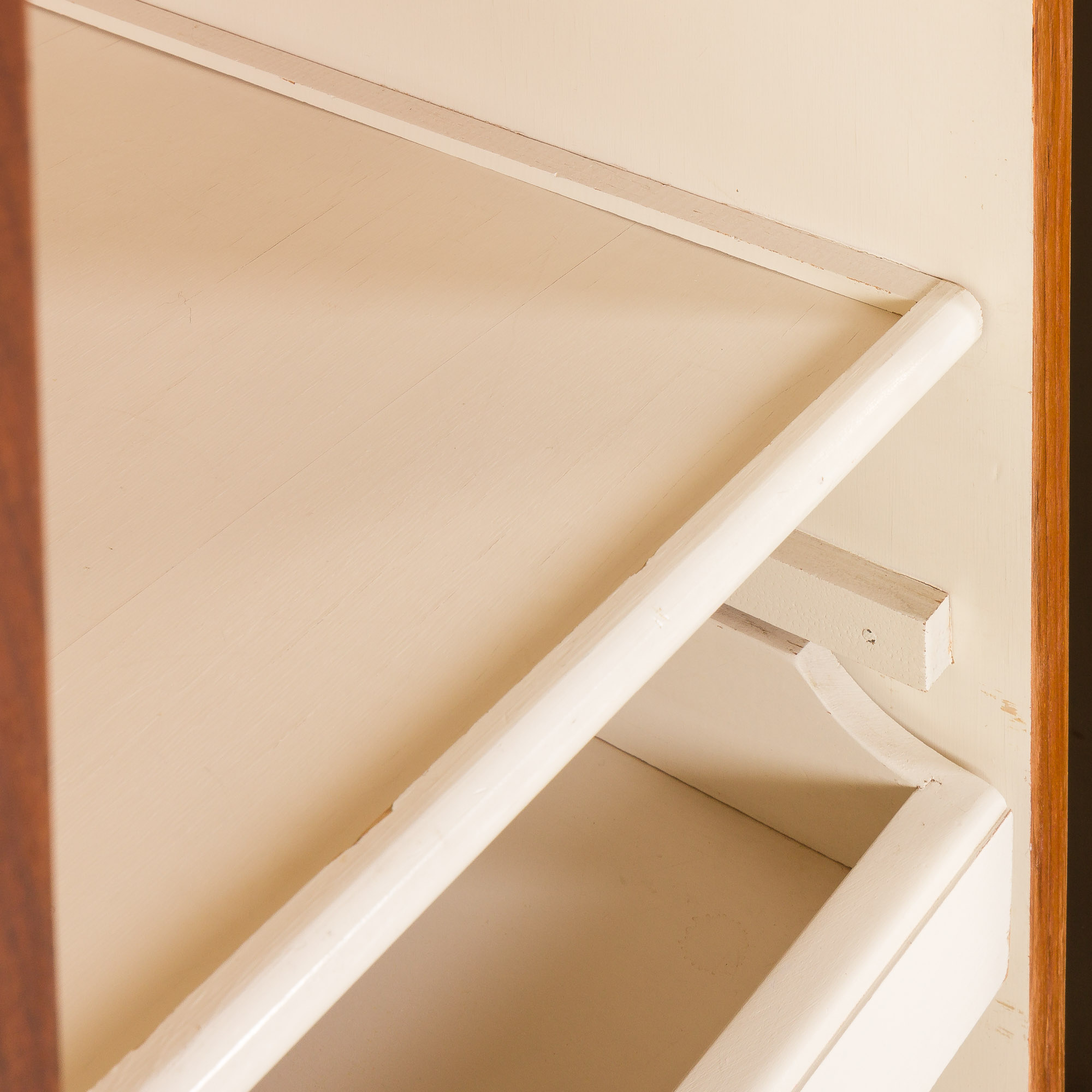 The wardrobe has been fully renovated. The wood has been cleaned and refreshed with layers of Danish oil. It enhances the grain look and provides protection. Doors work smoothly. Fantastic condition, ready to use in your home or office. The interior paint is original in a very good condition.