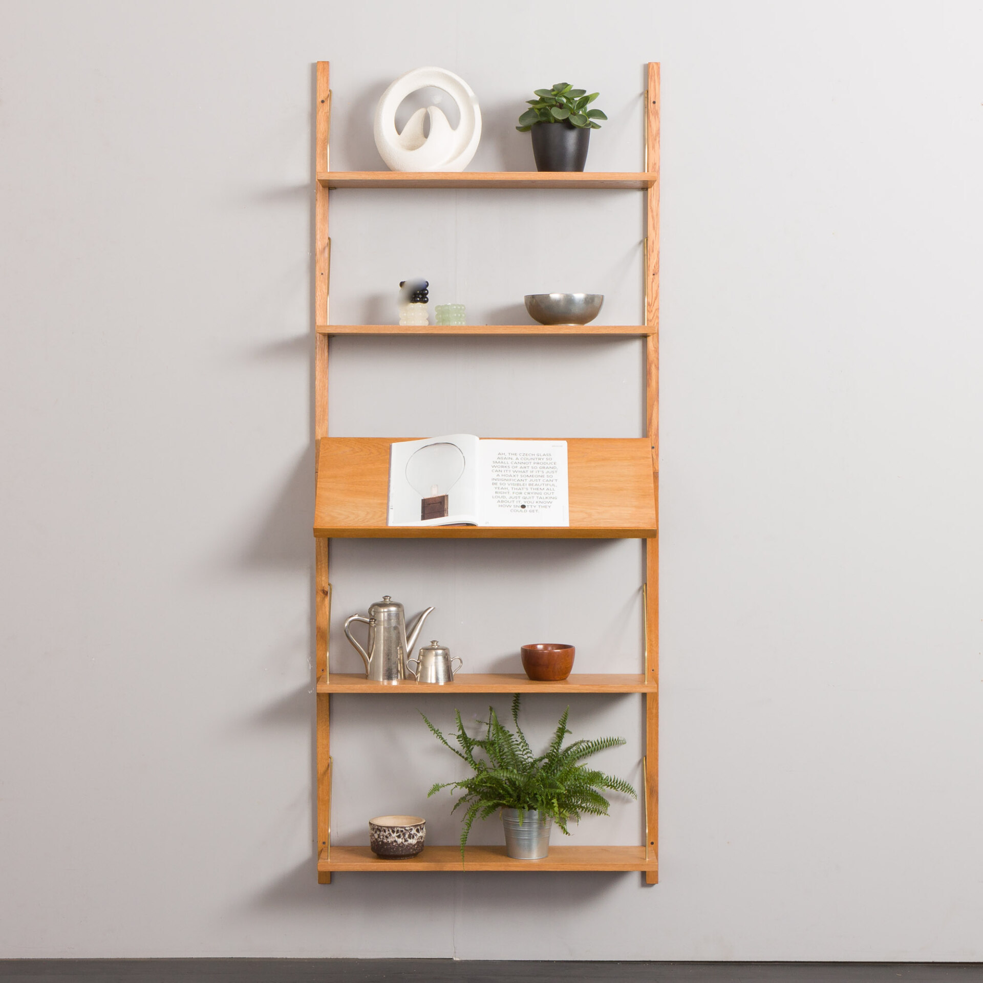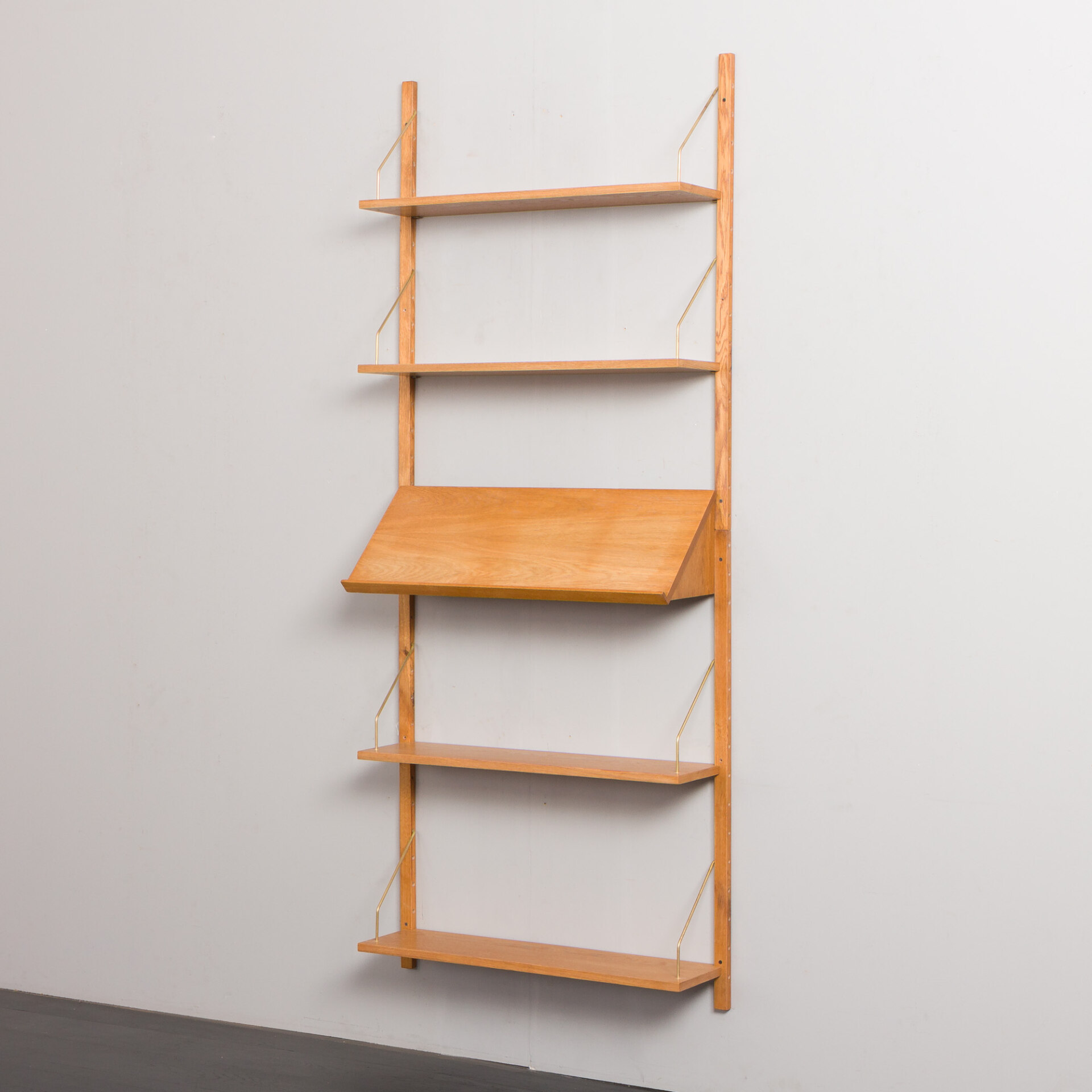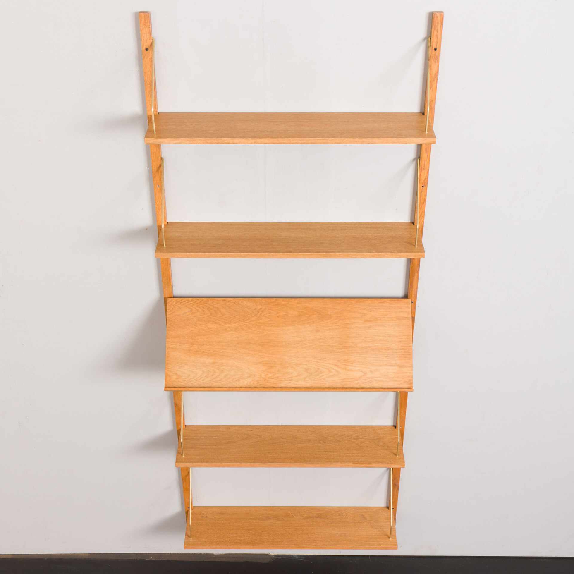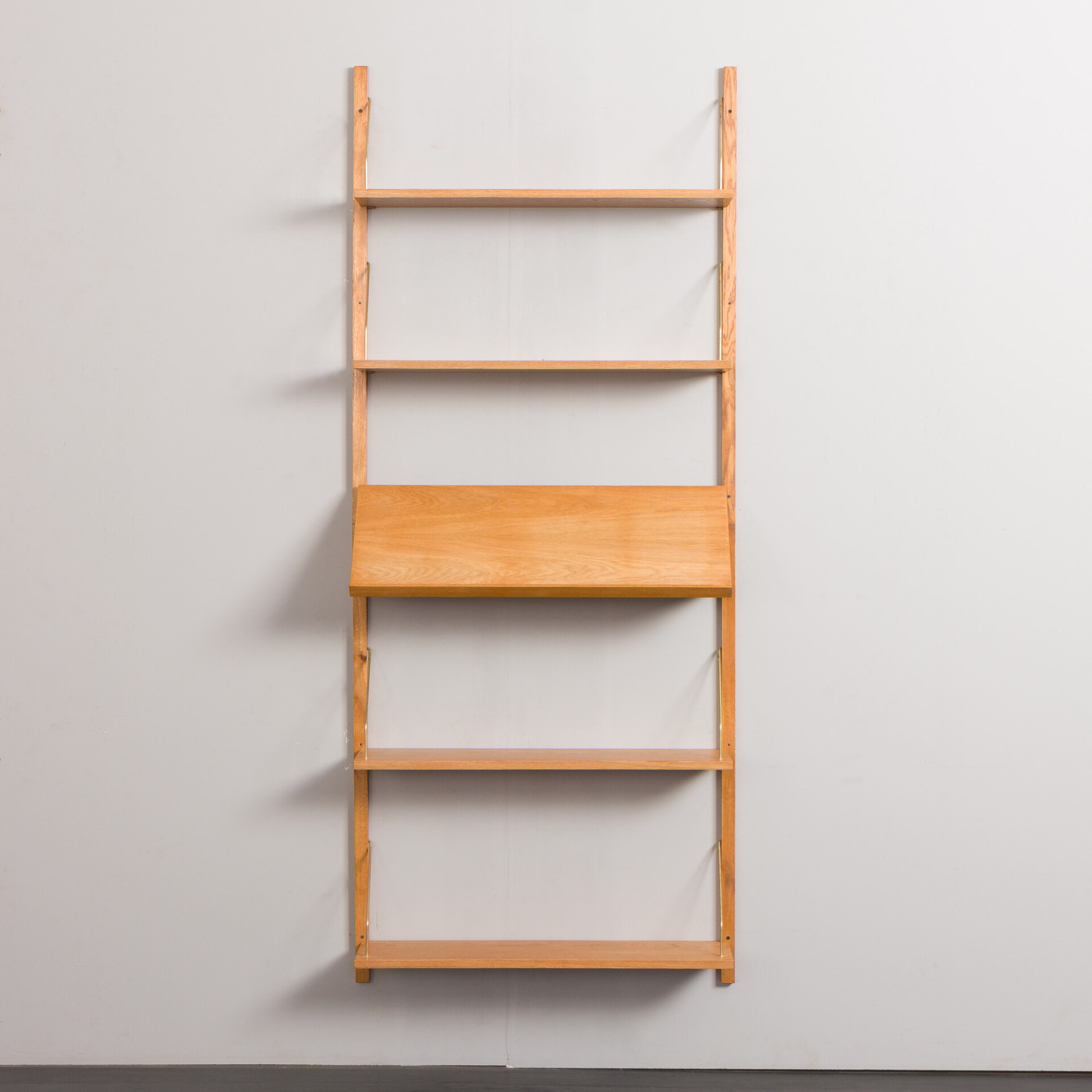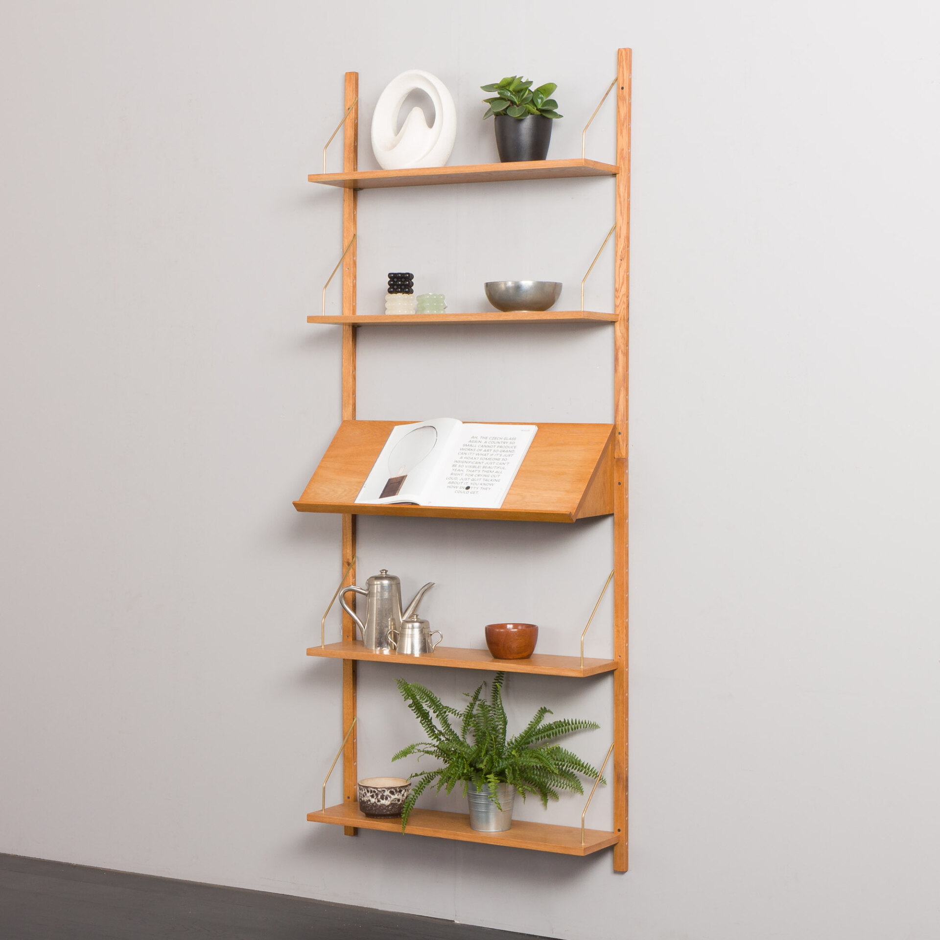 Meuble mural vintage danois en chêne avec étagère exposée, 1970