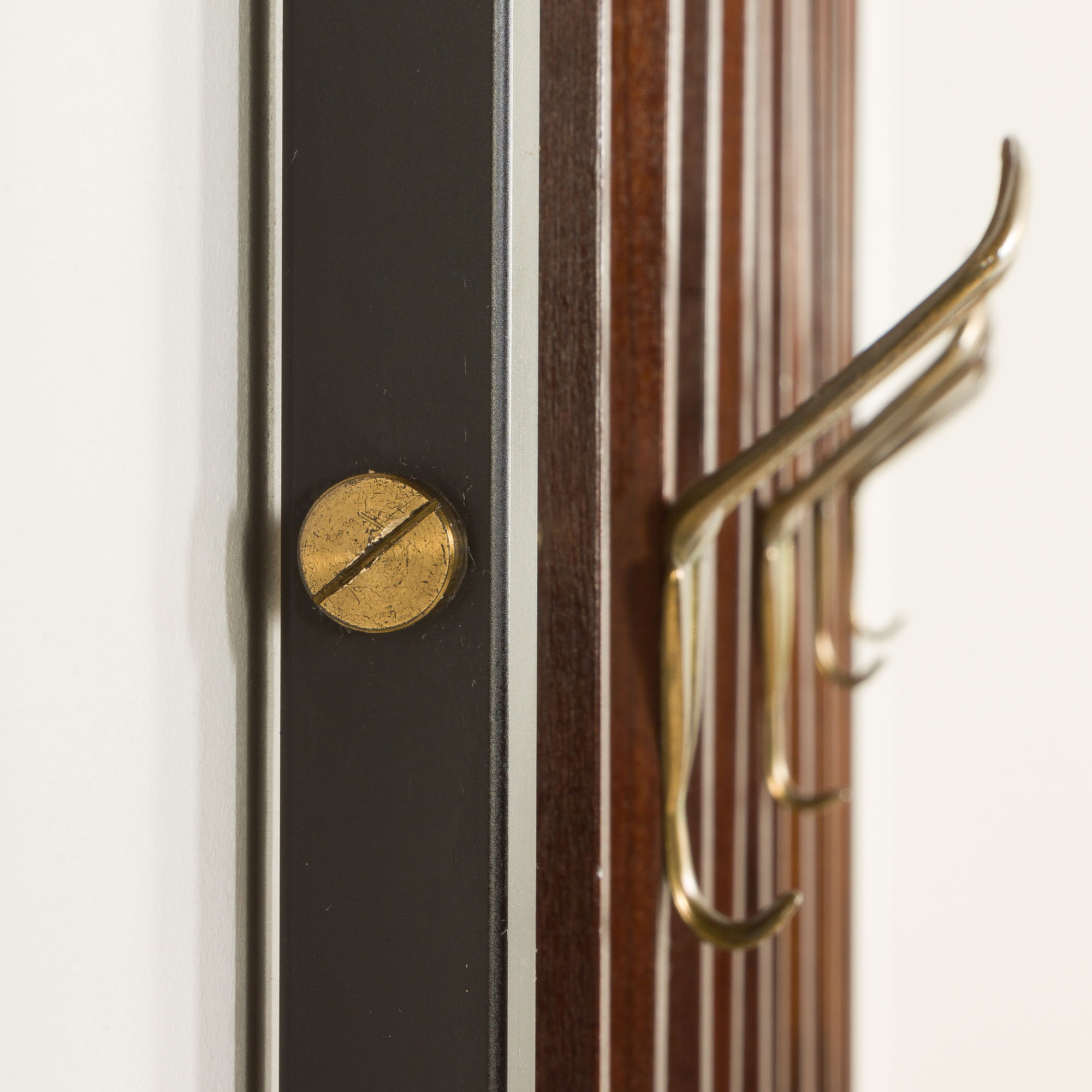 Its slim and vertical form makes it an excellent space-saving solution – ideal for entryways or hallways. The clean lines and refined material choices reflect mid-century modern furniture from the era.