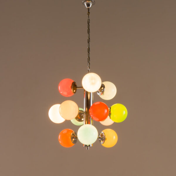 Mid-century modern is also about atmospheric light. Glass chandeliers from Italian glassworks, such as Vistosi, introduce a soft glow and sculptural form into the interior. These expressive yet subtle accents complement wooden furniture beautifully and highlight its texture.