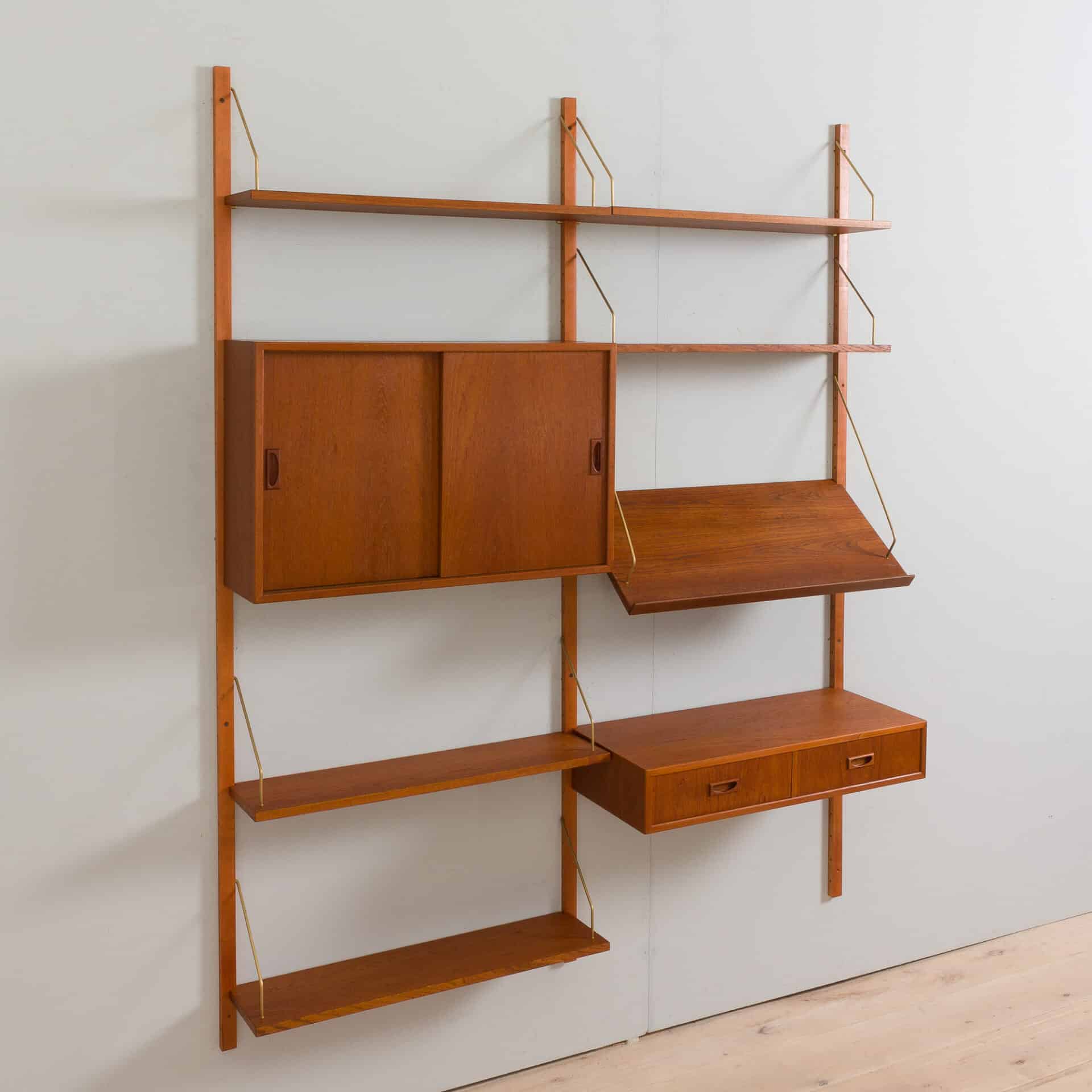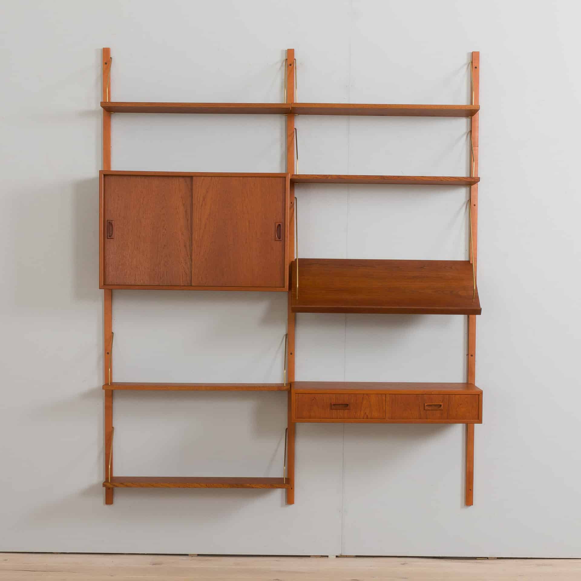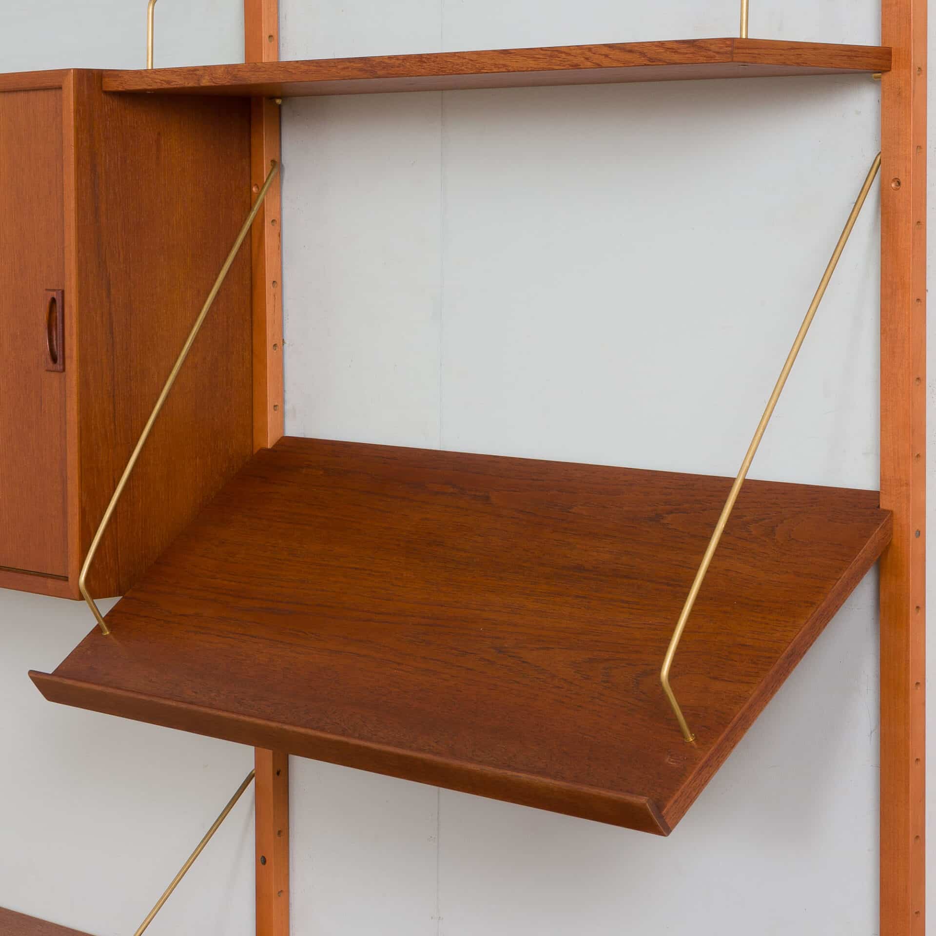Meuble mural à deux baies en teck avec armoire, style Poul Cadovius, Danemark, années 1960