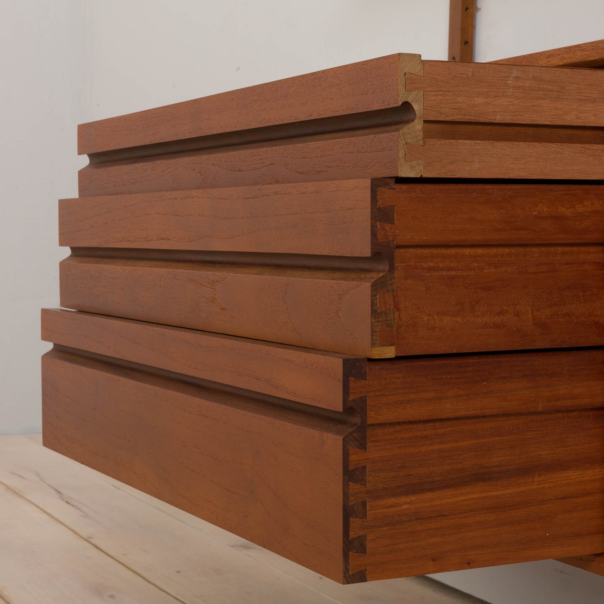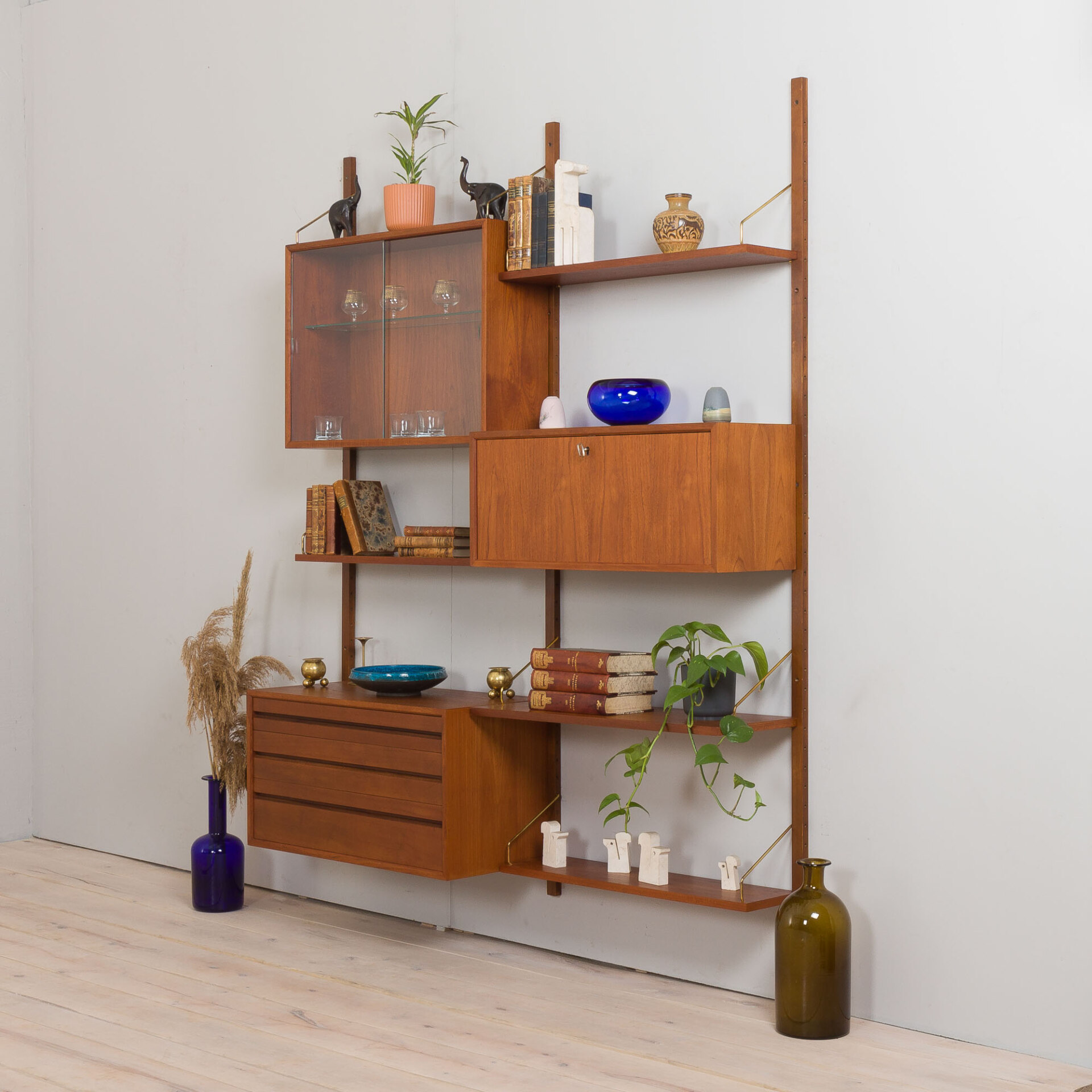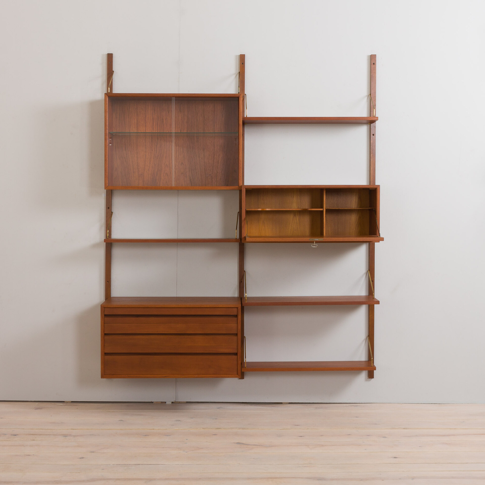 It is an entirely modular shelving system that can be arranged and set up upon one will. Excellent original condition with minor signs of wear.