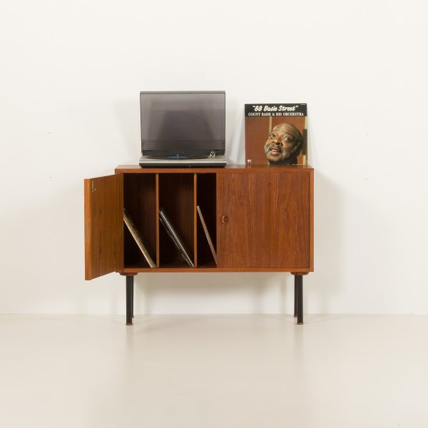 Buffet danois en teck du milieu du siècle avec porte à tambour, 1970