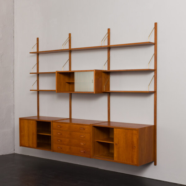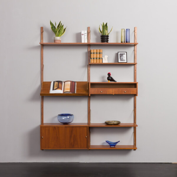 Danish mid-century teak wall unit by Preben Sorensen, PS system, Randers, Denmark 1960s